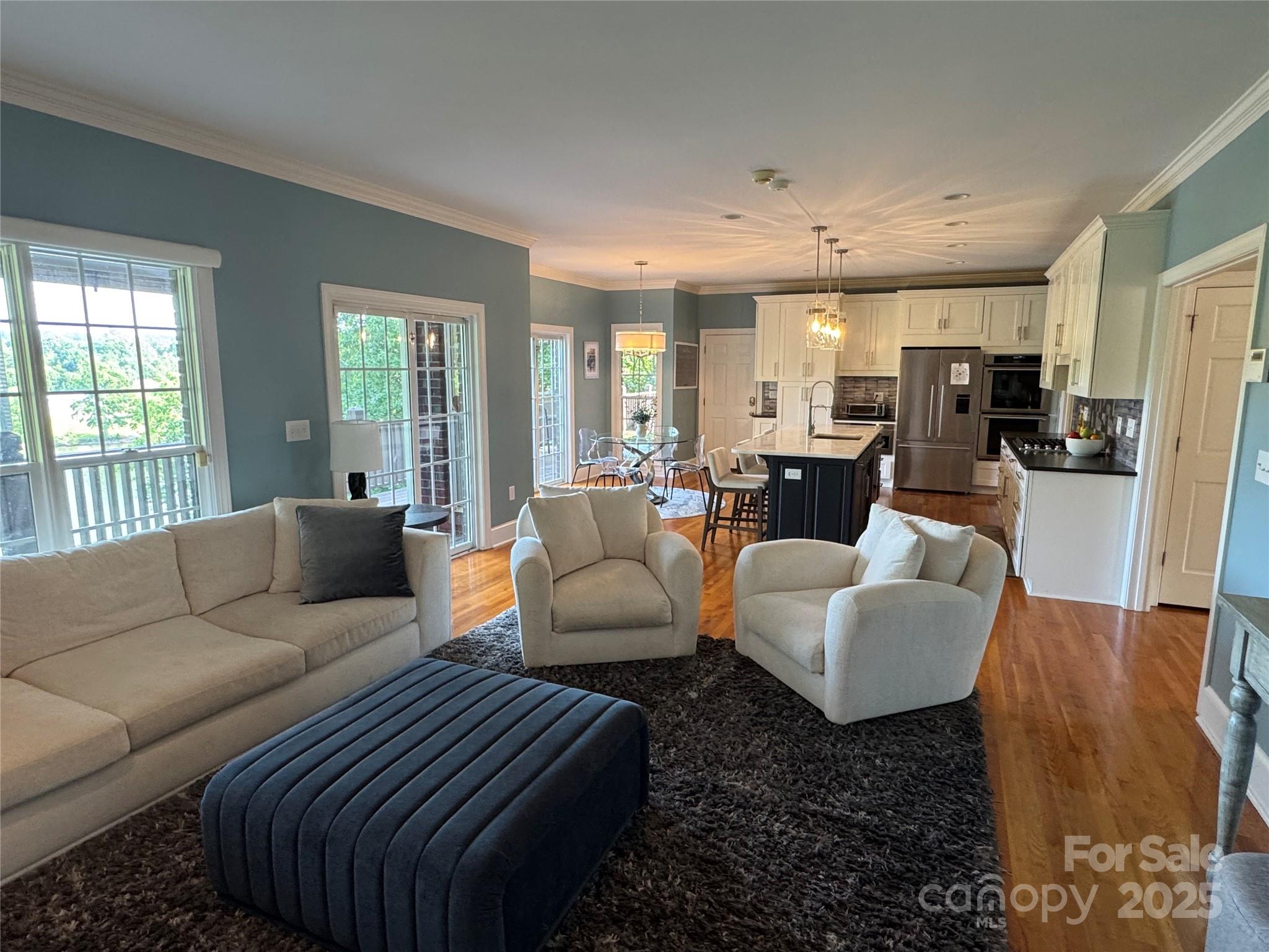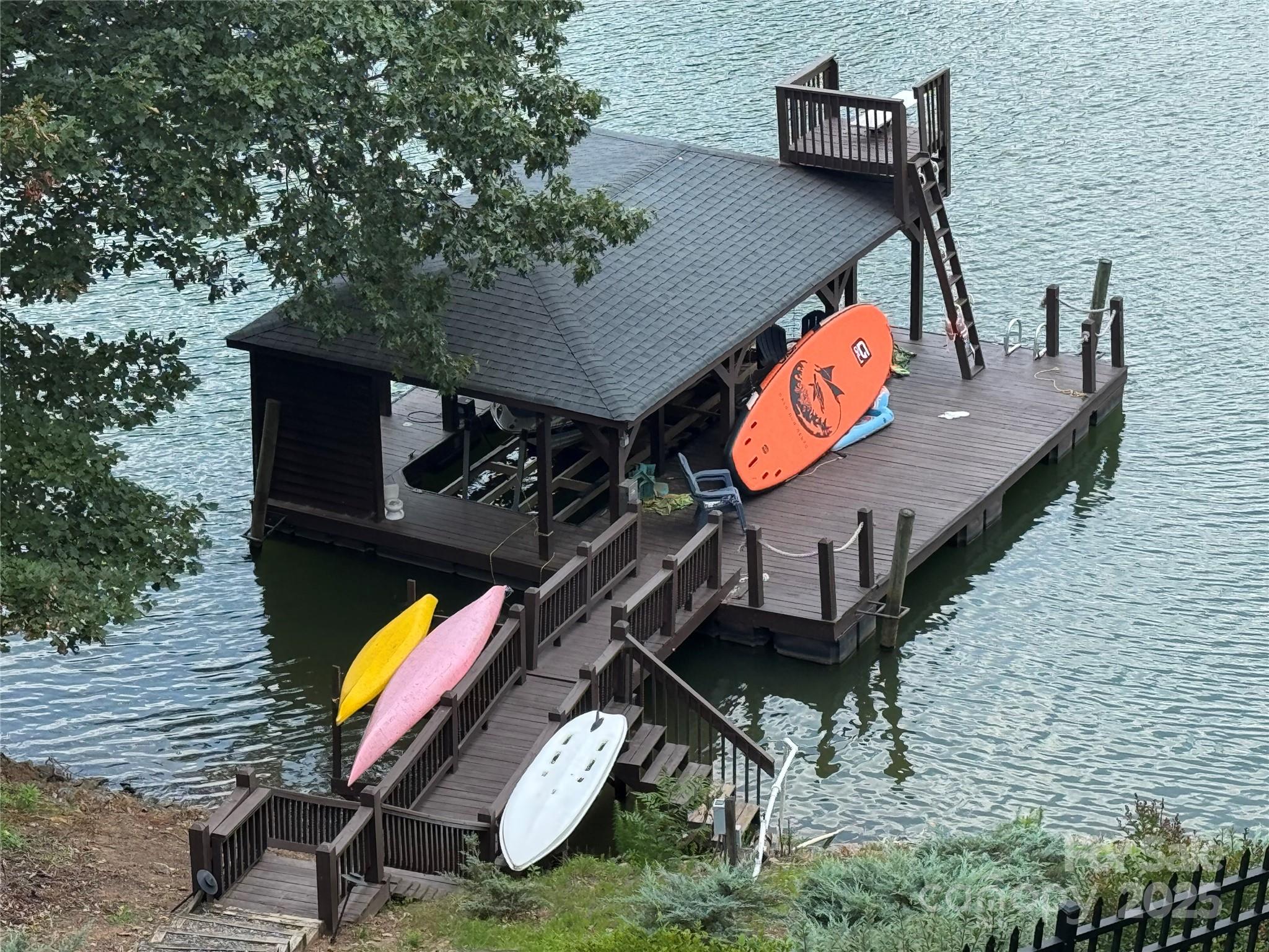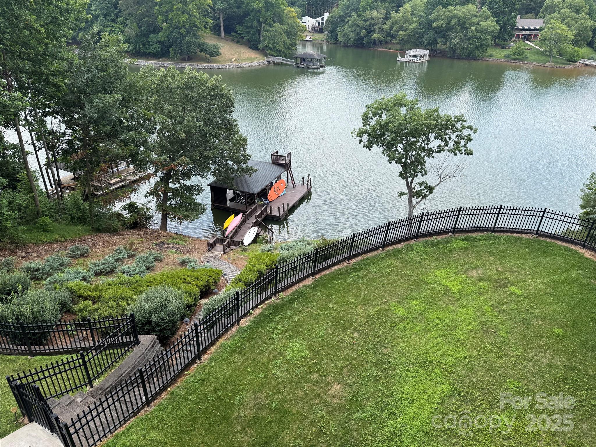 Live the Lake Life in Olde Mill Landing! Stunning year-round lake views! Don’t just buy a home--embrace the lake lifestyle! Beautiful lakefront home in convenient and desirable Olde Mill Landing Subdivision. Wake up every day to breathtaking lake views in this beautifully updated home! Or you can go to your private boat dock to swim, fish or head out on the lake. With many fresh updates inside and out--including a new roof and gutters (2025), fresh paint on the main level and primary bedroom and new light fixtures and chandeliers--this home is move-in ready. The two-story foyer opens to two flexible living and dining spaces, one with custom built-ins. Hardwood floors on the main level. Lovely renovated kitchen with soft-close cabinets, upgraded countertops, backsplash and top-of-the-line stainless appliances, featuring double wall ovens and gas cooktop. The kitchen flows into the breakfast room and a spacious great room with a gas fireplace, built-ins, and lake views from all. The upper level includes 4 bedrooms, 3 full bathrooms and a laundry room. One of the second floor bedrooms is the huge primary suite with fireplace, walk-in closet, luxury bath with double vanities, claw-foot tub, separate shower and lake views. The lower level features a large den with a fireplace, gym, bedroom, full bath, second laundry room and deck. The lower level is great for guests or a teen suite. Two expansive wrap-around decks span the back of the house, and a fenced backyard area overlooking the lake is great for entertaining or relaxing with family and friends while taking in the view. Oversized two car garage features storage cabinets and additional parking pad. Professionally landscaped including mature fruit trees to pick your own apples, peaches and cherries! A covered boat dock refurbished in 2024 makes lake days easy! There are so many features that make this home on the lake perfect for entertaining family and friends! Adjacent lot with its own dock is available for purchase.