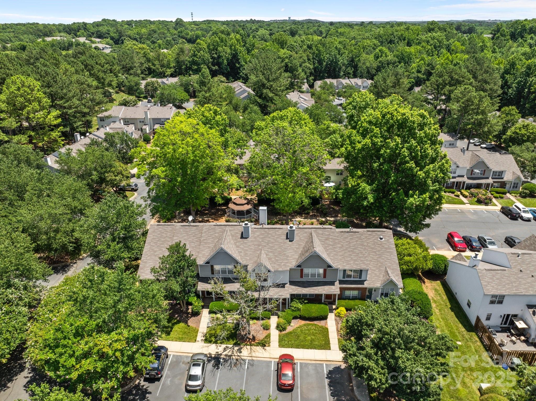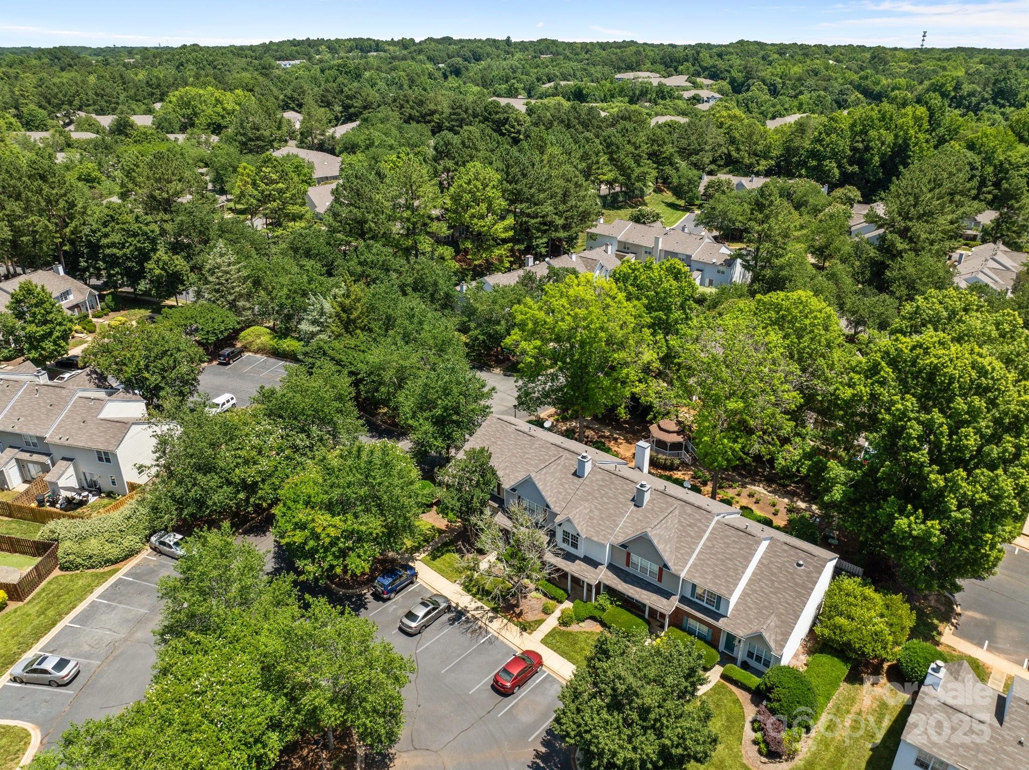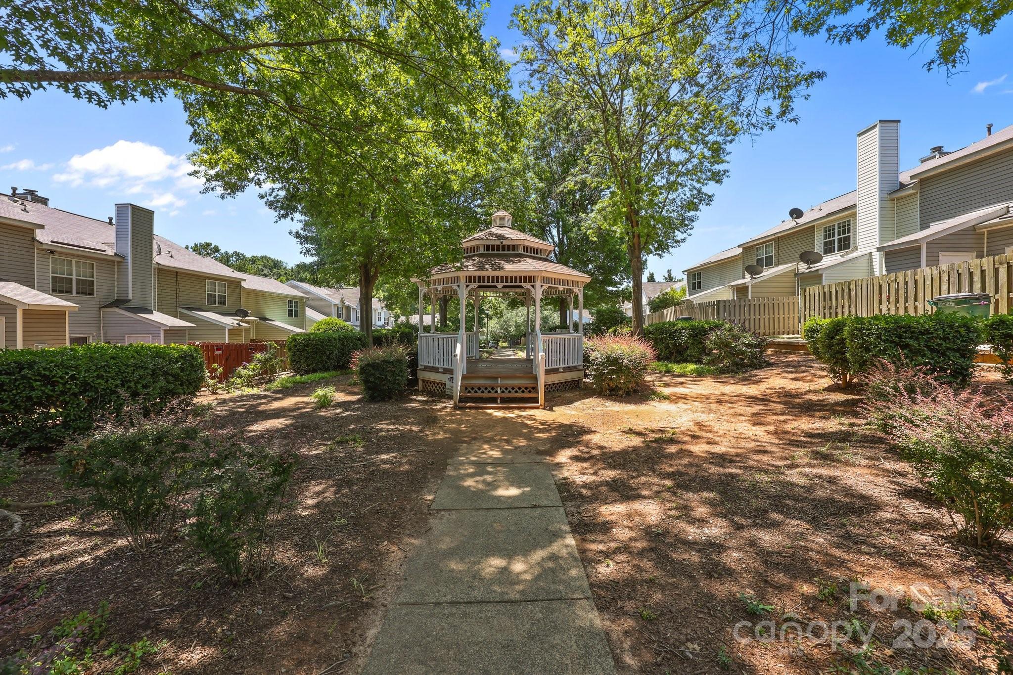 2-story townhome featuring neutral tones and natural light, the main level flows seamlessly from living to dining and kitchen—ideal for both relaxed living and entertaining. Upstairs, two bedrooms both include private full baths, offering privacy and comfort. Step outside to a private patio with an adjacent storage closet; the patio overlooks a landscaped courtyard complete with lush green space and a gazebo. Ideal for relaxed outdoor living or casual gatherings. Move-in ready or investment opportunity. Easy access to nearby shopping, dining, UNC Charlotte, I-77 and I-485 loop.