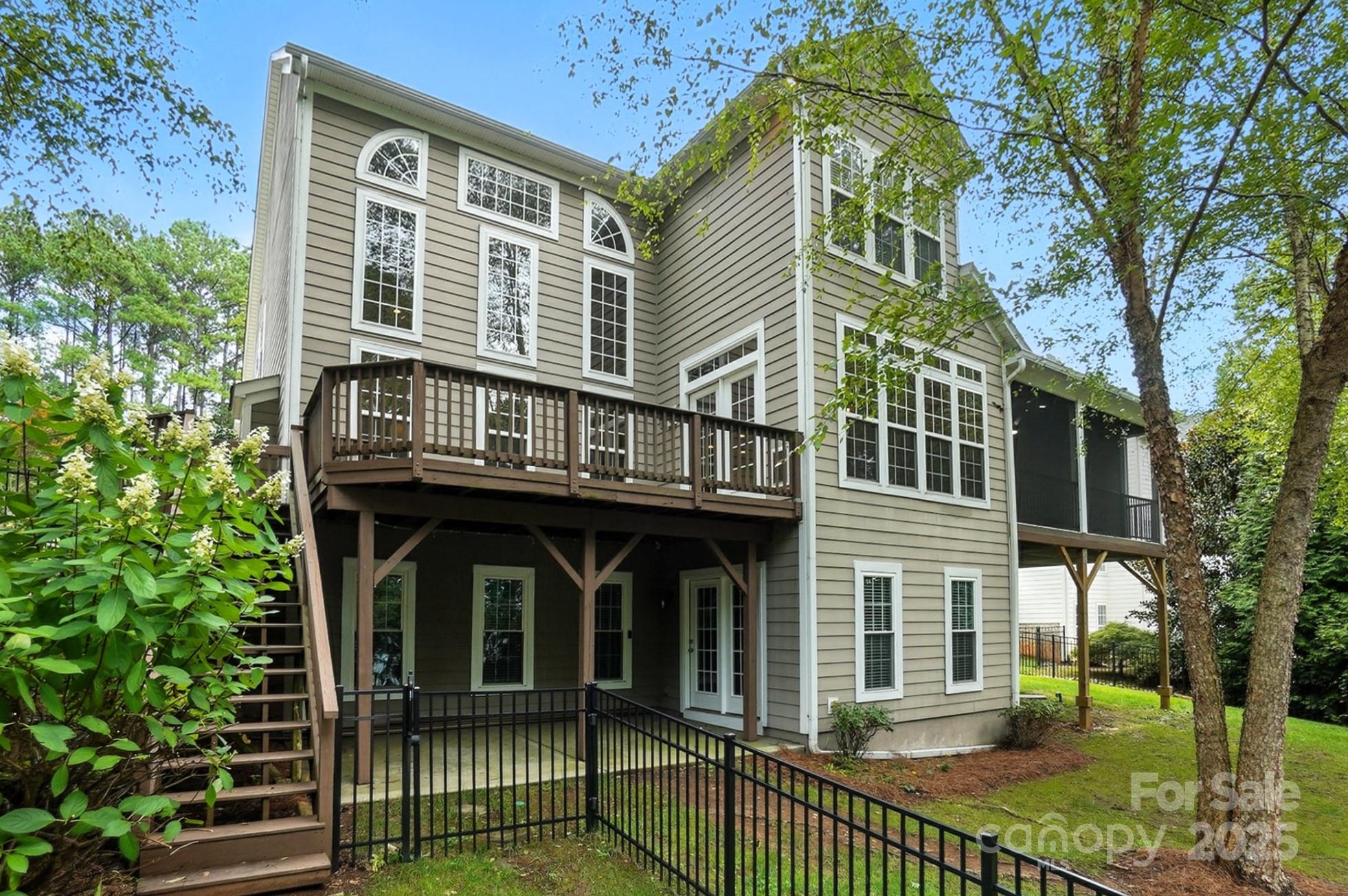This stunning WATERFRONT home features deep year-round water and breathtaking sunset views. The main floor boasts hardwood flooring, a spacious kitchen, a scullery with a second refrigerator and an ice maker, an island, and a gas cooktop. The living space extends outdoors with a screen porch and deck, perfect for relaxation and entertaining. A two-story great room includes a stacked stone fireplace, and a main-floor guest suite enhances the layout. The open floor plan welcomes natural light and features a casual dining area with gorgeous LAKE VIEWS. This residence has 6 bedrooms, 5 full bathrooms, a home office, and a finished basement for gatherings. Upstairs, the primary bedroom features a sitting area, two closets, and 3 additional ensuite bedrooms. The oversized walk-out basement offers a pool table, a guest suite, and a patio. Enjoy 100 feet of shoreline, a covered gazebo, walking path, and lake-fed irrigation at this exceptional property on Mountain Island Lake!