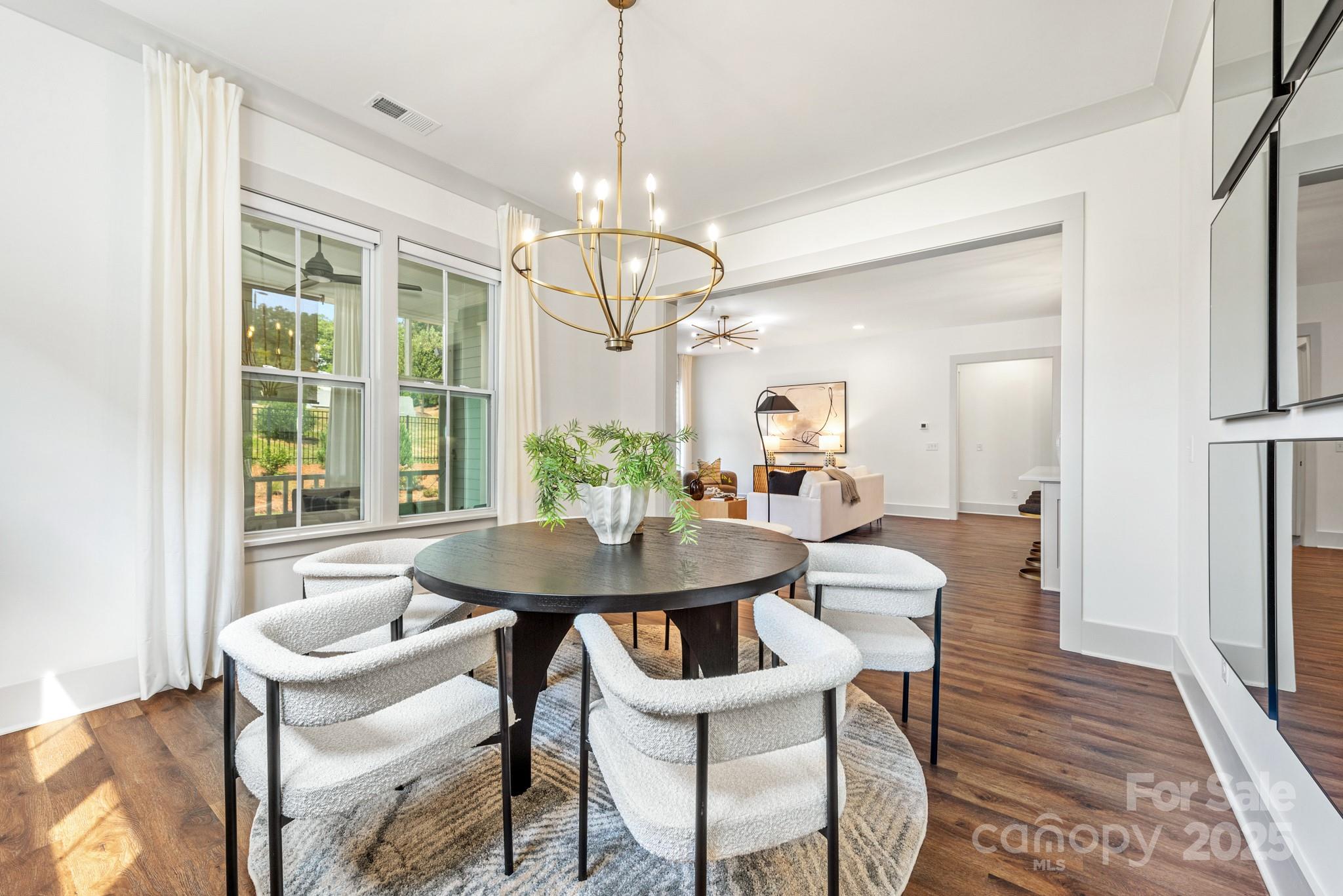 Experience chic, low-maintenance living in this beautifully appointed 1.5-story residence within the rarely available 55+ community of the Cottages at Marvin Gardens. Designed with an emphasis on style and convenience, this home offers an inviting open floorplan enhanced by upgraded lighting, designer finishes, and a fresh, contemporary feel. The main level features three spacious bedrooms and three full baths, providing comfort and flexibility for both residents and guests. Thoughtful upgrades include custom window treatments, professional landscaping with irrigation and landscape lighting on dusk to dawn sensors, a fenced yard for privacy, and refined interior selections that elevate everyday living. Upstairs, the versatile bedroom suite/recreation area offers additional space for hobbies, relaxation, or visiting family. Enjoy achieving all of your organizational goals courtesy of an oversized garage, multiple walk in closets, and a large walk in attic space. Perfectly positioned, this home is within walking distance to a grocery store, shops, and restaurants, while multiple shopping centers are just moments away. Here, an easy lifestyle and modern design come together seamlessly—without compromise on quality or sophistication. One resident of the home must be aged 55+. This does not necessarily have to be the purchaser. HOA dues include lawn maintenance.