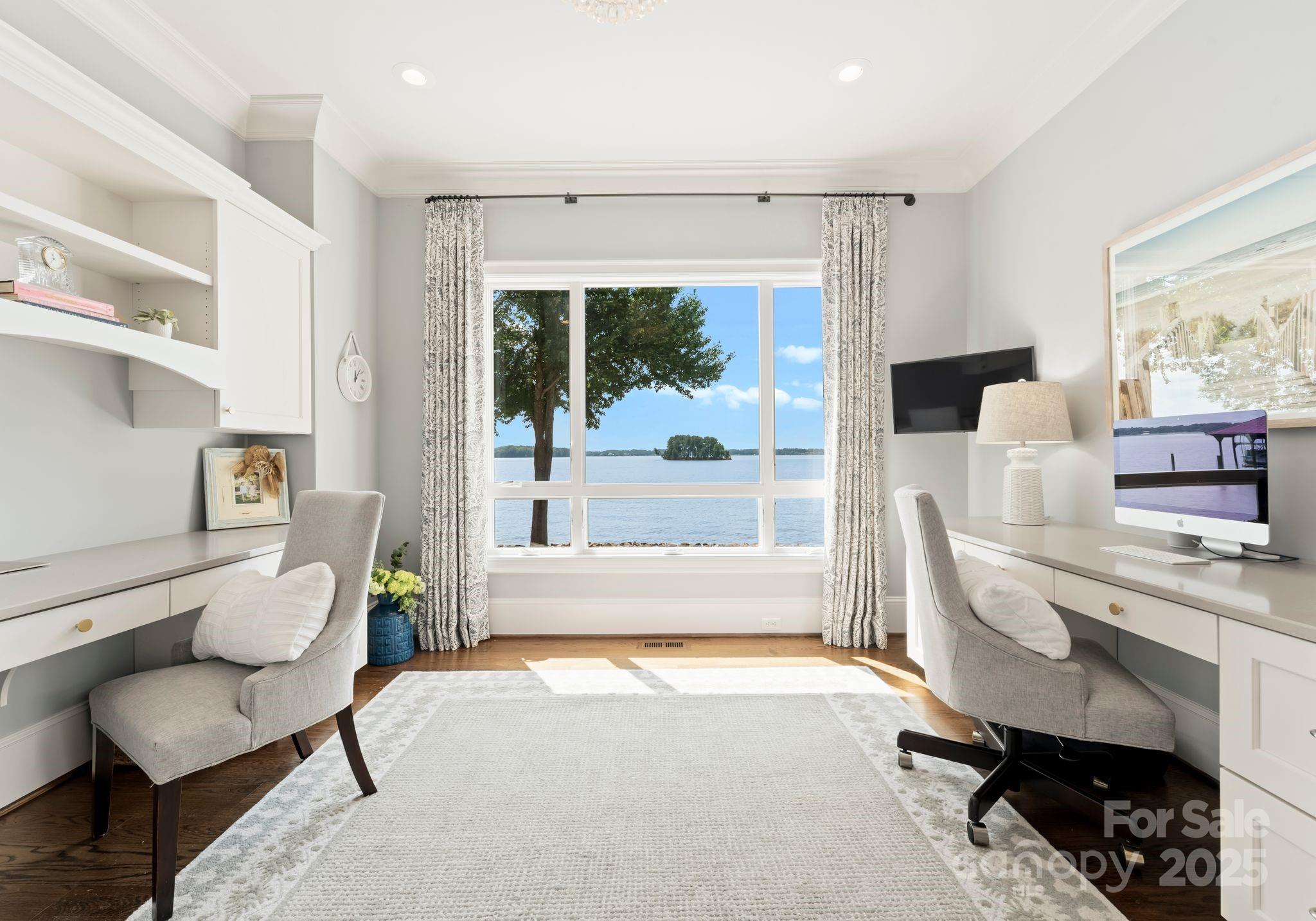 Presenting "Carolina On My Mind" – a breathtaking Nantucket-inspired estate on over 240 feet of pristine Lake Norman shoreline. Thoughtfully designed to capture the water, natural light, and outdoors from every room, this 6,555 sqft. masterpiece on the Brawley Peninsula offers no HOA and an unmatched lakefront lifestyle. This home features 4 bedrooms, 5.5 bath, two private offices, and spacious bonus, game, and exercise rooms—perfect for entertaining & gathering with family. The main level welcomes you with a stunning great room showcasing a custom fireplace & panoramic lake views, a gourmet chef’s kitchen, and a private owner’s retreat. Step outside to enjoy a newly built lakeside fireplace, expansive covered dock, outdoor grill, and a heated/chilled spa. Just 2.5 miles from Trump National Golf Club Charlotte, you’ll have access to world-class golf, tennis, swimming, fitness, & dining. Carolina On My Mind is more than a home—it’s an unparalleled lifestyle on the shores of Lake Norman!