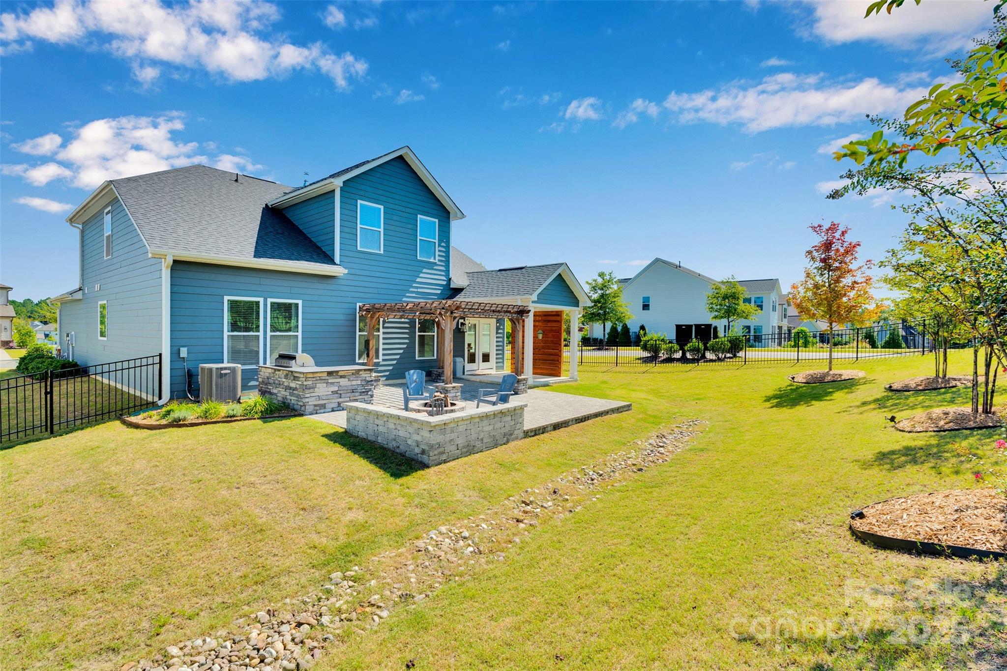 This beautifully upgraded home in sought-after Paddler’s Cove is a must-see! It offers 4 bedrooms, 2.5 baths, a private office with French doors, and a spacious bonus room that could be converted to a 5th bedroom. A welcoming 2-story foyer with board & batten sets the tone, leading to a renovated great room featuring shiplap over an electric fireplace, crown molding, and custom trim. The gorgeous kitchen boasts a large island, white cabinets, granite countertops, stainless steel appliances, and a generous walk-in pantry. The main-level primary suite includes a soaking tub, separate shower, dual vanity, and walk-in closet. Upstairs, three bedrooms and the bonus room provide plenty of space for everyone. Outdoor living shines with an extended patio featuring a pergola, fire pit, grilling station with natural gas, a privacy wall, and covered seating area within a fenced backyard on a desirable corner lot with extra parking. Paddler’s Cove offers two community pools and direct access to Crowders Creek, plus proximity to Lake Wylie, and highly rated schools, PLUS Field Day Park’s 32-acre athletic complex located in the community with a playground, baseball/softball fields, multi-purpose synthetic fields, and pickleball courts. This beautifully updated, turnkey home truly has it all—schedule your showing today before it’s gone!
