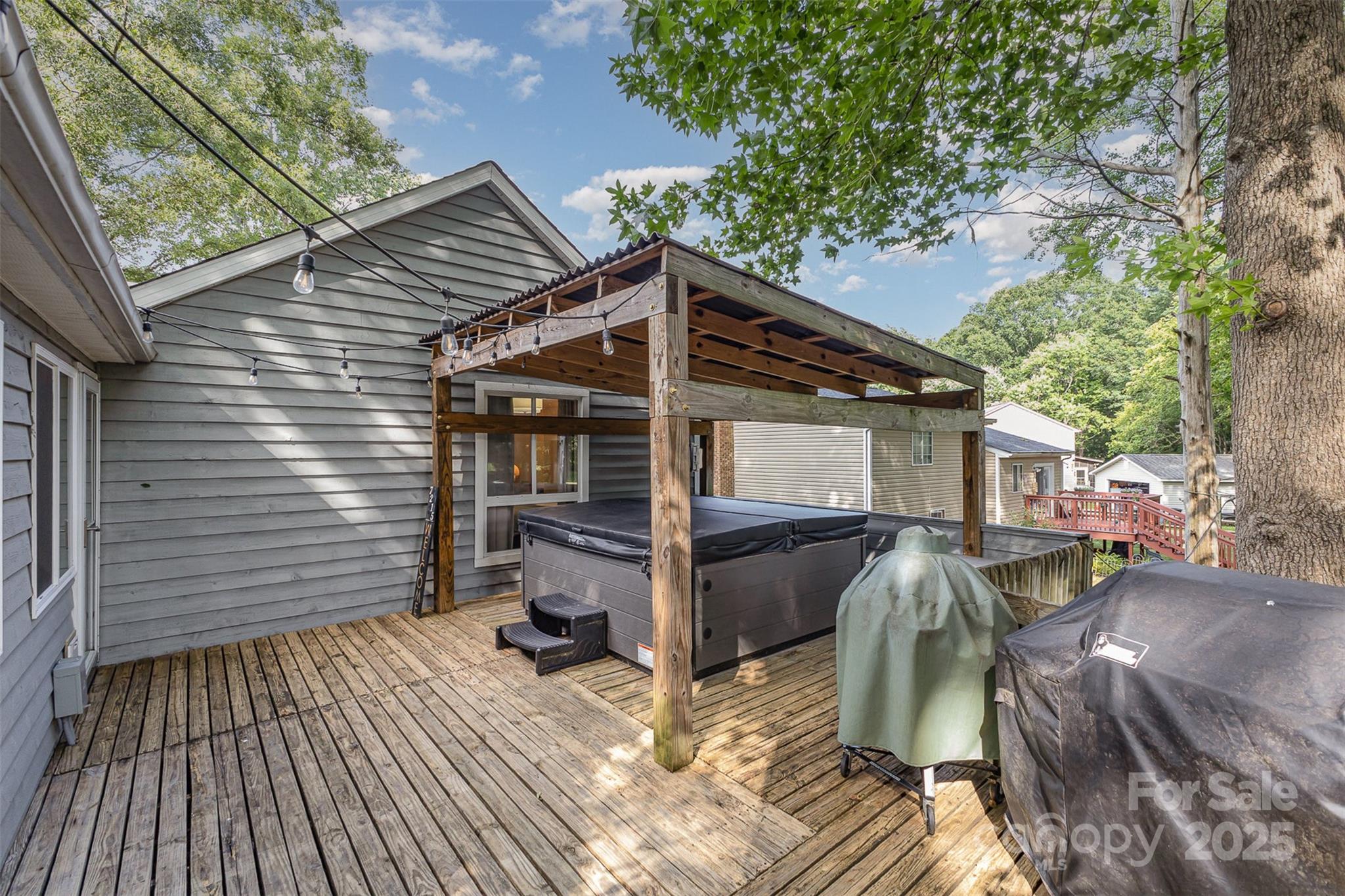 *Ask about 1.5% preferred lender credit (based on loan amount)* Private Retreat in a Prime Location! Tucked in a quiet cul-de-sac, this unique split-level home is made for entertaining and relaxing. With 4 bedrooms, 2.5 baths, and multiple living spaces—including a formal living room, a lower-level flex space with fireplace and half bath, and a spacious great room with vaulted ceiling—you’ll have room for everything. Step outside to a backyard oasis featuring a 8-person hot tub, fenced yard, and a storybook gated bridge to the detached garage and storage shed. Extras include gigabit fiber internet, CAT6 Ethernet, EV charging setup, 200-amp service in garage, main sewer line replaced in 2022 (10-year warranty), and both gas and wood-burning fireplaces. Enjoy the feel of a private retreat just minutes from Pineville, shopping, dining, and major highways. Don’t miss this one! *Upstairs family room was added by a previous owner without a permit; it is open to heated/cooled space but does not have a vent in it. Sellers have never had an issue with it.