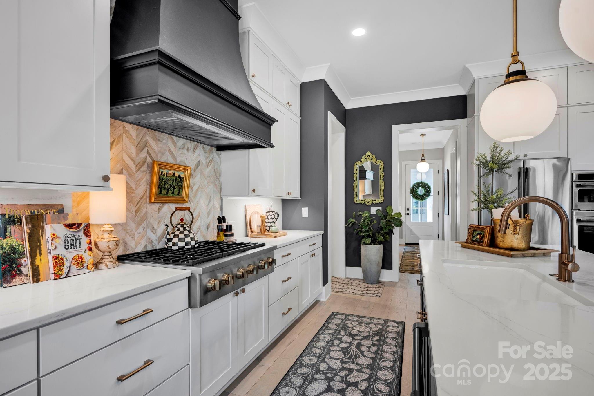 Inviting and luxurious custom home built in 2023 in the highly sought-after community of Narrow Passage. Thoughtfully designed with an open and functional layout, this home blends modern elegance with everyday comfort. The gourmet kitchen is a true centerpiece, featuring an oversized island, plentiful cabinetry, walk-in pantry, and a convenient dry bar—perfect for entertaining. Designer finishes throughout create a polished, timeless feel. The main-level primary suite offers a private retreat with spa-inspired bath and well appointed closet space. Upstairs, you’ll find three spacious bedrooms, two full bathrooms, and a large loft ideal for a media room or playroom. Enjoy seamless indoor-outdoor living with a screened porch overlooking the private backyard. A detached, two-car garage enhances both convenience and curb appeal. Neighborhood Greenway access provides excellent walkability and connection to Davidson’s scenic trails. Located just minutes from charming downtown Davidson, Lake Norman, shops, and dining, this home offers the perfect balance of luxury, community, and location.