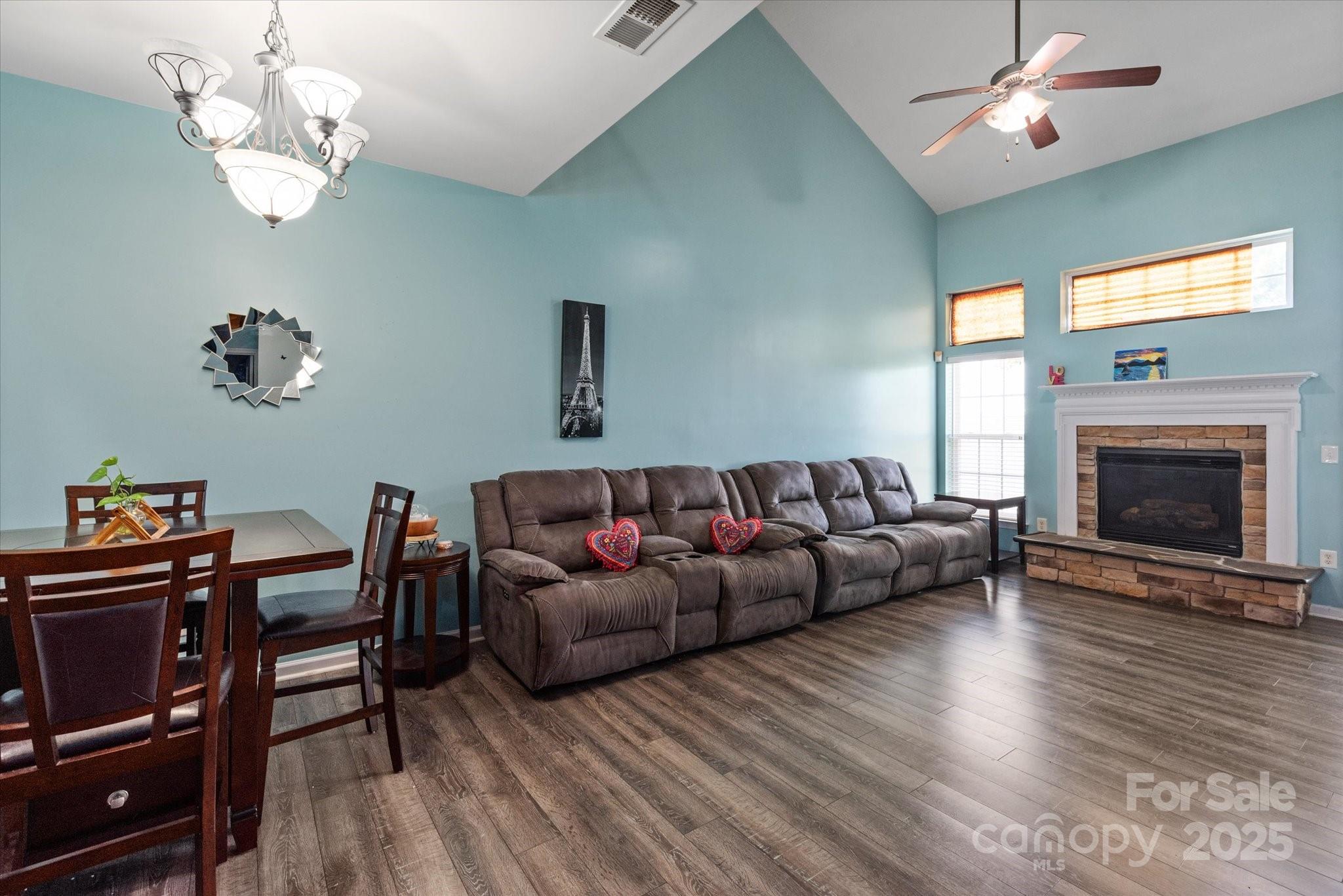 This spacious end-unit townhome features 3 large bedrooms—all with walk-in closets—a loft, and a walk-in attic. The primary suite is on the main floor with a large bath including a separate tub and shower. Enjoy upscale touches like 42" cherry cabinets, Corian countertops, upgraded flooring with beautiful hardwoods throughout the main level, a tankless water heater, front-yard irrigation, and a beautiful stone fireplace with a raised hearth. Located in top-rated school zones—just 0.2 miles from Harris Road Middle School, 0.3 miles from Odell Primary, 1.5 miles from Odell Elementary, and 3.1 miles from Cox Mill High School. Enjoy being only minutes from Concord Mills and convenient access to I-85, I-485, and I-77, making your daily commute a breeze. HOA includes exterior maintenance, lawn care, and water. Moss Creek amenities include a pool, clubhouse, playground, and basketball court.