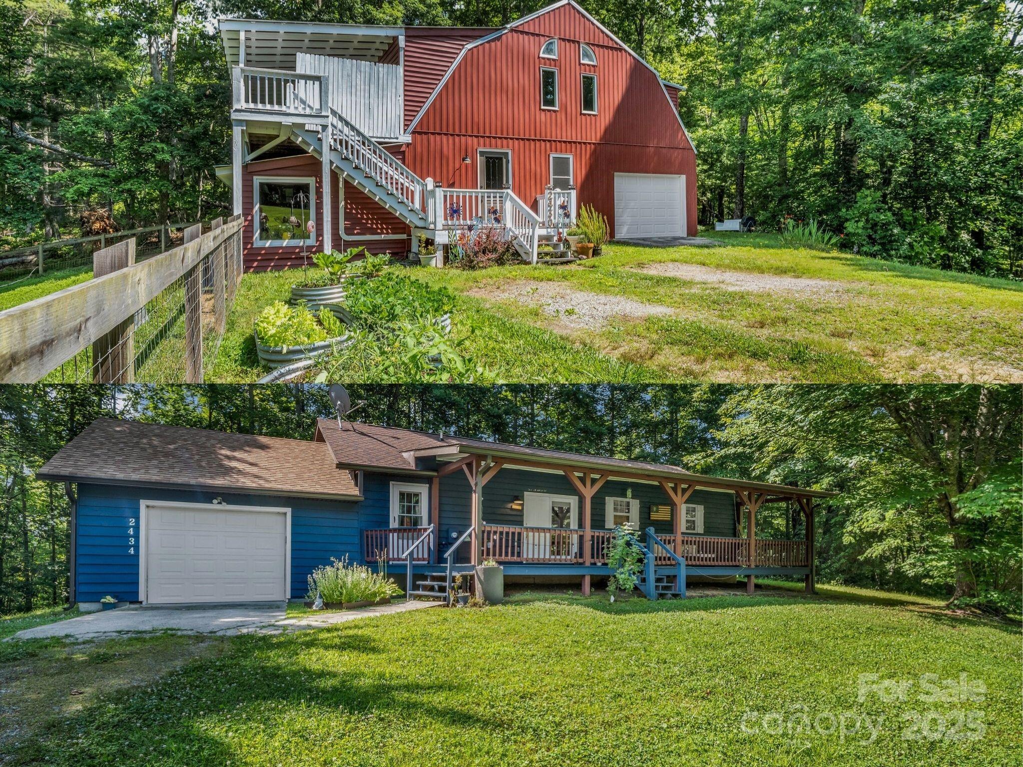 Take advantage of lower interest rates and a lower price! Two distinct homes nestled on 4.5 acres of private, picturesque land minutes from Saluda. The first residence at 2430 is a three-level Barndominium offering two bedrooms, 2.5 bathrooms, two flex rooms, and 2,114 sq ft of living space. Enjoy a covered deck, an attached one-car garage, and all the essentials for a hobby farm lifestyle. The second home at 2434 is a one-level, 2-bedroom, 2-bathroom home with 1,053 sq ft of space, featuring a large covered front porch, a back deck, patio, fenced backyard, and an attached one-car garage. The property also features an RV with a hookup and protective shelter. A private well serves all three, and each has a septic system. Enjoy privacy and serenity in a stunning natural setting without sacrificing proximity to restaurants, shops, and amenities in Saluda. Whether you’re looking for a rental investment or multi-generational living, this exceptional offering provides space, versatility, and the perfect mountain lifestyle you’ve been dreaming of!