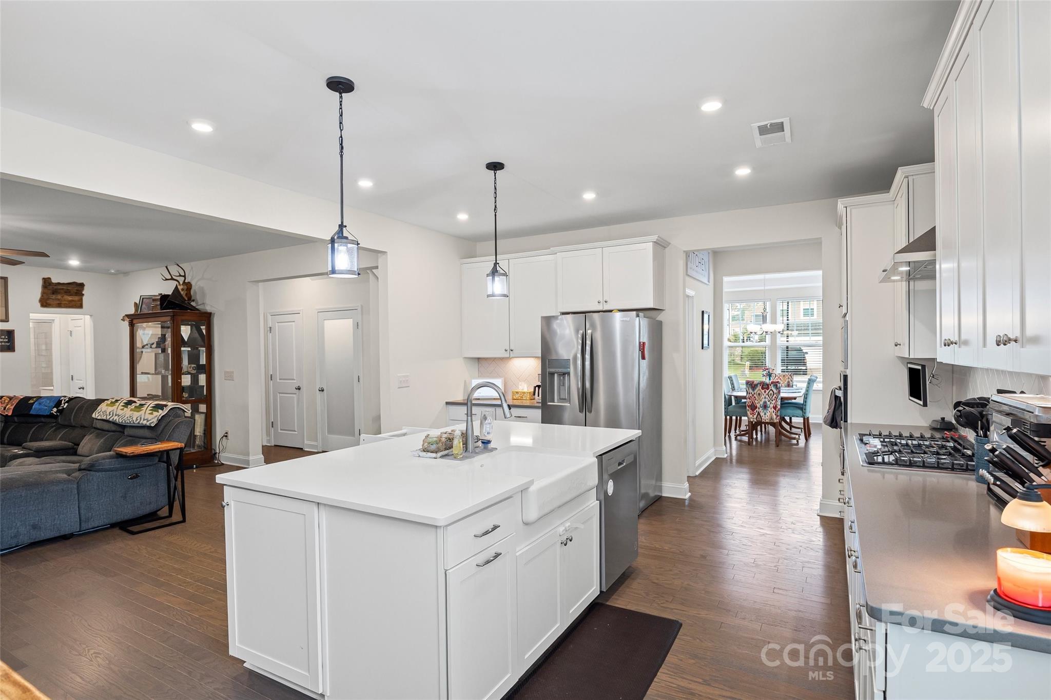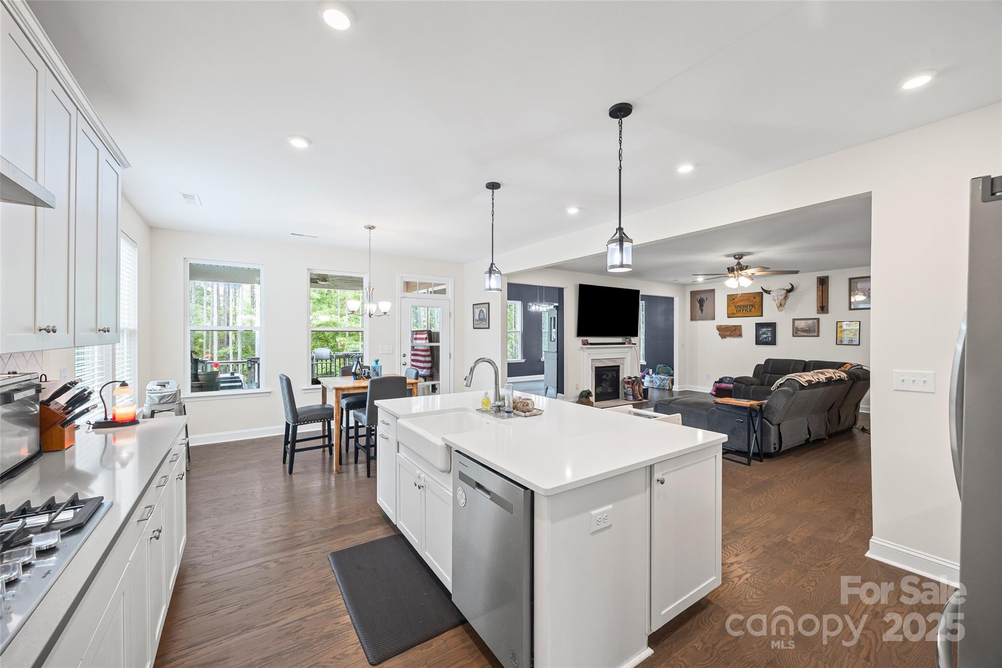THIS HOME HAS IT ALL! Looking for multi-generational living? Look no further than this better than new home featuring 6 bedrooms, 5 baths, fully finished basement/in-law suite with 5446 sf. Main level open floor plan offers formal DR, office, family room w/FP and sunroom. Chef's kitchen features SS appliance, gas cooktop, quartz countertops, butler pantry and breakfast area. Guest bedroom on the main w/bath. Primary suite upstairs w/trey ceiling, his/her closets, spa like bath w/double sinks, soaking tub, separate shower. The loft serves as a common space for the other bedrooms on upper level. Wait until you see the basement! Endless possibilities including a separate living area for parents, or rental w/a private entrance. Beautiful full kitchen, dining area, family room, bedroom w/full bath, walk-in closets, laundry room, plus additional storage space. Step outside to enjoy the tree lined backyard, stamped concrete patio w/fireplace and hot tub. Don't forget n'hood amenities! ASSUMABLE 5.375% VA RATE!!!