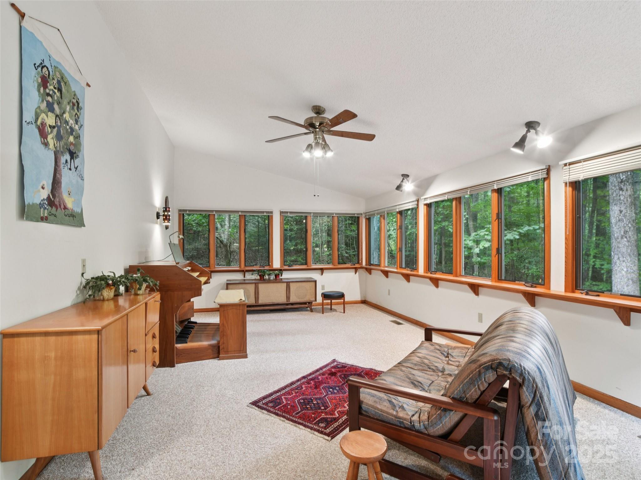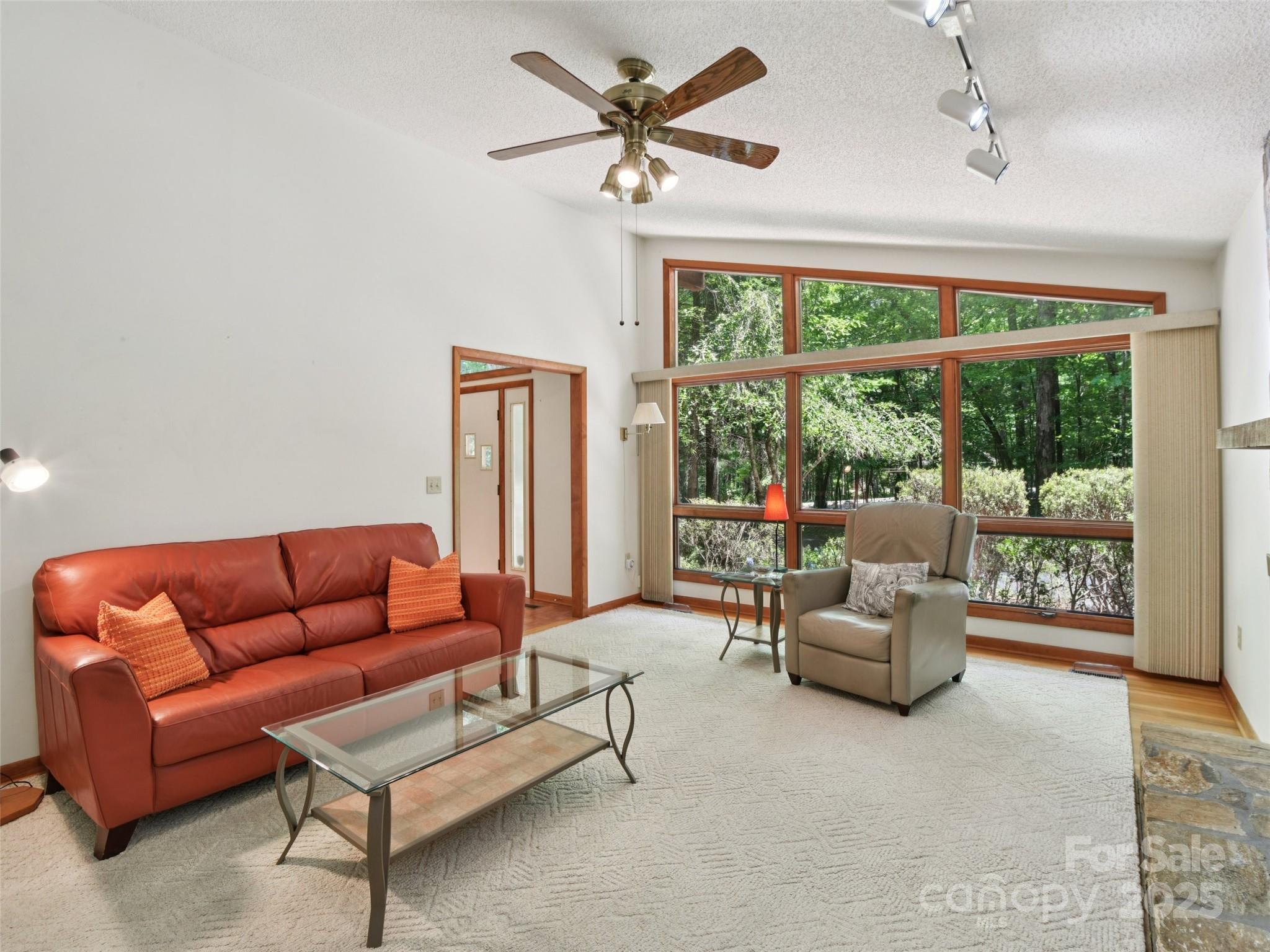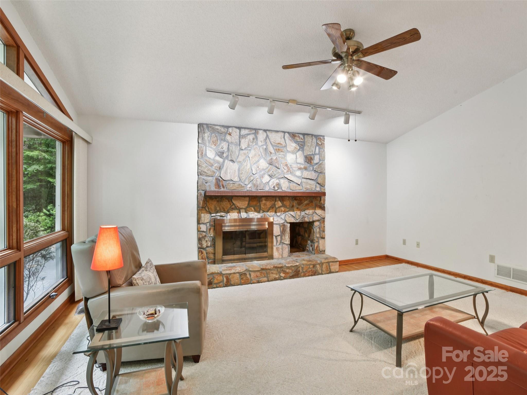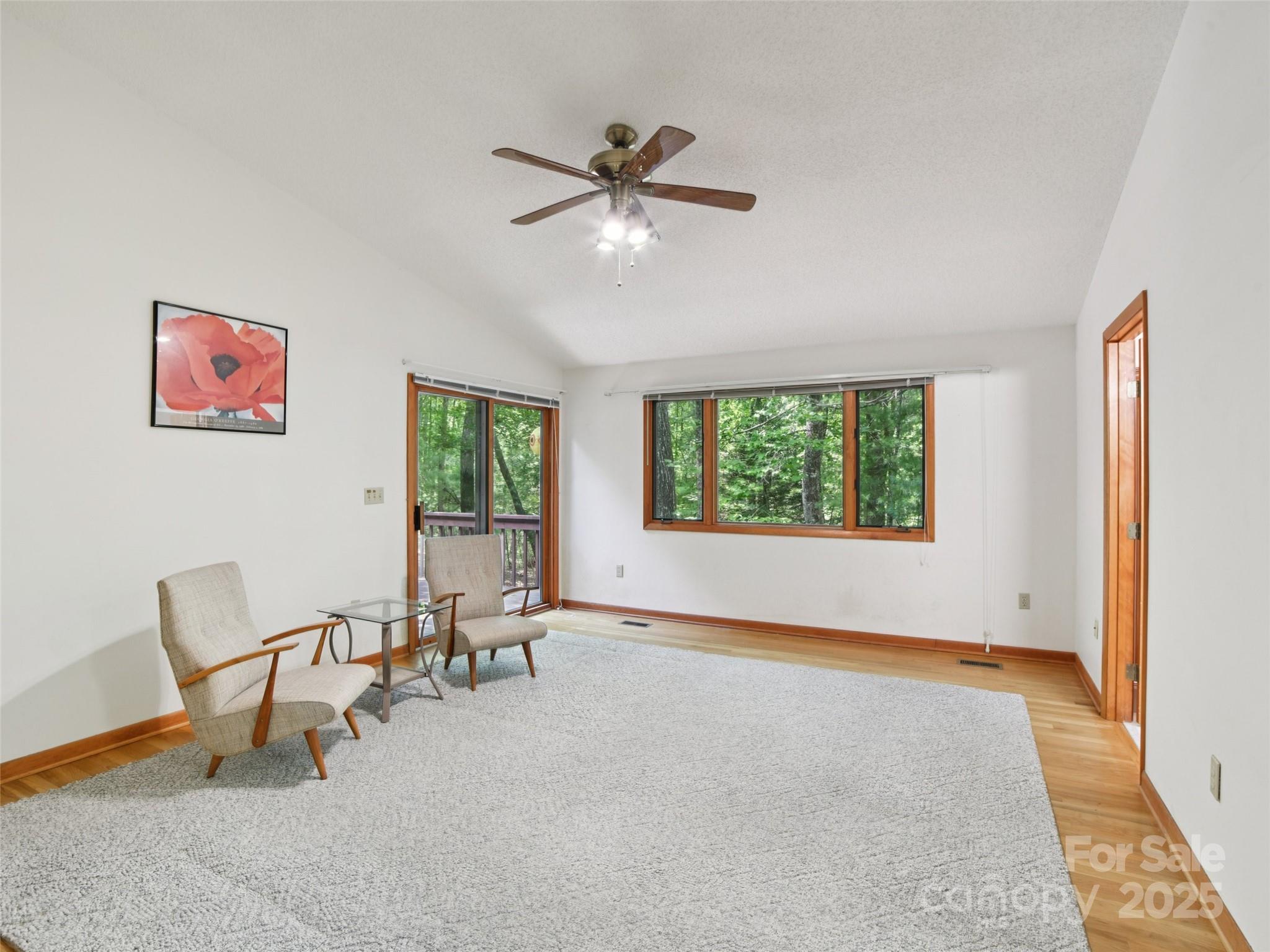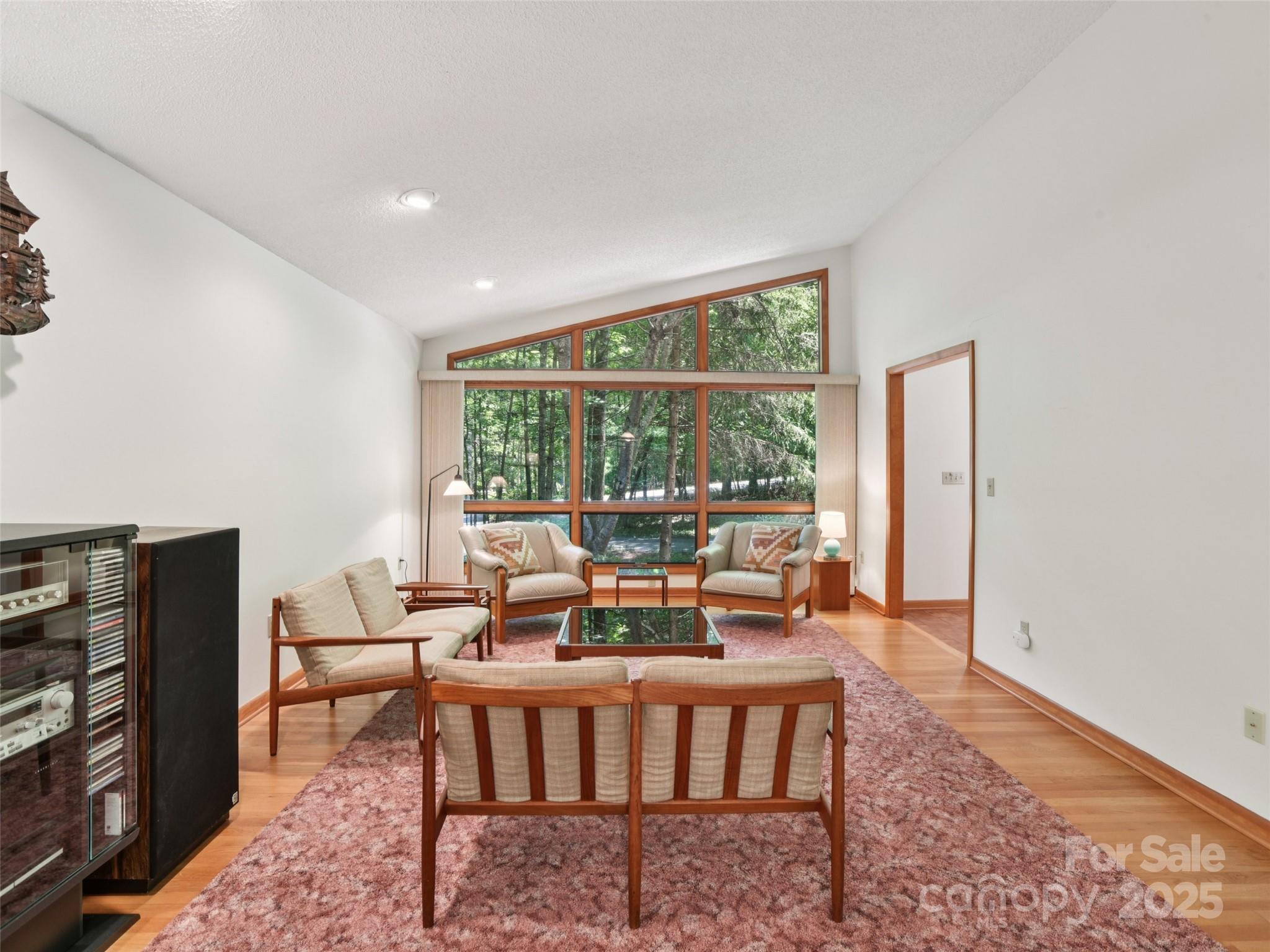 One level living at its finest in the heart of Historic Flat Rock! With a mid-century vibe, vaulted ceilings and numerous floor to ceiling windows, this home is nestled on a spacious, natural lot in the sought-after Claremont neighborhood. With 3 bedrooms, 2.5 baths, a wood-burning fireplace in the cozy family room and with hardwood floors in the main living areas and all the bedrooms, this home offers both character and comfort. Enjoy the expansive living and dining rooms, a large eat-in kitchen, and an absolutely fabulous, oversized sunroom that brings the outdoors in. Step outside to a generous deck perfect for relaxing or entertaining. A poured concrete basement is ready for storage, a work shop or finishing off for extra living space - already plumbed for an extra bath and a 4 bedroom septic system. A whole house generator ensures comfort and peace of mind. Enjoy low-maintenance living surrounded by natural beauty!