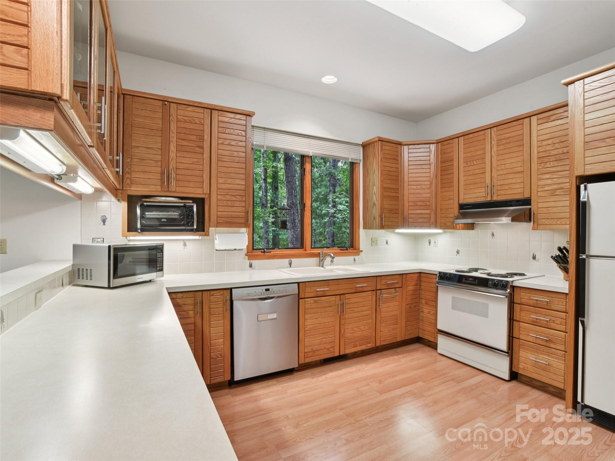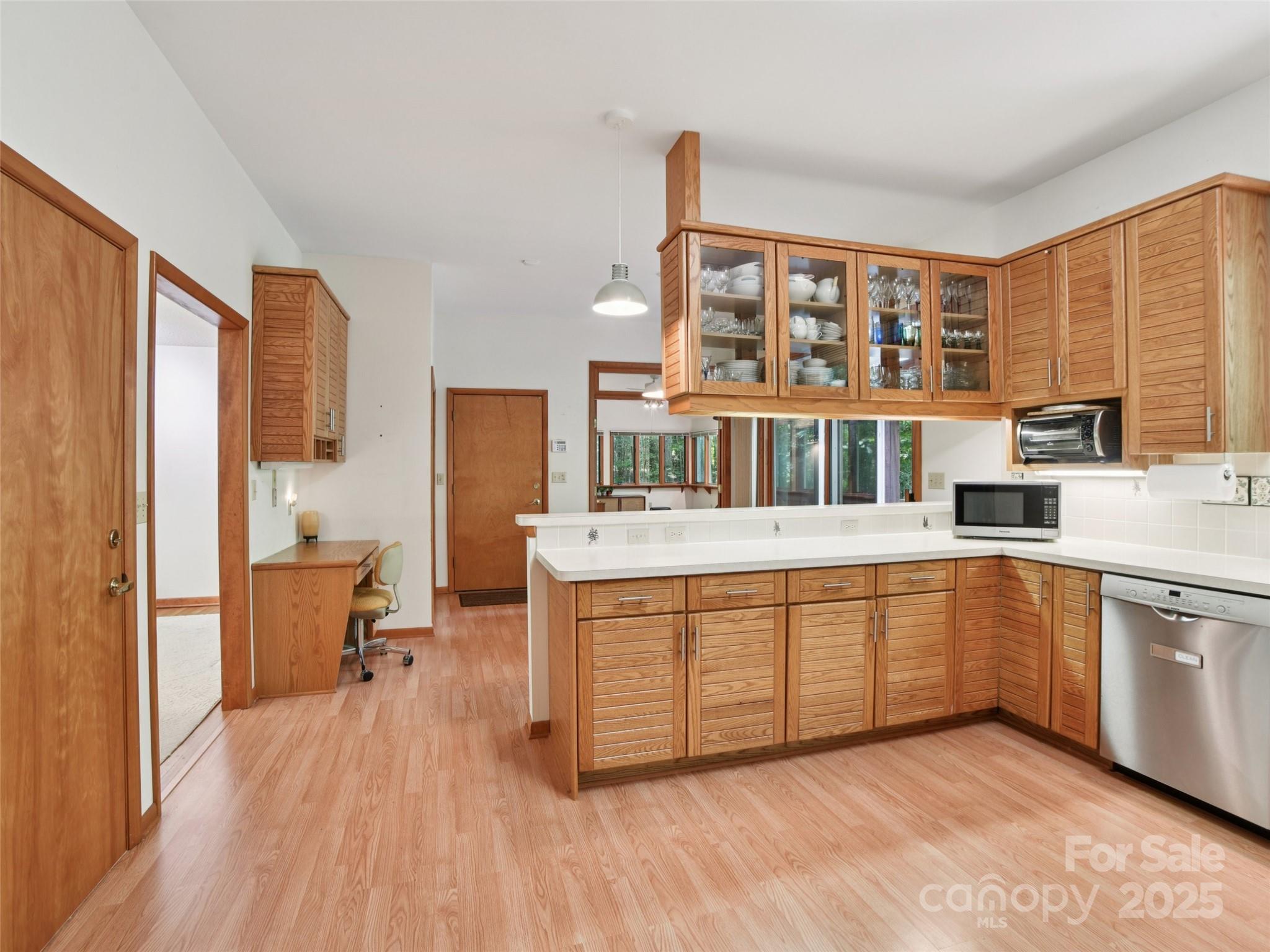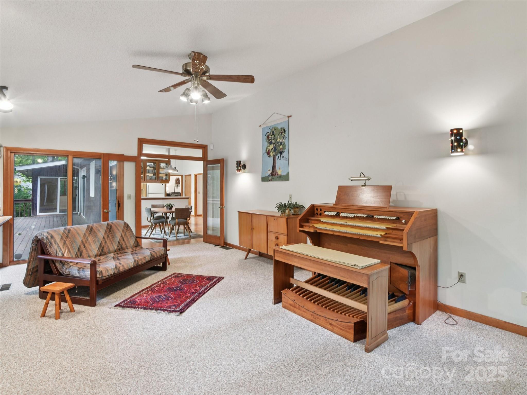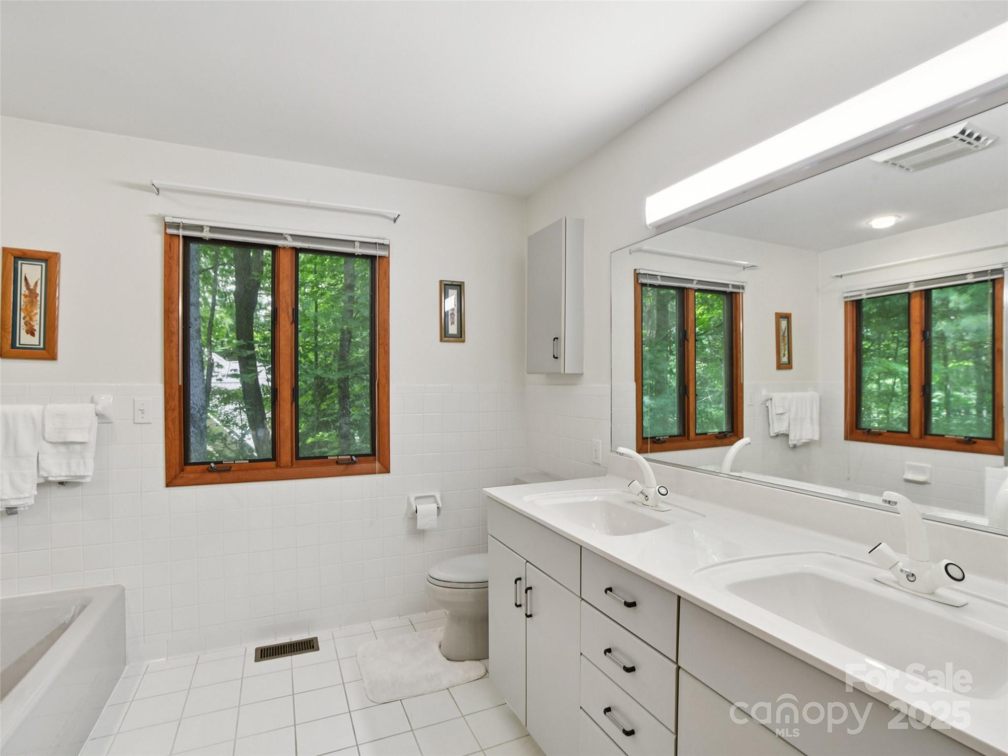 One level living at its finest in the heart of Historic Flat Rock! With a mid-century vibe, vaulted ceilings and numerous floor to ceiling windows, this home is nestled on a spacious, natural lot in the sought-after Claremont neighborhood. With 3 bedrooms, 2.5 baths, a wood-burning fireplace in the cozy family room and with hardwood floors in the main living areas and all the bedrooms, this home offers both character and comfort. Enjoy the expansive living and dining rooms, a large eat-in kitchen, and an absolutely fabulous, oversized sunroom that brings the outdoors in. Step outside to a generous deck perfect for relaxing or entertaining. A poured concrete basement is ready for storage, a work shop or finishing off for extra living space - already plumbed for an extra bath and a 4 bedroom septic system. A whole house generator ensures comfort and peace of mind. Enjoy low-maintenance living surrounded by natural beauty!