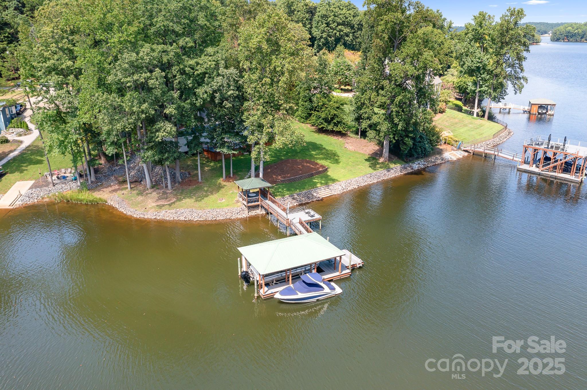 Welcome to your dream lakeside retreat! Nestled in a highly desirable location of Brawley Peninsula, this .76-acre lot with nearly 225 feet of shoreline is an exceptional waterfront property and offers the perfect blend of natural beauty, privacy, and recreational opportunity — all with no HOA restrictions. The property features a well-maintained 2021 single-wide 3BD/2BA manufactured home, ideal for weekend getaways, full-time living, or future building plans. Step out onto the expansive deck and take in the serene lake views — an entertainer’s dream and the perfect place to unwind. Even has an irrigation system and a 10X12 utility shed for additional storage. The shoreline is secured with a meticulously installed riprap base, protecting your investment and preserving the natural landscape. At the water's edge, you'll find everything you need for lakeside living: • A covered floating dock. • A pier with deep water access (approx. 15 feet at the end). • Boat lift. • Stairs leading directly into the lake. This is a rare opportunity to own a turnkey waterfront property in a prime location. Whether you're boating, swimming, fishing, or simply relaxing on the deck, this lakeside haven is ready to be enjoyed from day one. Don’t miss your chance to own a slice of lakefront paradise!
