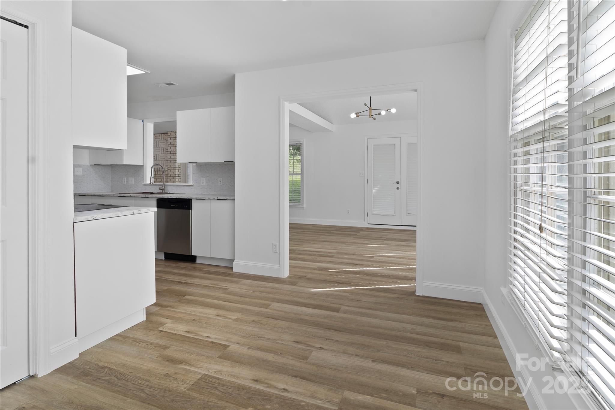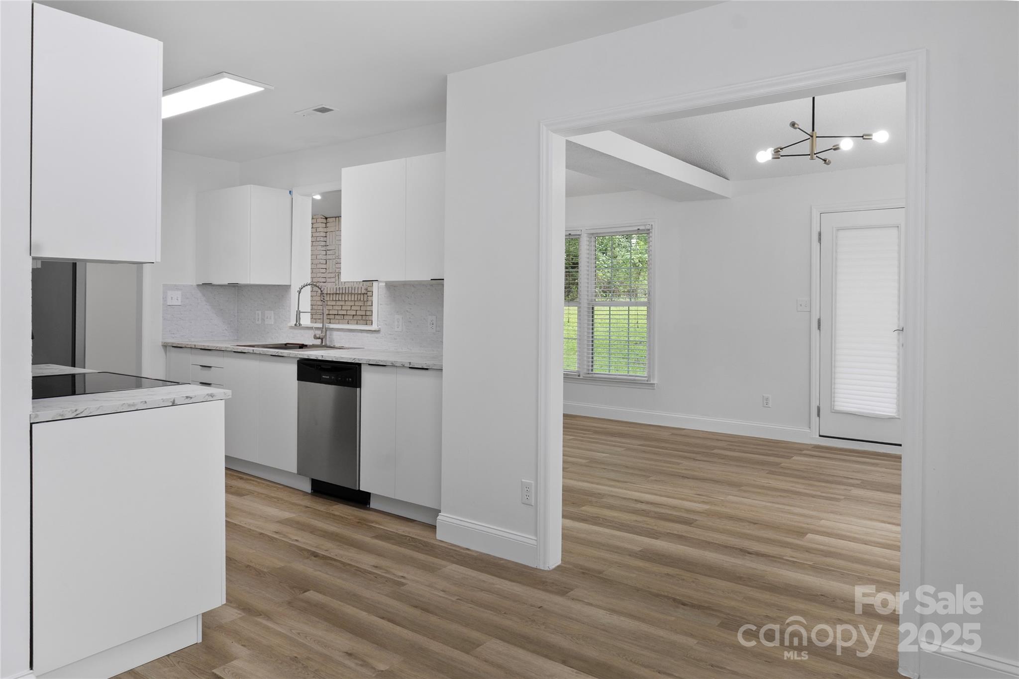 Fully Renovated & Move-In Ready! This home features a brand-new roof, modern kitchen, updated bathrooms, and new flooring throughout—a bright open layout with stylish lighting, a white brick fireplace, and large windows for natural light. The kitchen includes stainless steel appliances and a farmhouse sink. Private backyard perfect for entertaining. Everything is new—just move in and enjoy! Seller is related to the buyer