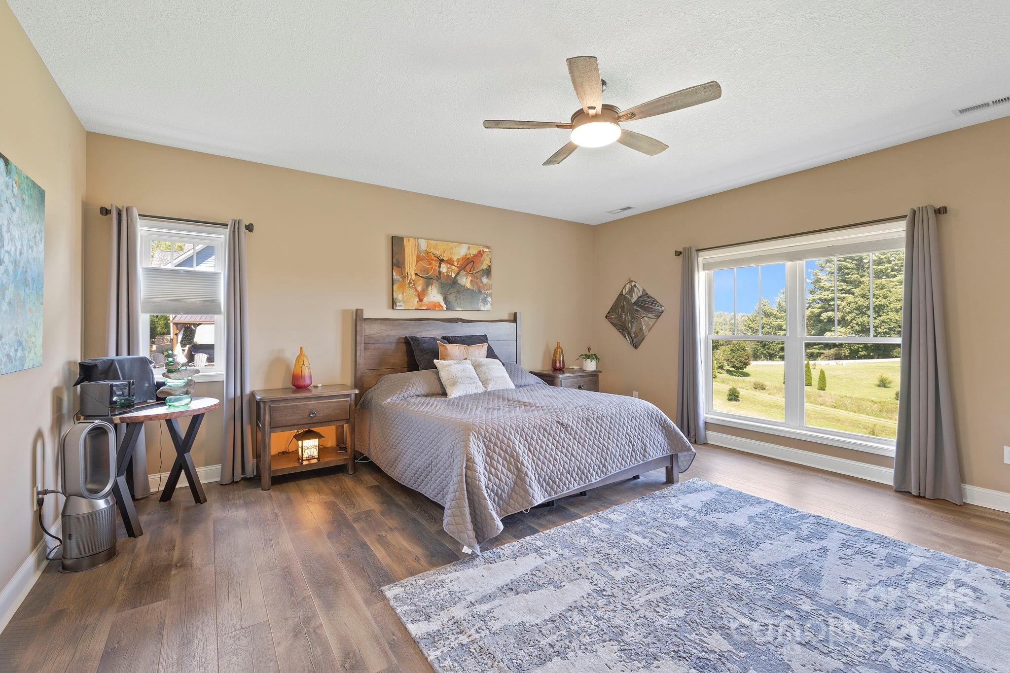 Step into refined elegance with this stunning luxury home, where state-of-the art finishes and upgrades create an elevated living experience. Expansive glass doors fill the great room with natural light, showcasing a striking fireplace that serves as a warm focal point. The chef-inspired kitchen is a dream, boasting gleaming granite countertops and a designer accent backsplash. Retreat to the serene primary suite, where a spa-like-en-suite promises to soothe and relax with its luxurious ameities and tranquil ambiance. This designer home is situated on over an acre, offering privacy, luxury and breathtaking views of the Blue Ridge Mtns. The home features covered porches, fully fenced yard that encloses a custom Golden Bear putting green. Every element of this home is crafted to showcase the stunning mountain backdrop and elevate everyday living. All within 10 minutes to Weaverville and 20 minutes to Asheville.