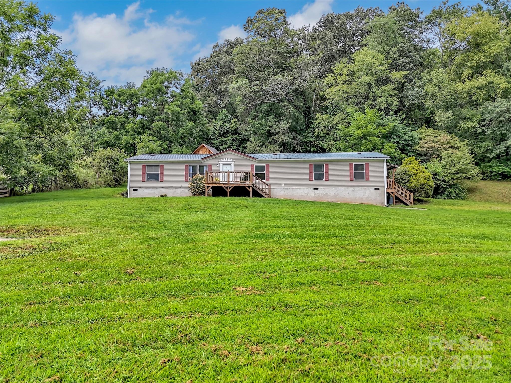 *Priced to Move ~ Motivated Sellers* Looking for a 3-bedroom home in Waynesville with land, mountain views, and bonus space? This updated manufactured home on a permanent foundation offers over 2,000 sqft on 1.4 flat acres, just minutes from town. Welcome to 21 Crooked Trail, a peaceful retreat offering both space and flexibility. Situated on a large, level lot with beautiful mountain views and a small creek, this well-maintained home delivers country charm with modern convenience. The home is on a permanent foundation and has a 3-bedroom septic permit, plus two additional finished rooms perfect for an office, guest space, or hobby area. Inside, the open-concept layout features a spacious main living room, a second den or bonus room, and a large kitchen with adjacent laundry area. Laminate flooring runs throughout the home for easy maintenance. The primary suite includes a walk-in closet, jetted soaking tub, and great natural light. Three additional rooms and two full baths offer comfort and function. Step outside to enjoy the wide, usable yard ideal for gardening, pets, play, or future projects. Two outbuildings provide excellent storage, including a recently added cabin-style shed—perfect for a guest suite, artist studio, or workshop. This move-in ready property is ideal for buyers seeking space to grow, work from home, or enjoy peaceful living with quick access to shopping, dining, and local mountain attractions. Only a short drive to Waynesville, Maggie Valley, and Lake Junaluska. Whether you're starting out or downsizing with room to spare, this home checks all the boxes.