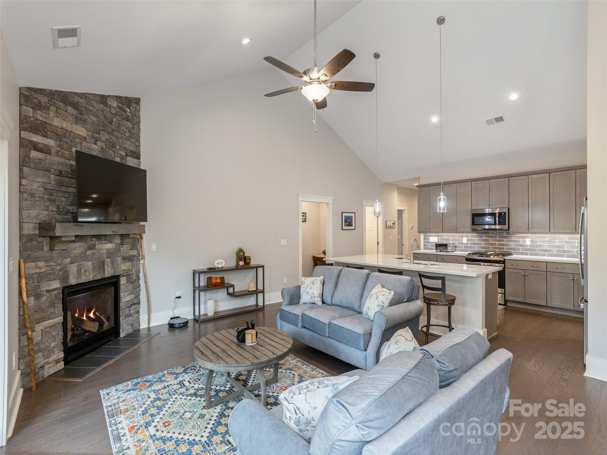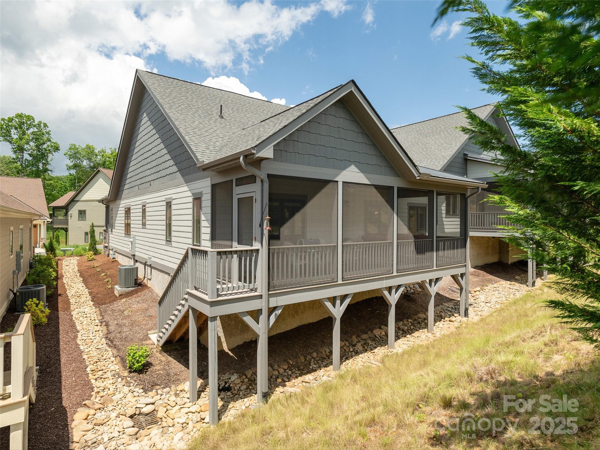 Experience the epitome of modern living in this beautifully maintained townhome, ideally situated for effortless access to the Sports & Fitness Center, inviting outdoor heated pool, and charming community garden. The open-concept layout, featuring gleaming wood floors, ensures seamless flow for both entertaining and daily life. Prepare culinary delights in the sleek, contemporary kitchen, boasting a large island, walk-in pantry, and premium GE Profile appliances, all illuminated by elegant recessed lighting. Unwind by the cultured stone fireplace under a vaulted ceiling, or enjoy tranquil moments on the relaxing screened-in back porch or welcoming open front porch. Beyond your doorstep, discover the unparalleled amenities of this award-winning community, rated one of America's Top 50 Best Master-Planned Communities by Where to Retire Magazine. Enjoy the vibrant Clubhouse with its library, meeting/card rooms, and gather around the fire pit by the stream-fed fishing pond. Embrace an active lifestyle with a semi-private 18-hole Golf Course, tennis, pickleball, bocce ball, and a plethora of social activities. Conveniently located near the charm of Brevard, the amenities of Hendersonville, and the allure of South Asheville, with a grocery store just moments away, this home truly offers the best of Western North Carolina living.
