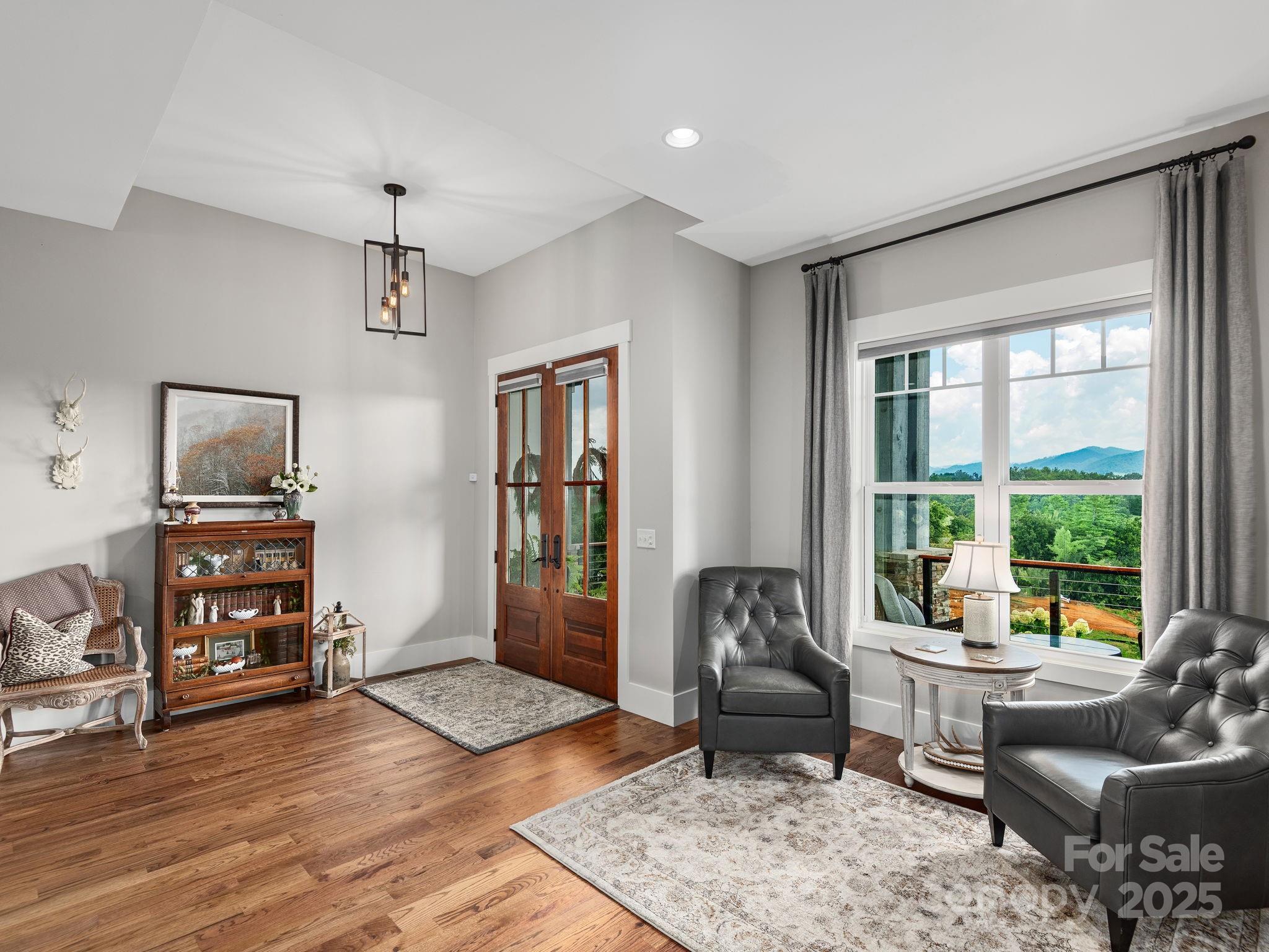 Breathtaking mountain views are the centerpiece of this 3BR/2BA home. An open floor plan connects the living, dining, and kitchen areas, all oriented to capture long-range vistas that change with the light of day. The gourmet kitchen features designer finishes and a large island perfect for gathering. The main-level primary suite offers a spacious retreat, and a versatile upstairs bonus room is ideal for an office, media, or guest space. Expansive windows fill the home with natural light, highlighting hardwood floors and custom details throughout. Outdoor living shines with a covered porch, rear porch, and firepit, perfect for sunsets, morning coffee, or entertaining. Conveniently located just 15 min from downtown Asheville and only moments to Weaverville’s charming shops and dining. Every detail of this home has been designed for relaxed living, entertaining, and taking in the beauty of the Blue Ridge Mountains.