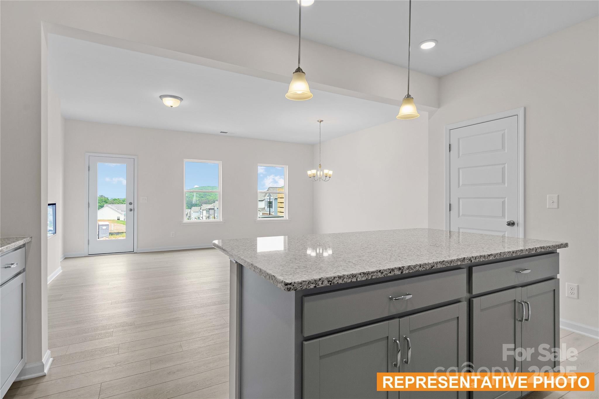 Welcome to The Suwanee floorplan at Hickory Glen! This low-maintenance, two-story townhome is just 10 minutes from Uptown Charlotte and offers 1,629 sq ft with 3 bedrooms and 2.5 bathrooms. Step inside to an open-concept main level featuring a modern kitchen with 36" cabinets, granite countertops, a large island, stainless steel appliances, and a generous pantry. The kitchen flows seamlessly into the dining area and spacious family room—perfect for everyday living or entertaining. Durable vinyl plank flooring runs throughout the first floor. Upstairs, the primary suite features a walk-in closet and an en-suite bath with double marble vanities and a large, tiled shower. The primary bedroom also has a tray ceiling to elevate the space. Two additional bedrooms, a full hall bath, and a convenient laundry room complete the upper level. Blinds are included throughout. Located in the Hickory Glen community, which offers just 46 townhomes—with only two units per building—every home is a desirable end unit!