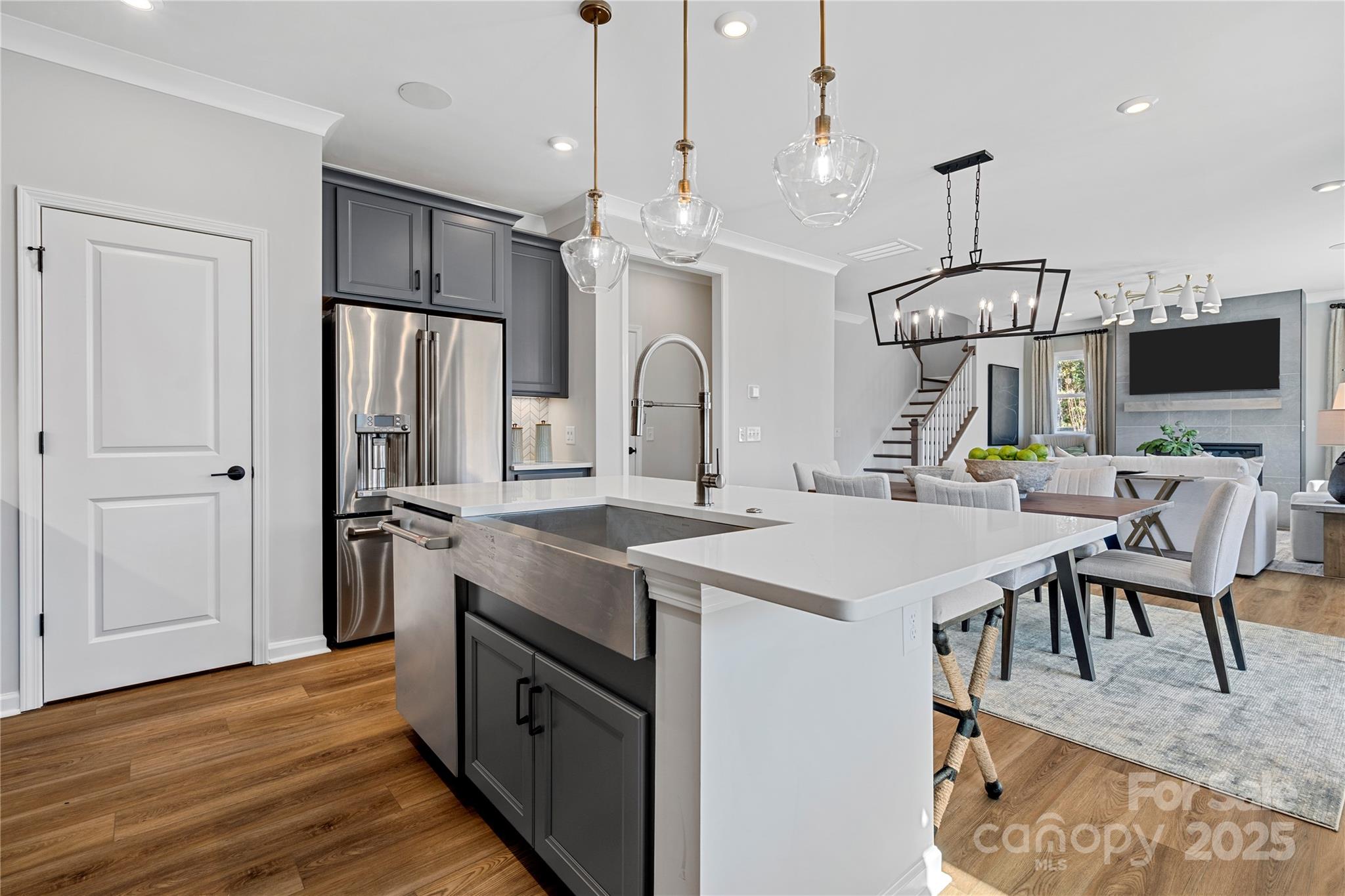 Walkable, welcoming, and full of upgrades! This Woodwright plan is one of the limited opportunities remaining to own a home at Alton Creek. Near the front of the community with a green space right outside your front door, this home is private and perfectly walkable to shops, restaurants, and grocery stores. Guest Suite with Full Bath on Main Gas Fireplace at Great Room Large Covered Outdoor Living Space Backing to Mature Trees on Corner Lot Gourmet Kitchen with Large Island, Luxe Wood Cabinets, Quartz Countertops, Gas Stainless Range with Vent Hood, and Wall Oven. Oak Box Stairs with Modern Open Railing on First Floor Full Brick Exterior with Inviting Front Porch