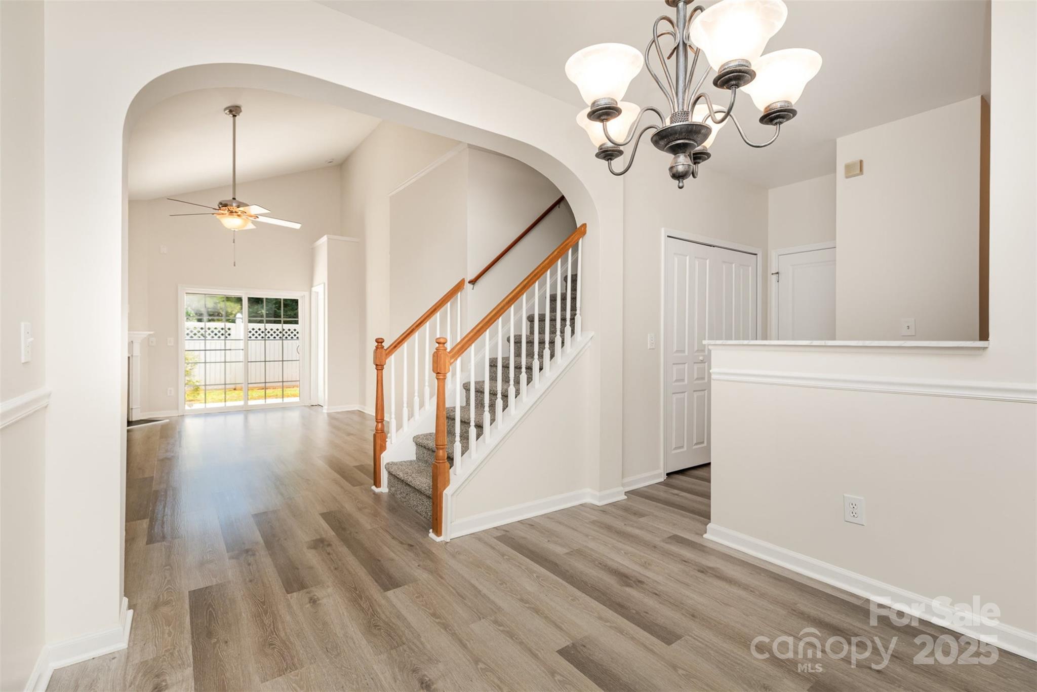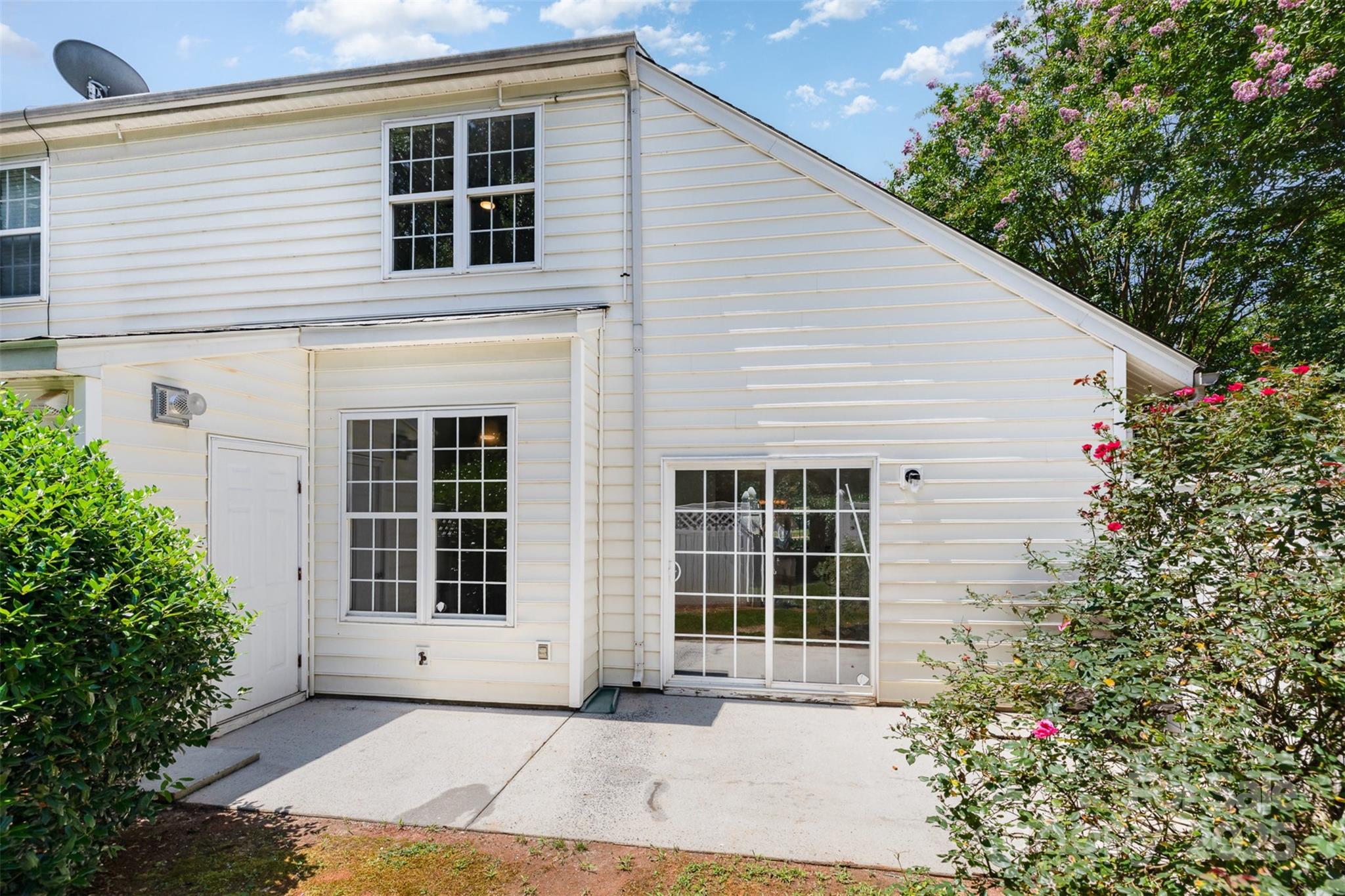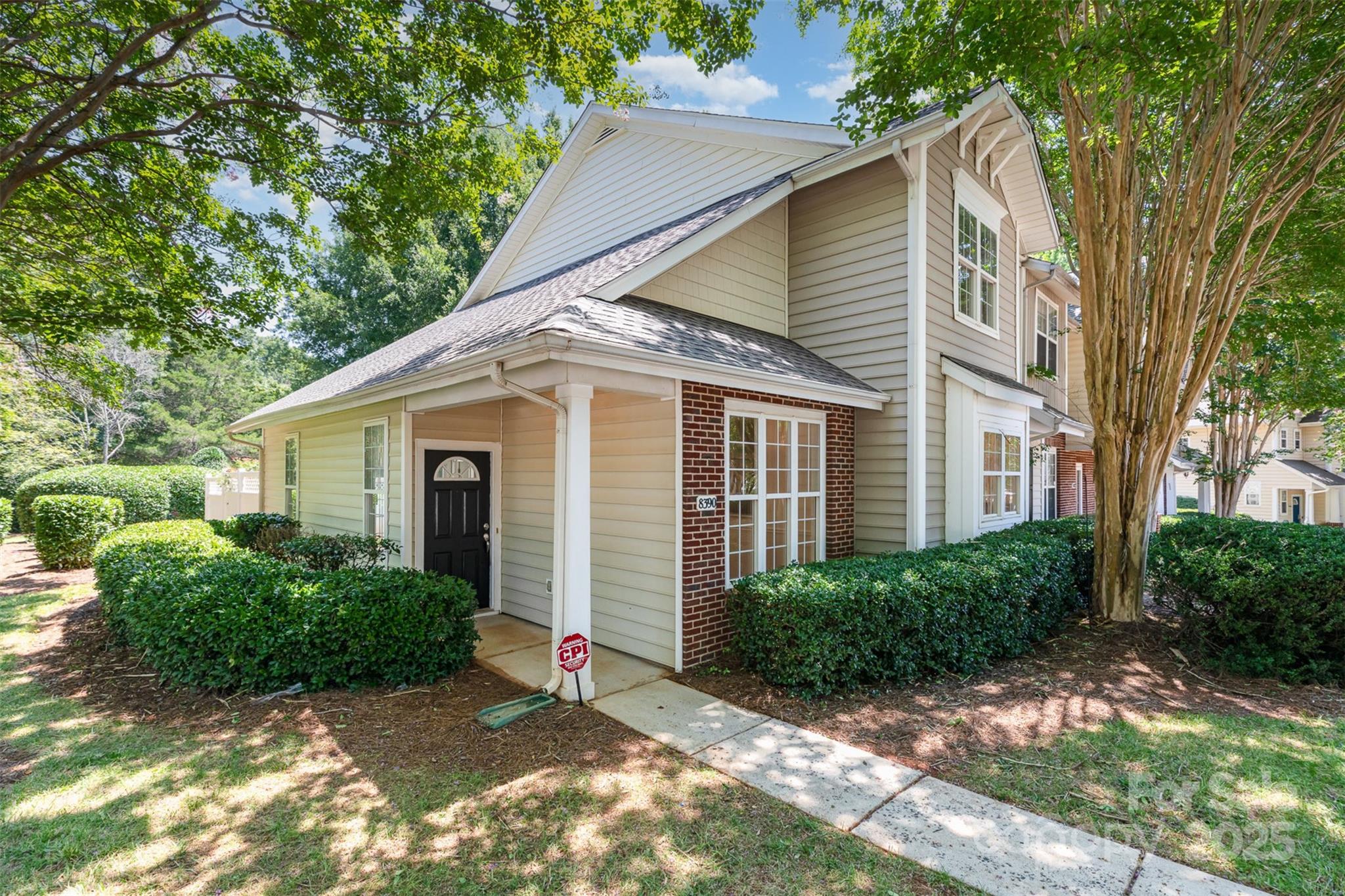 Beautifully renovated end unit townhome on corner lot with main level primary bedroom & community pool! Home is conveniently located between I-485 & I-77 providing you with quick and easy access in and around the Charlotte area. Inside has been fully renovated! Updates include new carpet upstairs & vinyl plank flooring downstairs, New countertops, sink & dishwasher installed in the kitchen, Water lines, gas regulator & gas lines were replaced, stairs painted & repaired., Light fixtures & faucets changed throughout, and new interior paint & ceiling fans installed! Living room has vaulted ceilings & cozy gas fireplace. Unique archway leads to dining area & bright, spacious kitchen. Primary bedroom on main allows for one of the two upstairs bedrooms to be used as an office or flex space. Back patio space has full white fence providing you with ultimate privacy. Community is peaceful and perfect for families or hosting friends during the summer at the outdoor pool!