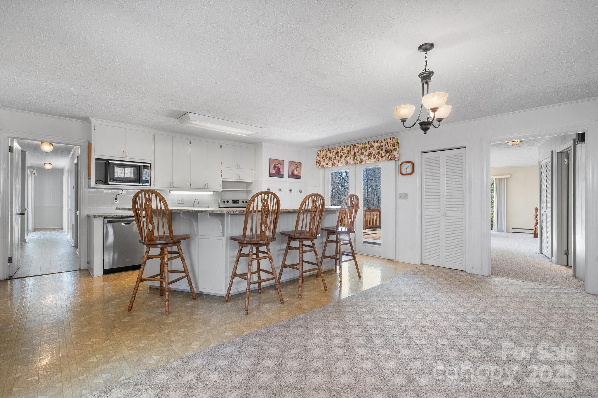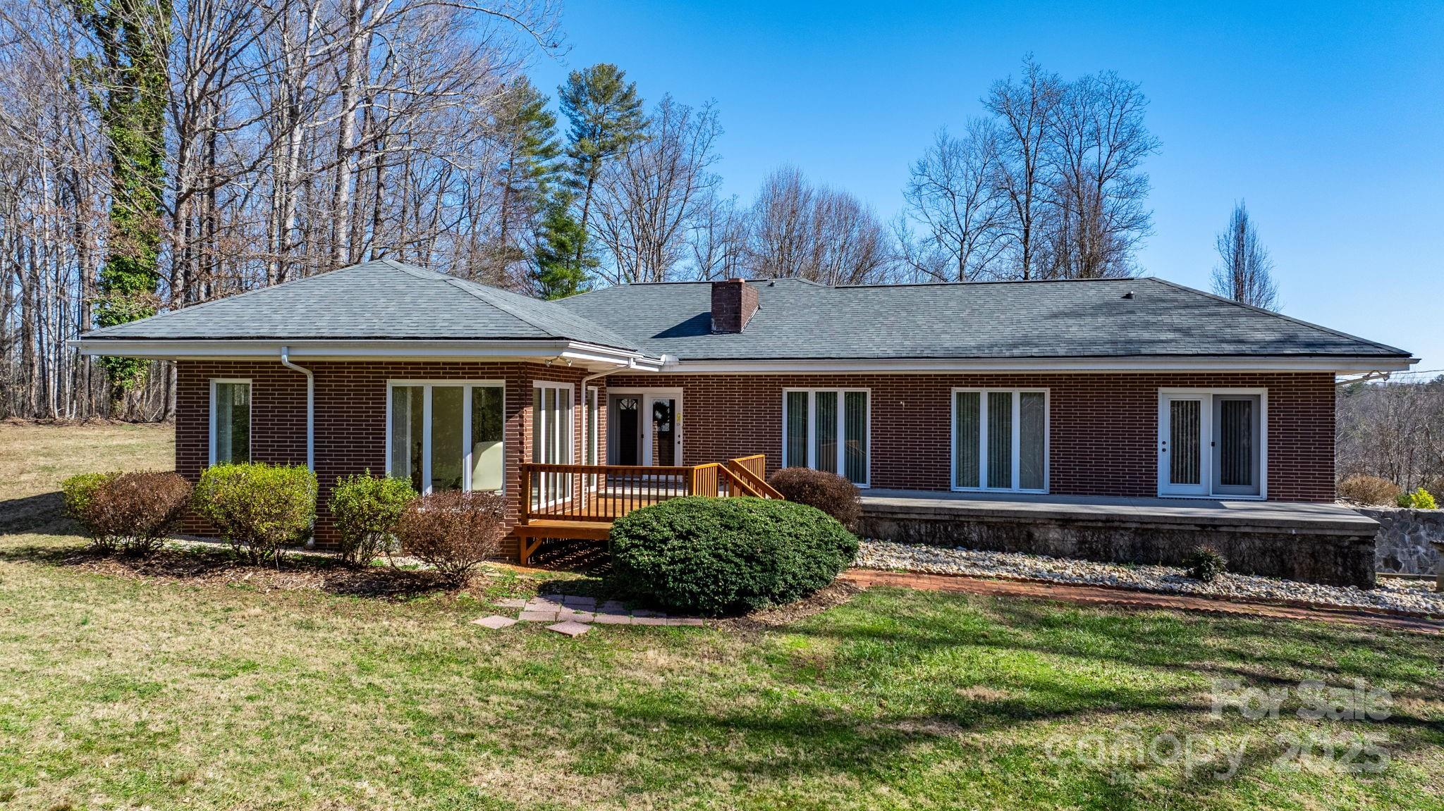 Hilltop Retreat! This 4-bedroom, 2-bath home with 3.5 acres has room for gardening, backyard chickens and outdoor recreation. The home boasts an open floor plan, perfect for family gatherings and entertaining. The great room is a cozy retreat with a striking interior stone wall and fireplace. The kitchen features granite countertops & a breakfast bar for casual dining. The primary suite offers direct access to the deck and patio. The ensuite bath adds convenience while 3 additional bedrooms and a full bath with a walk-in shower complete the main level. Downstairs, a 753 sq. ft. family room with a fireplace expands your living space. Though not counted in the heated square footage due to the ceiling height, this finished space is perfect for a game room or home theater. Outside, the 26X26 detached double-car garage has a loft overhead for extra storage, and an outbuilding provides even more space for tools, etc. Conveniently located between Lenoir and Morganton. No city taxes!