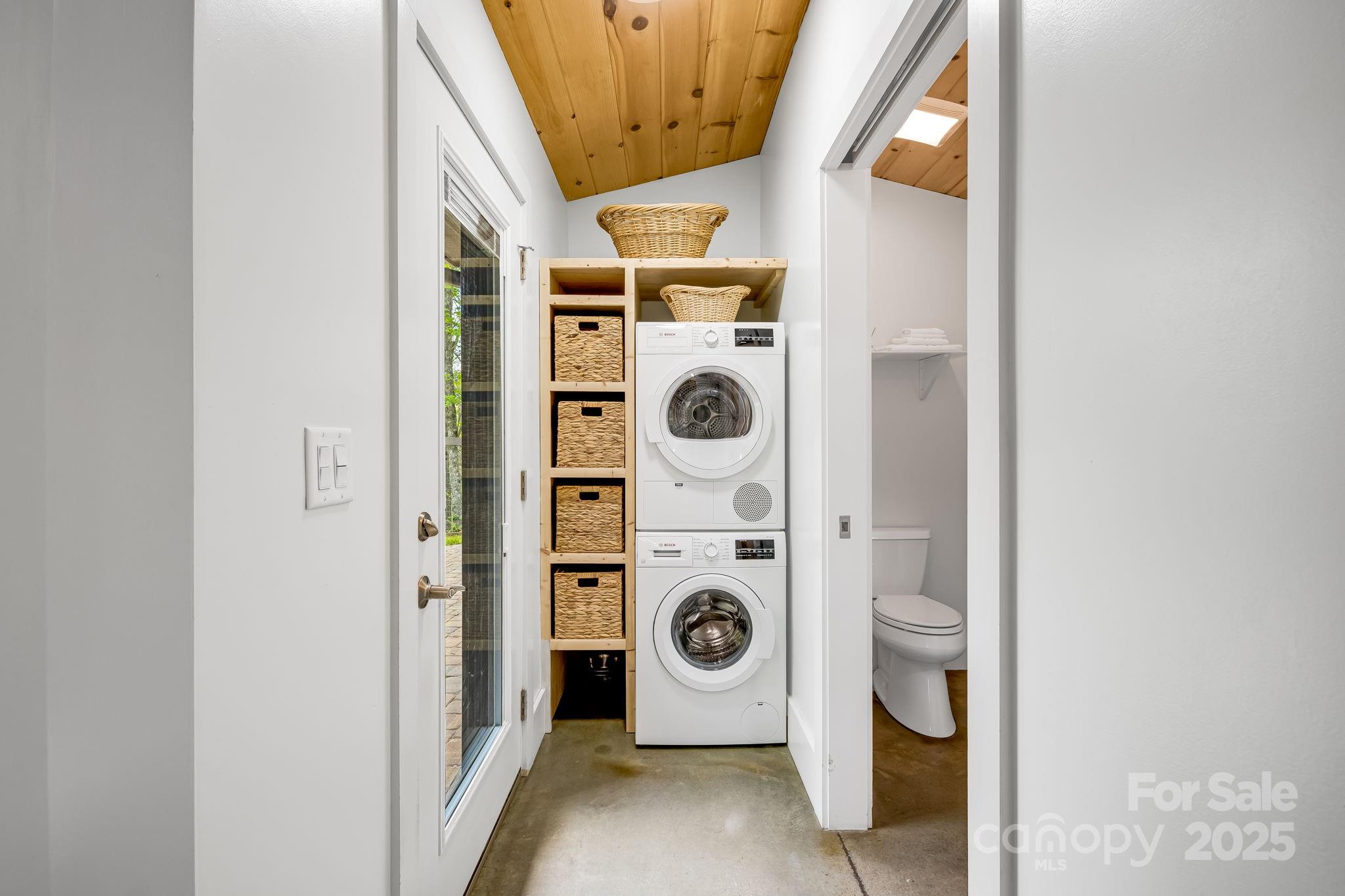 Escape to serenity with this immaculately maintained custom Deltec High Energy Efficient Home on 5.5 beautiful and private wooded acres minutes from Hot Springs. Sold turnkey - all furnishings, appliances, dishes and linens included. This one-of-a-kind Luxury Fishing retreat combines mountain living with modern comforts, featuring stunning woodwork, vaulted ceilings, custom built-ins, custom polished concrete, 600 foot well, mid-century pieces and windows that bring the beauty of nature indoors. Direct private access to Laurel River. Outside, immerse yourself in the lush grounds, with hiking trails, scenic views, and plenty of space for outdoor activities such as trout fishing in the famous Laurel River. Enjoy amazing views from your back porch and fire-pit. An easy, 15 minute drive to Hot Springs, 25 minutes to Greeneville TN, and 40 minute drive north of Asheville. Land and area has been spared from any major hurricane damage.
