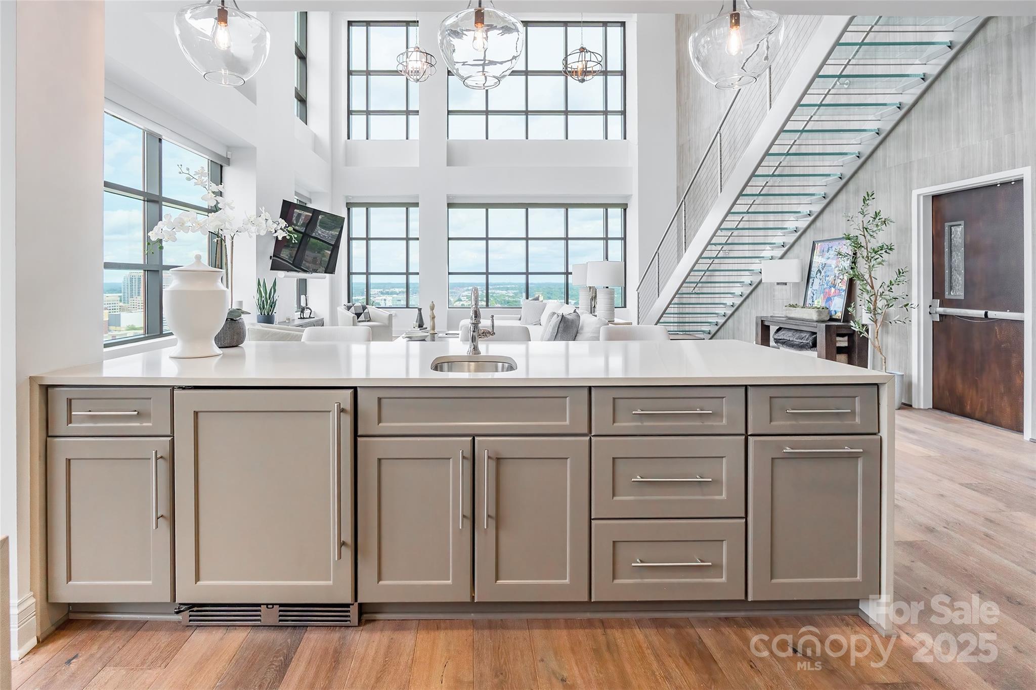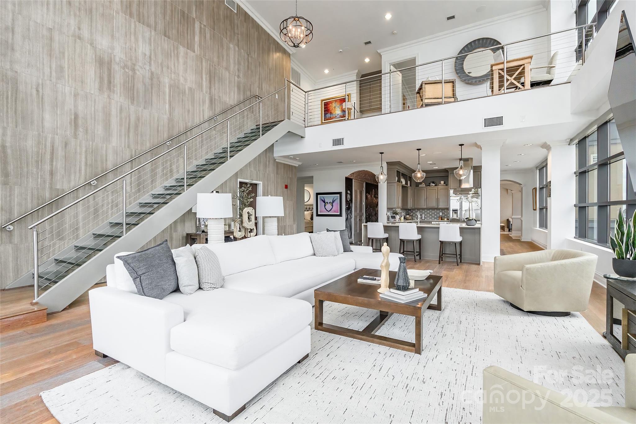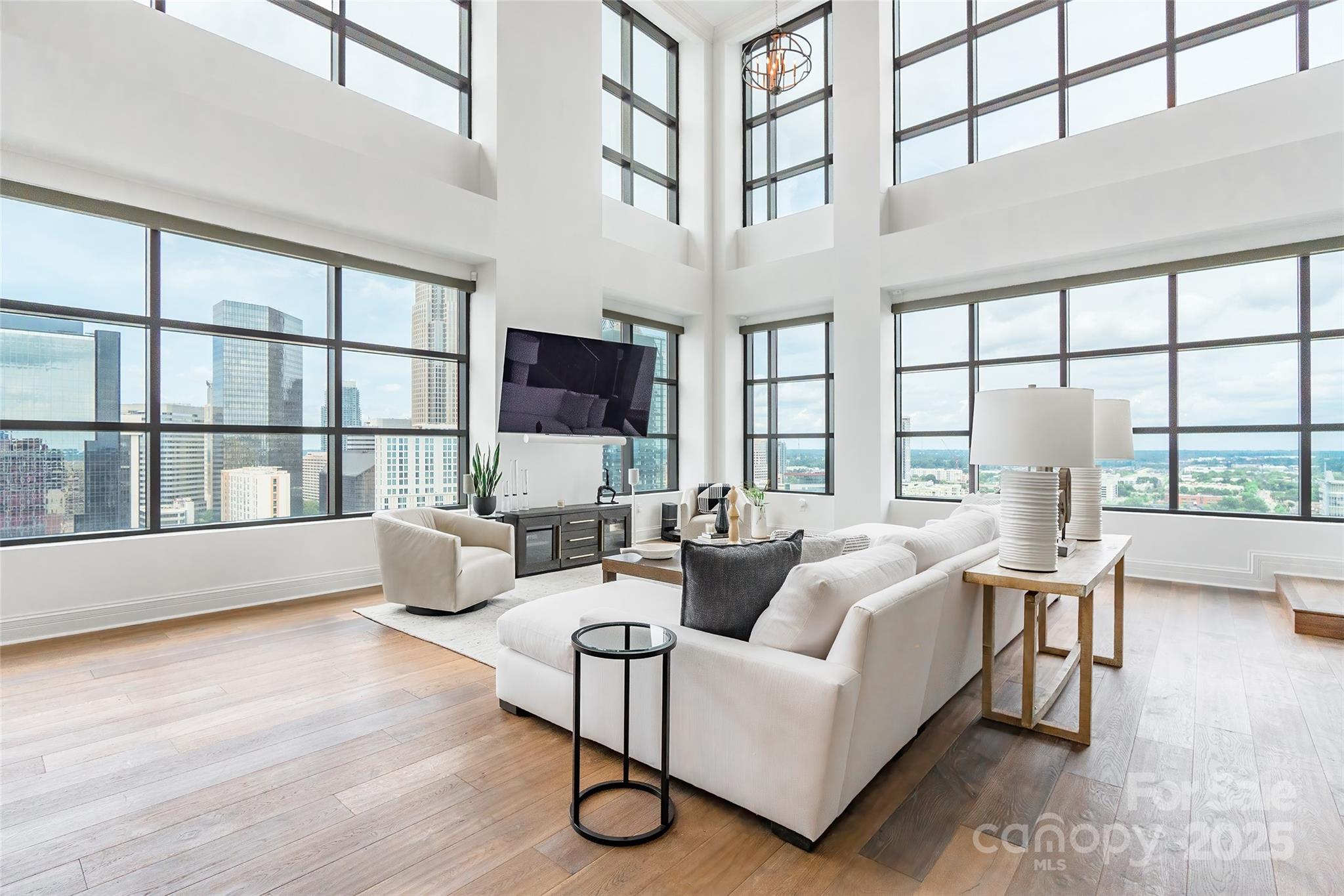 Step into elevated elegance with this exquisite two-story penthouse in vibrant Uptown Charlotte. Arched doorways lead you to a dramatic great room with cathedral ceilings & wall-to-wall windows framing panoramic views of the Charlotte skyline. The kitchen is a true centerpiece with a large island, gas range, striking backsplash, and butler’s pantry, all open to the great room. Upstairs, the loft with wet bar overlooks the living area below & continues the stunning views. The primary suite includes a walk-in closet & ensuite bath with an oversized glass shower & garden tub. Skye Condominiums offers an unmatched lifestyle with amenities including valet service, rooftop pool, rooftop restaurant access at Fahrenheit, fitness center with towel service, 24-hour concierge, controlled-access resident floors, theatre room, game room, club room, common area Wi-Fi, and room service. This is city living at its most elevated with every detail designed to impress & every view unforgettable.