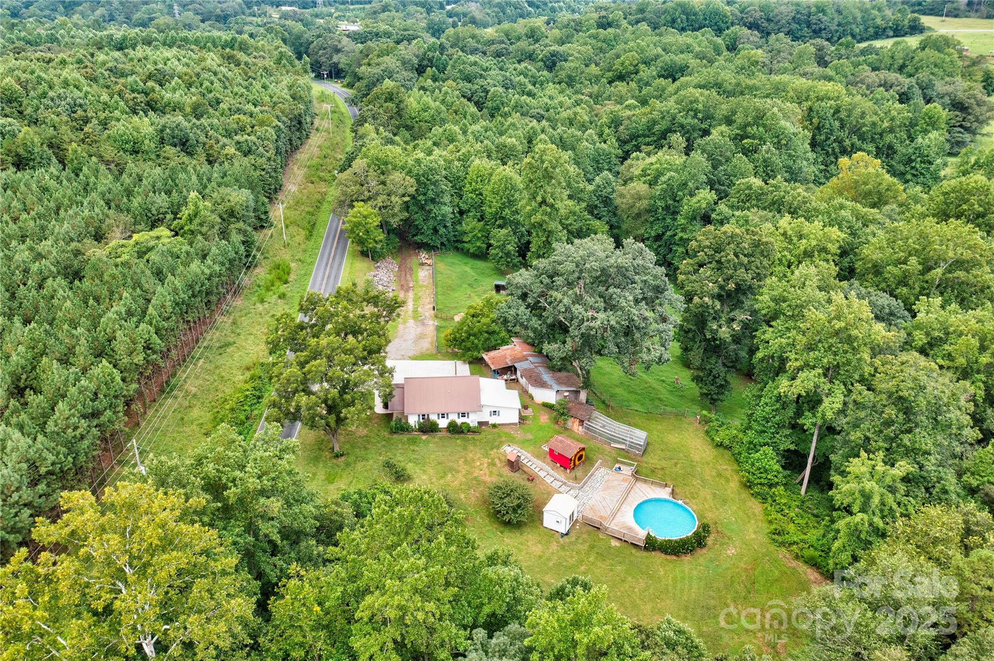 MUST SEE listed as a 2 bedroom but sellers utilized the upstairs to make it a 4 bedroom home complete with heat and air. Charming 5-Acre Homestead with Modern Comfort & Country Charm This beautifully updated property offers the best of rural living with modern upgrades. Set on 5 serene acres with a creek, it features: Large chicken coop, spacious workshop, and oversized concrete driveway New windows, flooring, kitchen with handmade island & 2 pantries Remodeled bath with wet room, dual shower heads & bench Wood stove, new AC unit, and upstairs mini splits Fruit & nut trees (peach, plum, pecan, walnut), muscadines & elderberries Fully fenced farm area with 2 large stalls—ready for livestock 27-ft pool (54" deep) with 900 sq ft deck, heated/cooled pool house Additional room could be used for a bedroom Cold smokehouse for bacon, jerky, or cheese Rock stairwell leading to pool area Whether you want a peaceful retreat, working farm, or sustainable lifestyle, this property has it all.