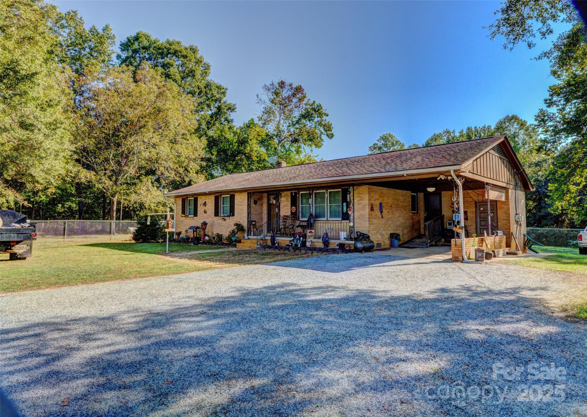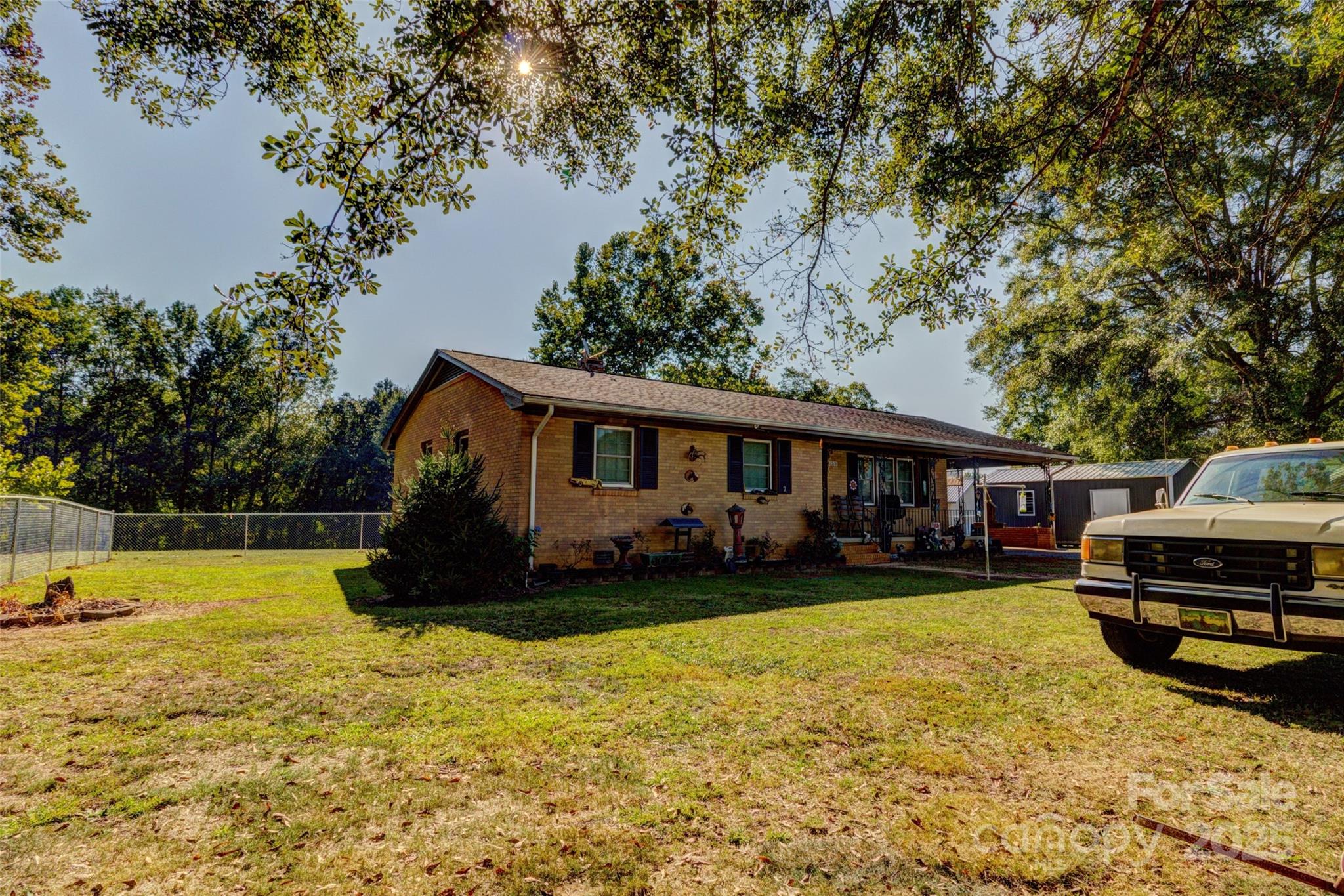 This brick ranch home features three bedrooms and 1.5 bathrooms, situated on 2 acres of land in rural Cleveland County. Most of the land is cleared and mowed. The home boasts original hardwood floors. The refrigerator, range, washer, dryer, and a fireplace in the den (located near the kitchen) will remain with the property. Although cameras are installed, they are not currently connected. The propane gas HVAC system was installed in March 2019, and both the fence is new. The building does not remain.