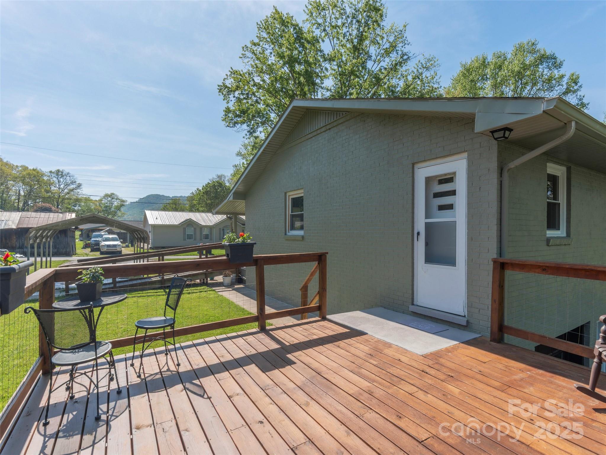 Charming brick ranch with classic appeal and modern updates! This move-in ready home features warm wood flooring, butcher block countertops, stainless steel appliances, and a cozy wood-burning fireplace in the living room. Take in lush mountain views from your front porch, or unwind in the spacious, level yard perfect for enjoying the outdoors and hosting gatherings around the fire pit on crisp mountain evenings. The basement offers ample storage for all your outdoor gear or the potential to finish it out into a bonus living space, complete with a stunning stone fireplace. Fresh, low-maintenance landscaping adds to the home’s curb appeal, and a large side deck is ideal for BBQs and entertaining. Just a few houses down, you’ll find a river where you can fish or simply relax to the sounds of nature. Don't miss this rare opportunity to own a peaceful mountain retreat that’s both functional and full of charm!