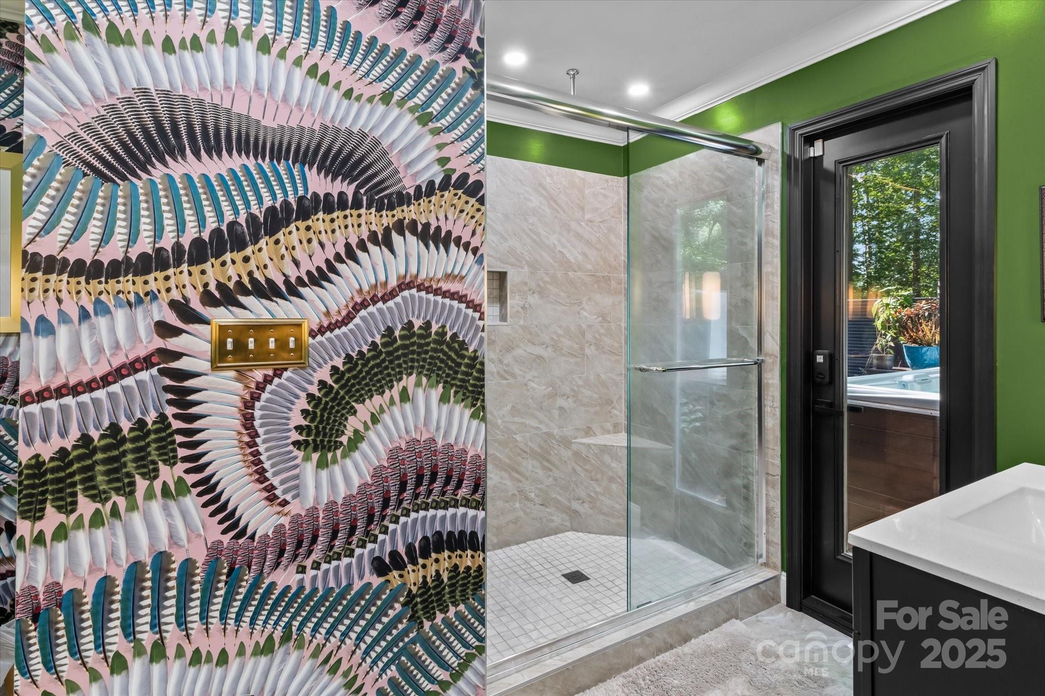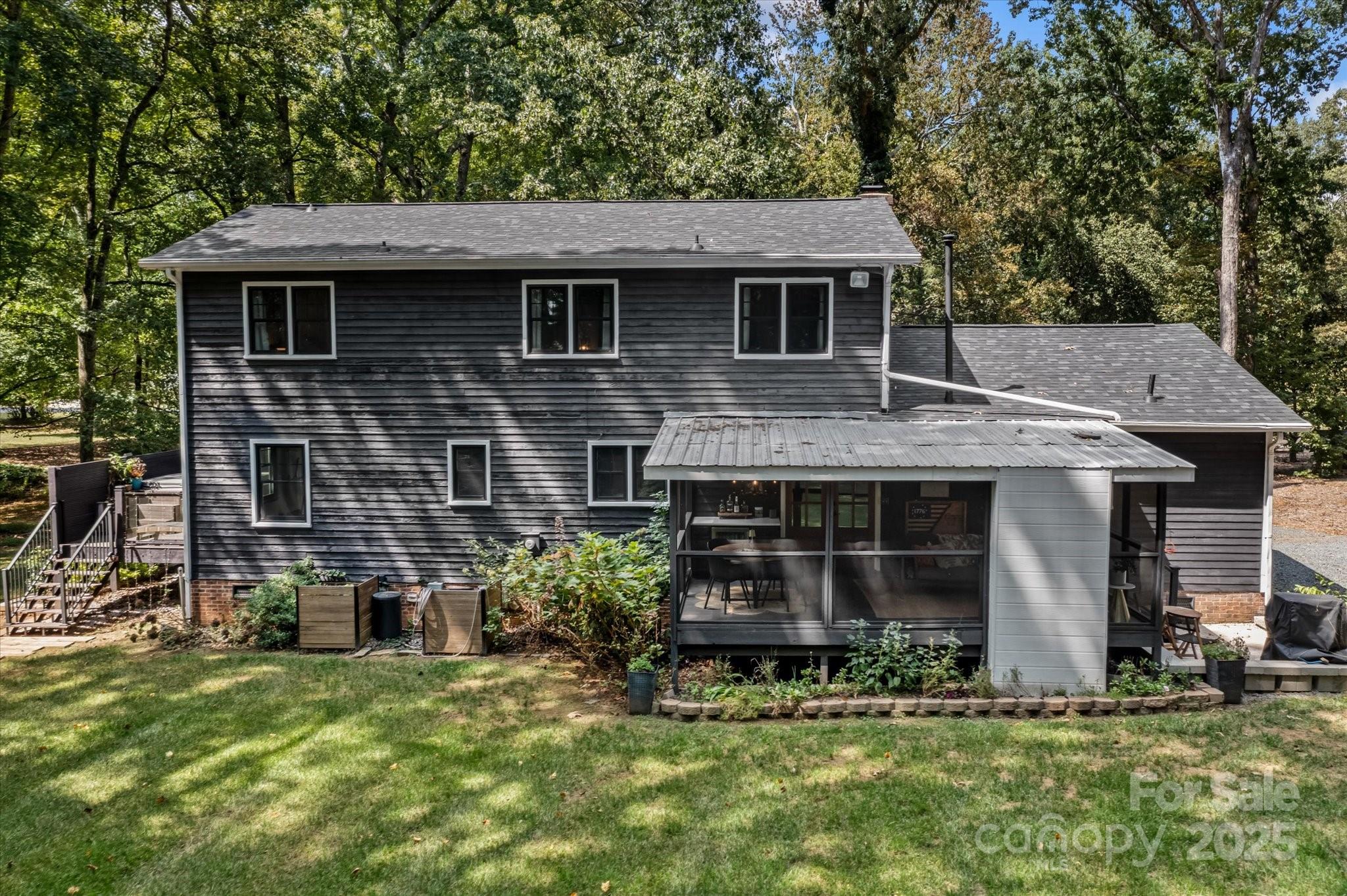 Welcome home to a masterfully curated home that is nestled on 3 wooded acres in Mint Hill. Offering privacy, artistry, and custom designer finishes; this property is a rare sanctuary inside the 485 loop. This 5BR, 3BA home with a 2-car detached garage (with commercial-grade Polyurea flooring) features 3 fireplaces (wood, gas & electric) and tasteful upgrades throughout: Fully finished 2-car garage (2024), Monotech Monolithic hardwood floors (new Sept 2025), architectural shingle roof (2023), triple-pane windows (2022), and Mahogany doors (2022). The main-floor primary suite is an escape of its own with the private entrance to a secluded hot tub deck with Massaranduba Brazilian hardwood decking and a Caldera Seychelles 7-person saltwater spa. Distinctive finishes elevate every space for even the most discerning of buyers - ancient reclaimed Mediterranean stone, travertine grilling patio, imported wallpapers, and designer lighting. All this with NO HOA! See the Special Features sheet for more upgrades and improvements!