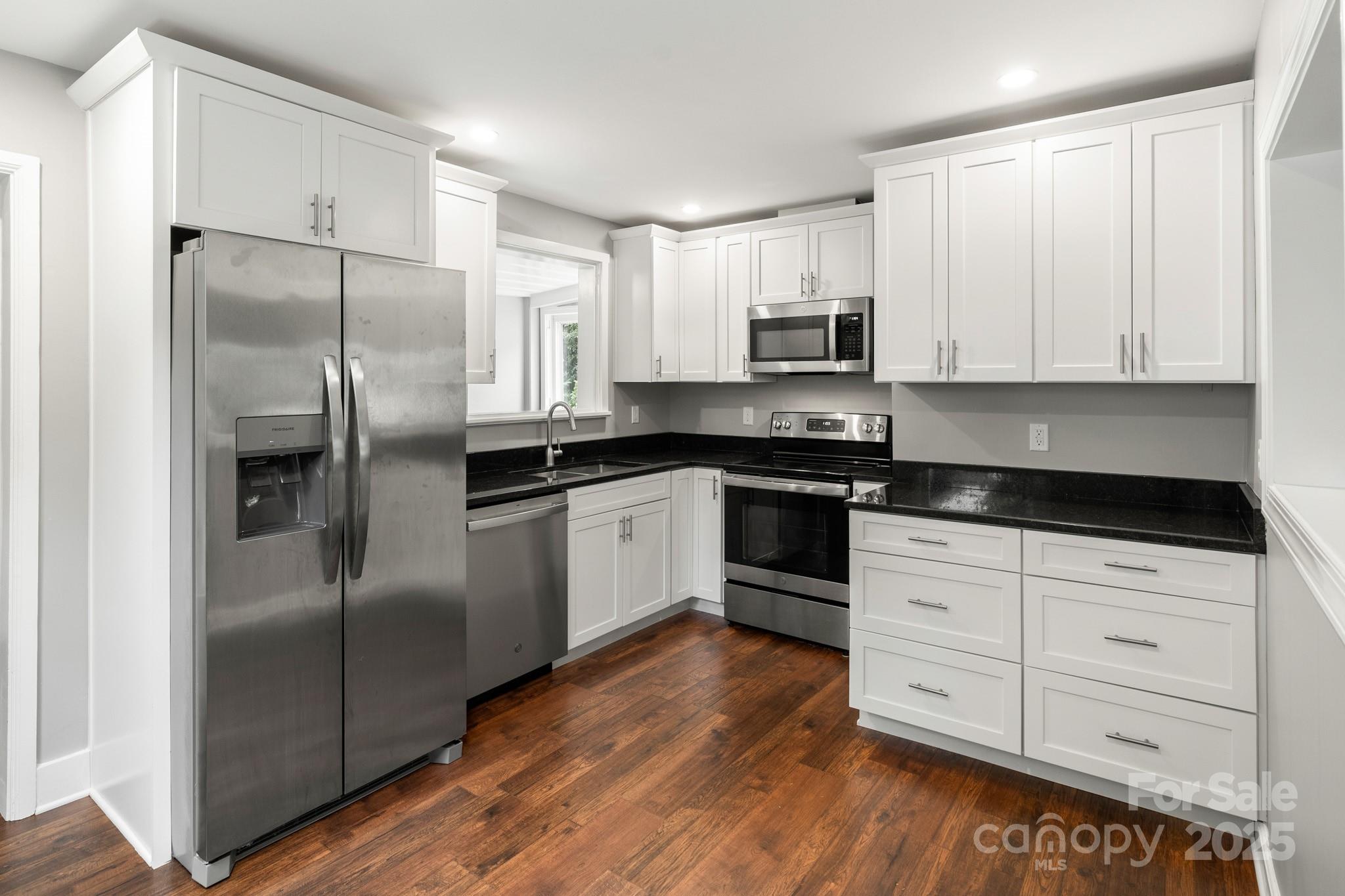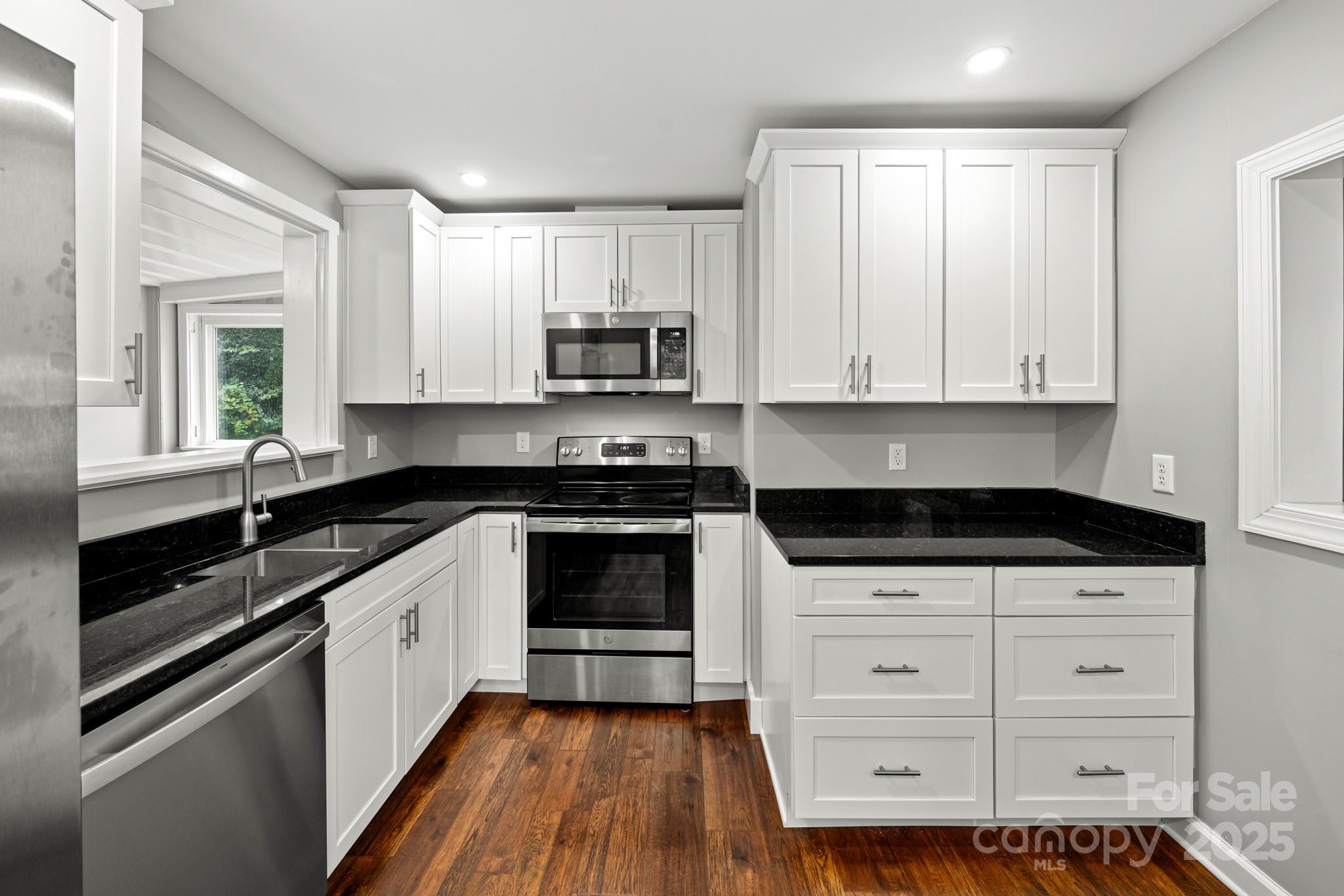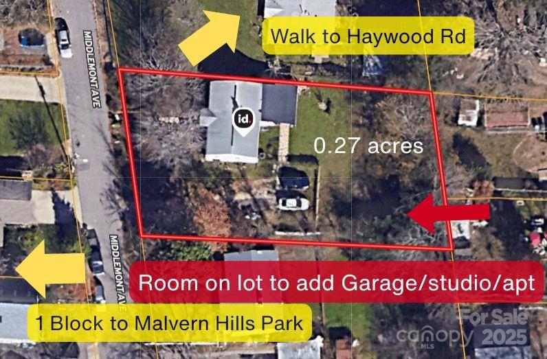 Classic West Asheville cottage in a prime location! Just one block from Malvern Hills Park (tennis & pickleball courts, walking trail, playground, and creek), an easy stroll to Haywood Road’s vibrant shops, restaurants, and breweries, and only a mile from the Hominy Creek Greenway. This 2-bedroom, 1-bath charmer blends modern updates with timeless character. The remodeled kitchen features granite counters, stainless steel appliances, soft-close drawers, and a cozy eat-in nook. A large picture window and gleaming hardwood floors create a warm, inviting living room, while the updated bathroom—with tile shower surround—strikes the perfect balance of period style and modern convenience. Both bedrooms are comfortably sized and filled with natural light. The spacious laundry/mudroom opens to a covered back porch overlooking the oversized lot—a rare find in West Asheville! As if the location in West Asheville is not perfect enough already, the oversized lot adds even more potential to this home! Keep the large backyard to enjoy just as it is, or there is plenty of room to add a garage, a studio/craft space, an outdoor kitchen pavilion, or accessory apartment....so many options to craft your perfect lifestyle! Rest easy knowing so many of the house systems have been updated too: new roof in 2023, new gas furnace and air conditioning in 2021, new water heater 2024, encapsulated crawl space for moisture control, and efficient replacement windows. This home offers not just a place to live, but a lifestyle—walkable, connected, and full of potential.