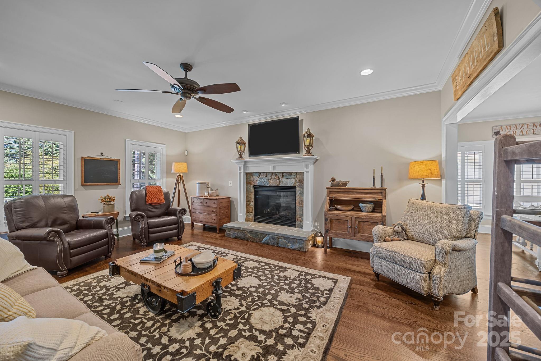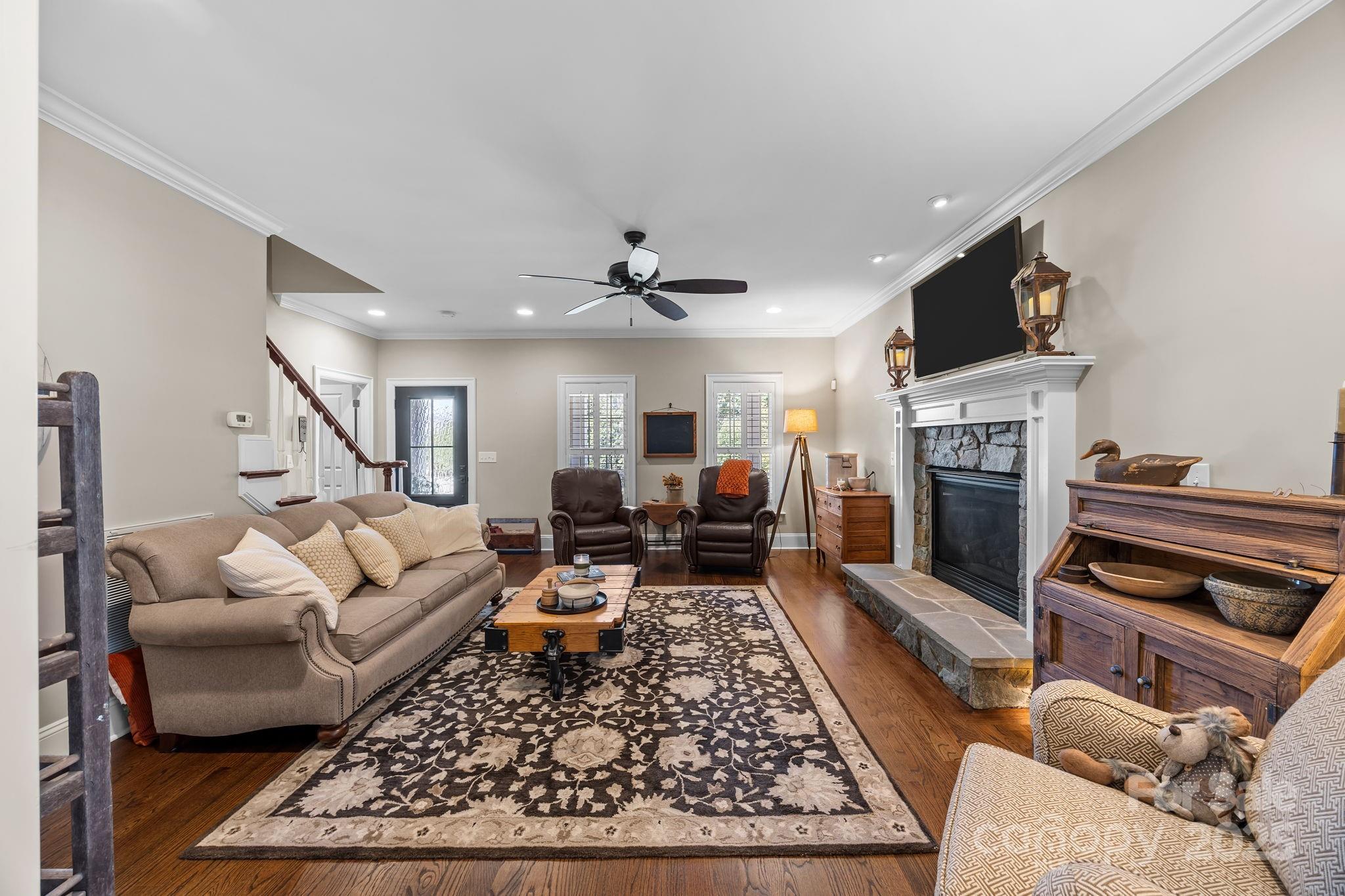Welcome to 141 Yellow Jacket Circle! Nestled in the quaint Craftsman Pointe community with NO HOA. This beautifully maintained home offers the perfect blend of comfort, style and space. Enjoy Southern charm from the wrap-around covered front porch with seasonal water views, relax year-round on the screened-in side porch or simply unwind in a secluded backyard. Inside, hardwood floors, a cozy fireplace, and gourmet kitchen create the ideal setting for gatherings The main-level primary en-suite is a true retreat, showcasing a soaking tub and tiled shower, beautifully renovated in 2019. A functional laundry room with a full bath adds everyday convenience. Upstairs, escape to the expansive rec room, perfect for lounging, gaming, or entertaining guests. Additional highlights include a new roof and exterior paint, full-yard irrigation system, plantation shutters, and a tankless water heater.
