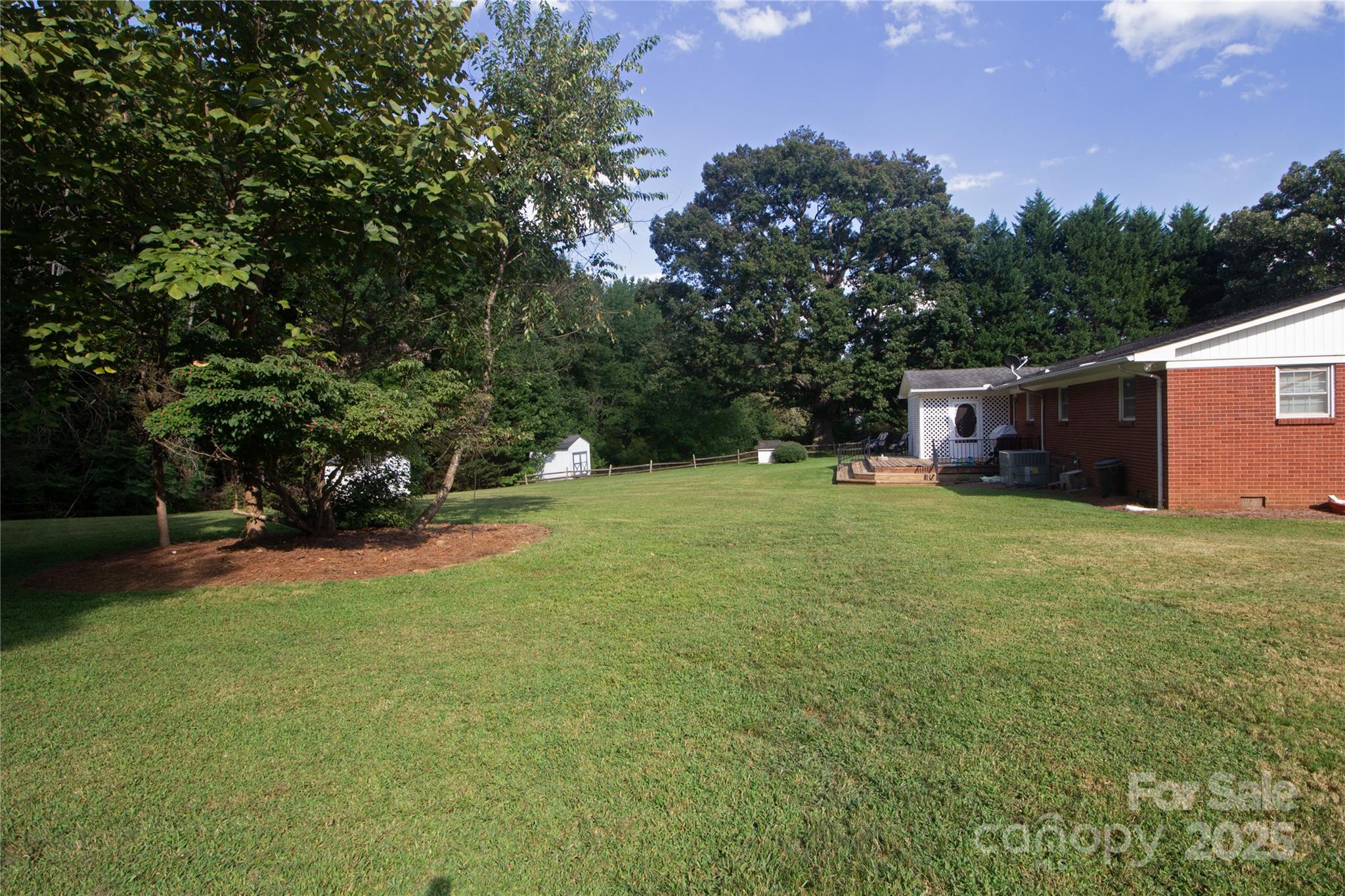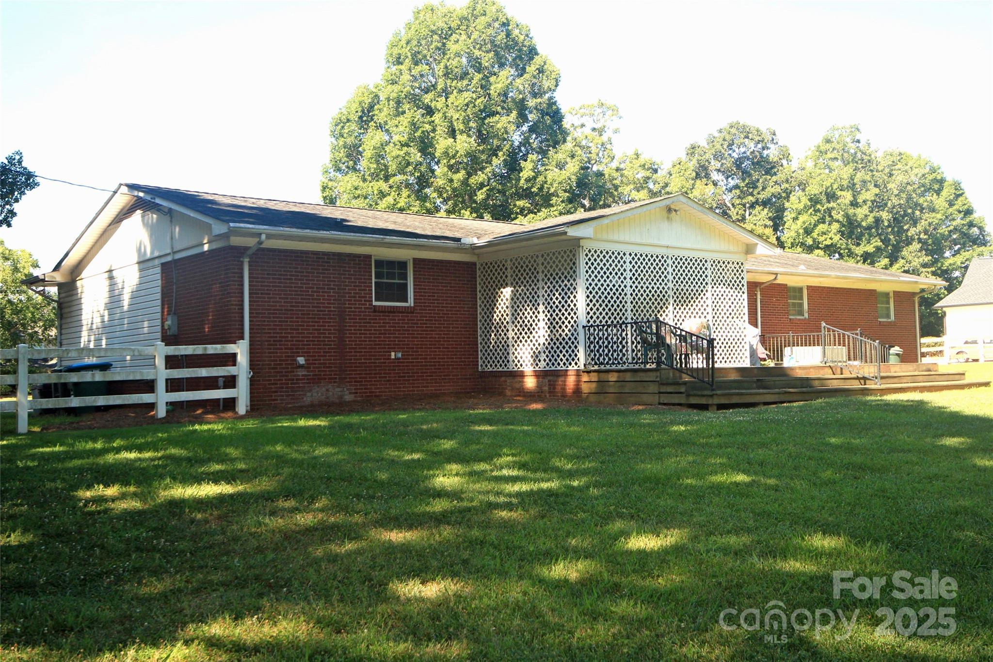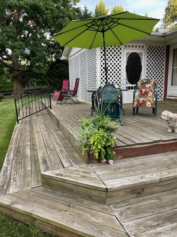 Low-mainteenance brick ranch with a 2-Car garage, conveniently located in Matthews with a beautiful 1.18 acre setting. Just mins. to shopping, dining, I-485, & Independence Blvd. Home offers spacious rooms and a nice open flow. The family room boasts crown moldings, natural sunlight, & a beautiful corner brick fireplace that adds cozy charm and warmth without limiting the living space. The open kitchen features updated oak cabinets (late 80's remodel), lots of counter-top space, cooktop island/breakfast bar, double wall oven, tile backsplash and the new refrigerator is included. The casual dining area is continuous with the kitchen and opens to the french doors that lead to an inviting screened porch. The spacious screen porch (approx. 10 x 16) is a nice retreat from sun or inclement weather. It has a ceiling fan and overlooks a gently sloping private rear yard. The rear deck is ideal for grilling and/or entertaining. The owner's suite is impressive with crown molding, double closets, a sitting/home office area, and a small private bath with a step-in shower, vanity, and new toilet. The secondary bedroom also has a private half bath and a spacious closet. The hallway full bath offers a double vanity, whirlpool garden tub and seperate step-in tiled shower. The carport has been converted to the garage. The laundry room is located behind the garage and the washer and dryer are also included. This home also has an updated heat pump and a crawl space encapsulation.