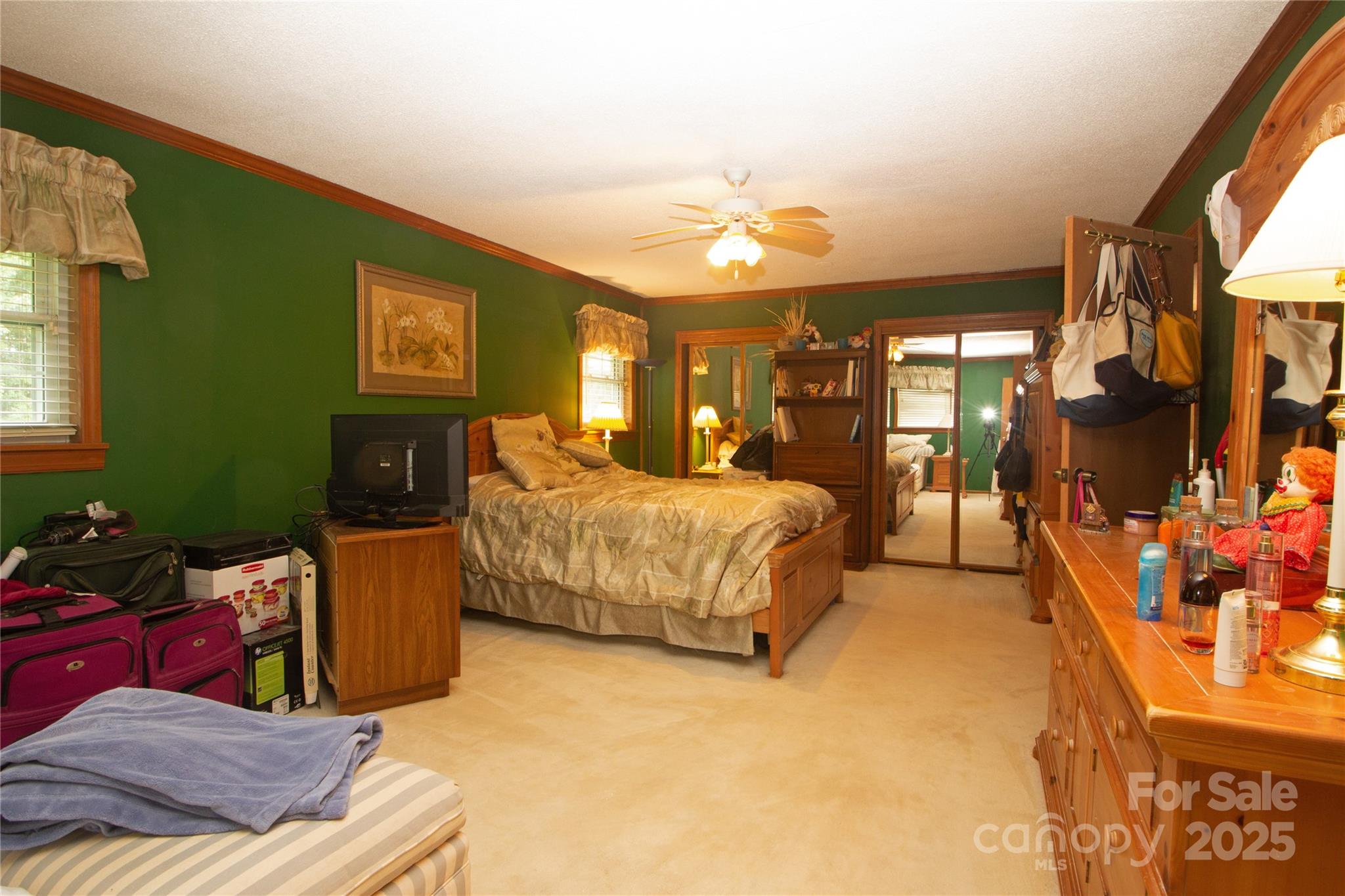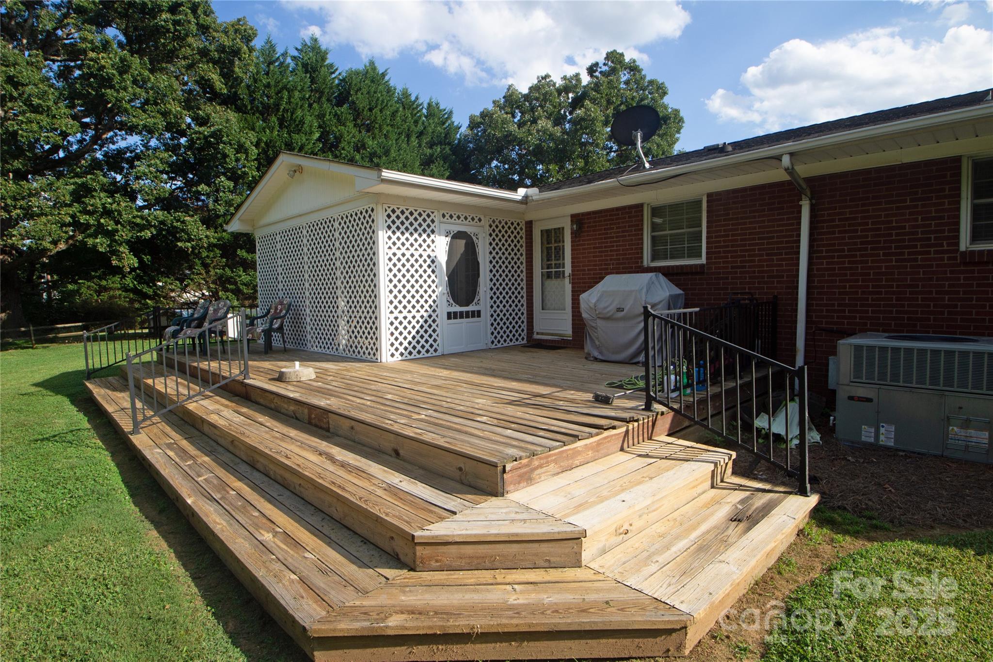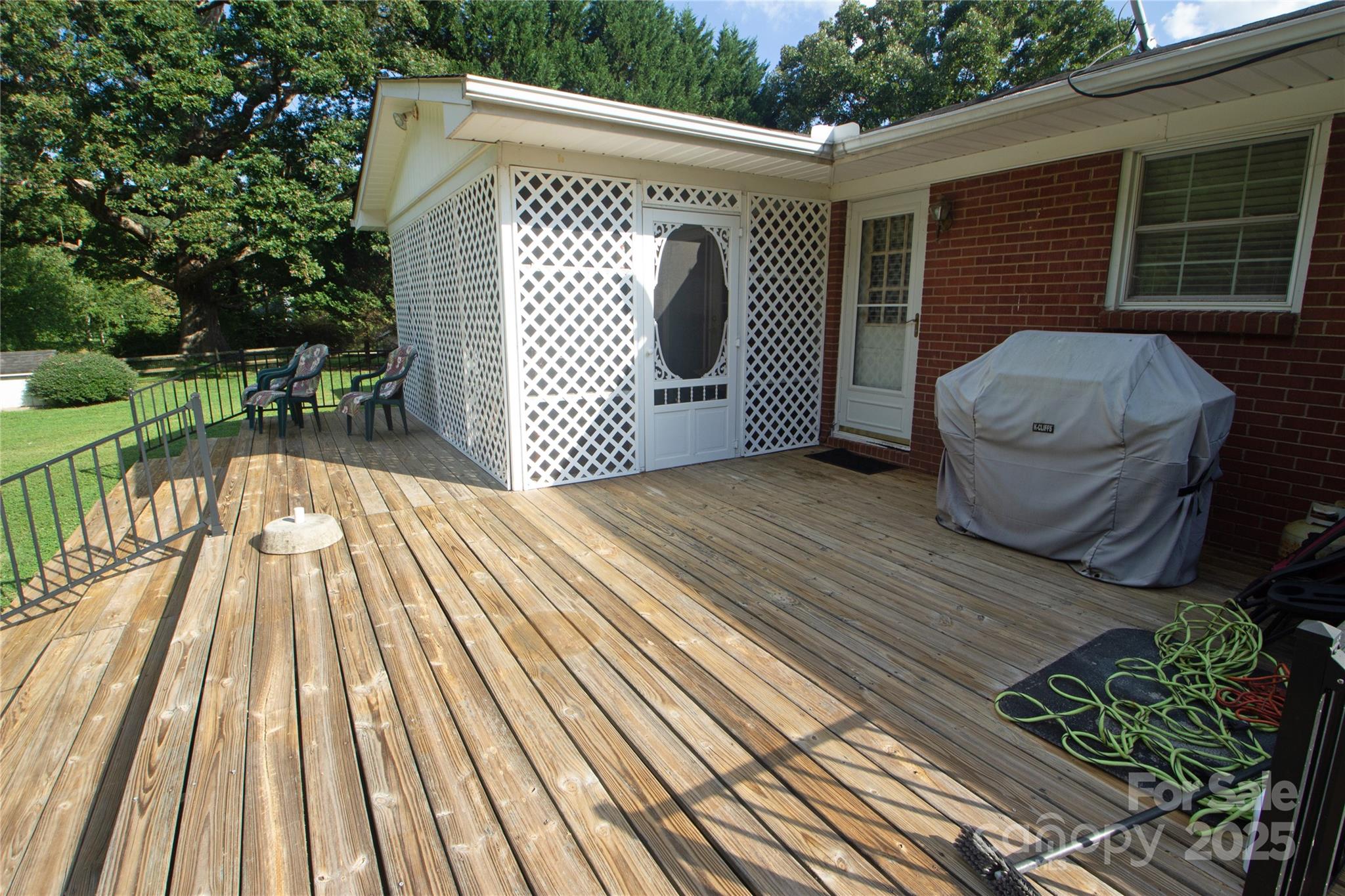 Low-mainteenance brick ranch with a 2-Car garage, conveniently located in Matthews with a beautiful 1.18 acre setting. Just mins. to shopping, dining, I-485, & Independence Blvd. Home offers spacious rooms and a nice open flow. The family room boasts crown moldings, natural sunlight, & a beautiful corner brick fireplace that adds cozy charm and warmth without limiting the living space. The open kitchen features updated oak cabinets (late 80's remodel), lots of counter-top space, cooktop island/breakfast bar, double wall oven, tile backsplash and the new refrigerator is included. The casual dining area is continuous with the kitchen and opens to the french doors that lead to an inviting screened porch. The spacious screen porch (approx. 10 x 16) is a nice retreat from sun or inclement weather. It has a ceiling fan and overlooks a gently sloping private rear yard. The rear deck is ideal for grilling and/or entertaining. The owner's suite is impressive with crown molding, double closets, a sitting/home office area, and a small private bath with a step-in shower, vanity, and new toilet. The secondary bedroom also has a private half bath and a spacious closet. The hallway full bath offers a double vanity, whirlpool garden tub and seperate step-in tiled shower. The carport has been converted to the garage. The laundry room is located behind the garage and the washer and dryer are also included. This home also has an updated heat pump and a crawl space encapsulation.