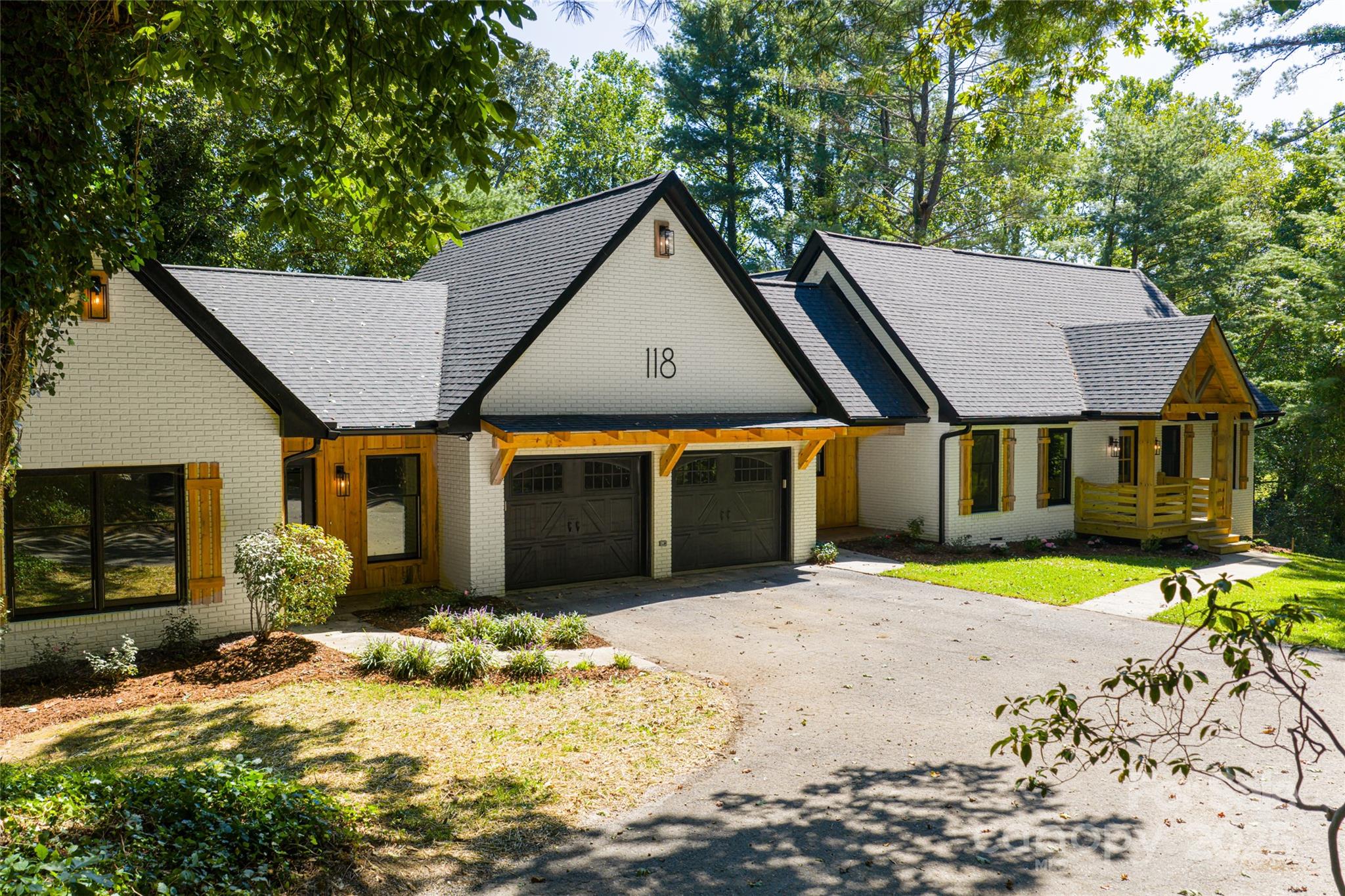 Modern mountain farmhouse on nearly two private acres, renovated for multigenerational living in the heart of Western North Carolina. If you’re searching for a fully renovated modern farmhouse with a guest suite, acreage, and mountain charm near Asheville and Hendersonville, welcome to 118 Rugby Forest Drive in Mills River, North Carolina. This four-bedroom, 3.5-bath home offers flexible living, privacy and proximity to everything that makes WNC special. Completely renovated in 2025, this mountain modern farmhouse blends luxury craftsmanship with flexible design on a 1.98-acre private lot with no HOA. Set amid wooded and pastoral views, this 3,539-square-foot home offers the rare combination of usable flat land, circular drive and multiple garage bays, ideal for boats, RVs or extra vehicles. Inside, the main residence impresses with vaulted ceilings, exposed wood beam accents, and poplar bark details that capture the natural beauty of the Blue Ridge Mountains. The open-concept living area centers around a brick fireplace and flows into a custom chef’s kitchen with a sprawling Silestone island, Samsung stainless steel appliances and designer cabinetry, ideal for entertaining or family gatherings. The spa-like primary suite features a luxury tiled bath with a walk-in shower, while additional bedrooms and a versatile loft offer flexibility for remote work, guests or creative spaces. A standout feature is the 822-square-foot second living quarters, connected via the two-car garage and ideal for multigenerational living, guest accommodations or a short-term rental. With its kitchen, bath and private entry options, it provides independence and convenience. Outdoor living abounds with generous decks and porches ideal for relaxing or entertaining. The wooded setting and open yard create a serene backdrop for gardening, recreation or simply enjoying mountain sunsets. Recent upgrades include a new roof, HVAC, plumbing and electrical systems, delivering modern comfort and peace of mind. Ideally lminutes from downtown Hendersonville, the Ecusta Trail, Asheville Regional Airport, AdventHealth Hospital and a variety of local breweries, wineries and top-rated schools, this property provides a balance of convenience, flexibility and natural beauty. Whether you’re seeking a multigenerational home, investment opportunity or a modern mountain retreat, 118 Rugby Forest Drive invites you to experience the best of Western North Carolina living.