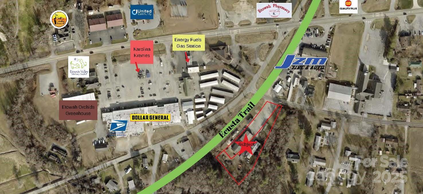 Prime Commercial Property in the Heart of Etowah – Trailside Opportunity on 1.49 Acres Unlock the potential of one of Etowah’s most sought-after commercial locations! Situated directly on the Ecusta Trail with an impressive 400 feet of trail frontage, this 1.49-acre property offers unmatched visibility and access in the center of downtown Etowah, NC — perfectly positioned between Hendersonville and Brevard. The site features two expansive metal buildings — one 5,000 sq ft and one 3,000 sq ft — providing a total of 8,000 square feet of versatile space with a large paved parking area making it ideal for a wide range of ventures. Whether you envision a brewery taproom, bike shop, café, outdoor gear hub, or food truck park, this property is a blank canvas primed for a trail-centric business. With the Ecusta Trail set to become one of Western North Carolina’s premier multi-use greenways, this location offers a rare opportunity to tap into both local traffic and growing tourism.