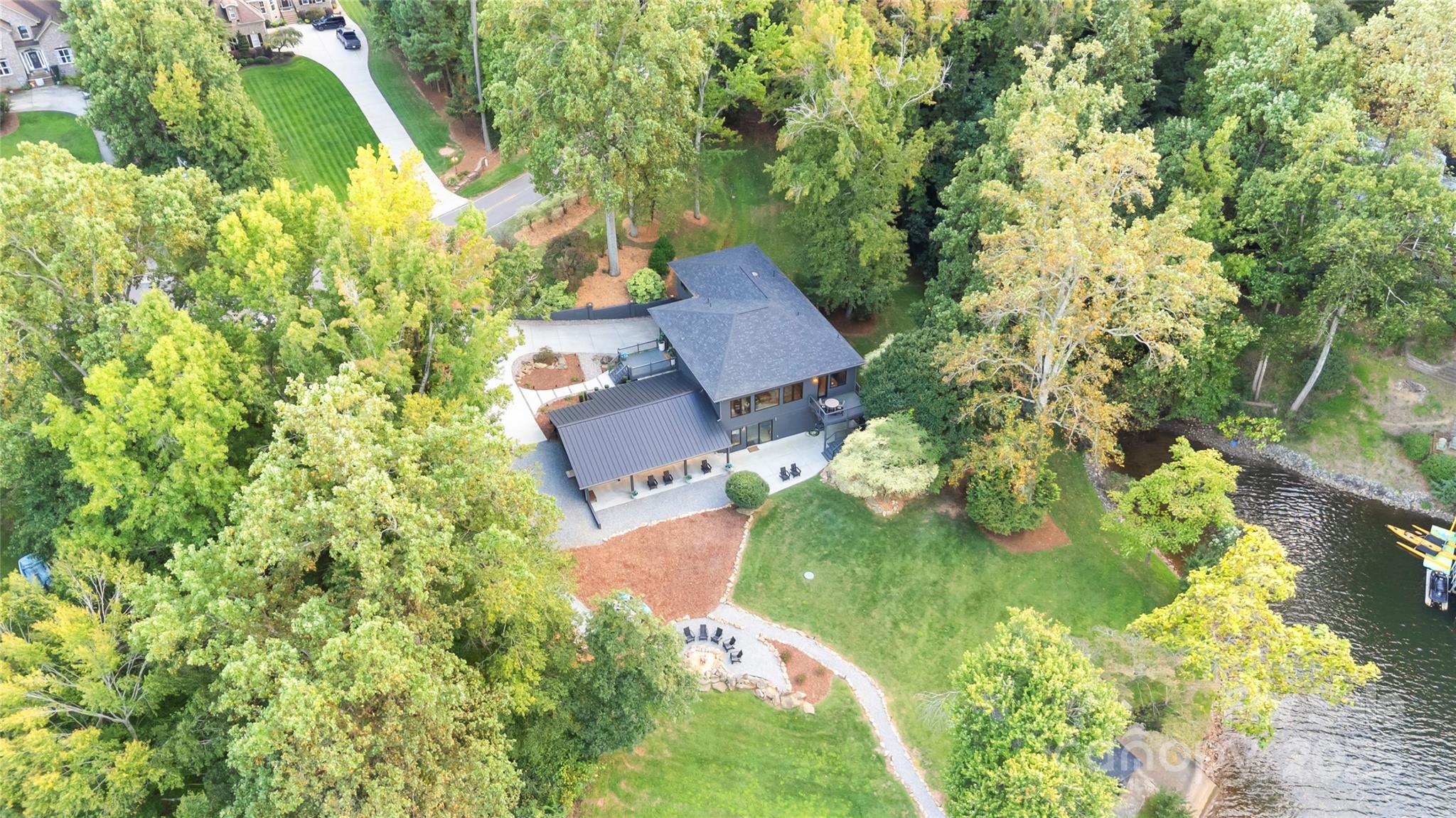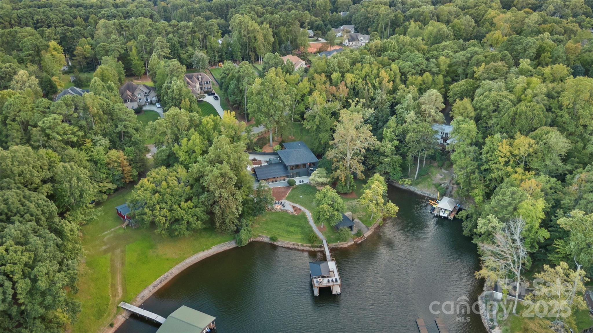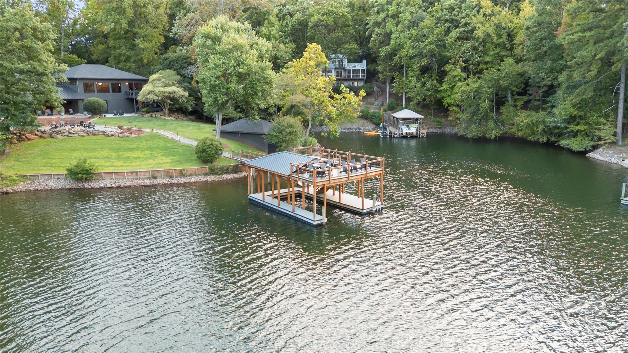 As you wind down Indian Trail, the scenery feels more like a mountain escape than a lakeside road. At the end of the drive, you’ll find your private Lake Norman retreat where luxury, privacy, and natural beauty unite. Set on nearly one acre with over 270 feet of pristine shoreline, this modern masterpiece offers over 4,650/sqft of exquisitely designed living space. Every detail has been thoughtfully curated for both everyday comfort and grand entertaining. The expansive open floor plan features four spacious bedrooms, each with a private ensuite bath and walk-in closet, plus two additional half baths. The primary retreat is a true sanctuary, encompassing a spa-inspired bath with a stone soaking tub, a large walk-in shower, private sauna, fitness area, and oversized closet. At the heart of the home, the gourmet kitchen is equipped with top-tier appliances, a large island, and generous counter space, seamlessly flowing into the dining and living areas. Soaring ceilings, natural light, and 8-inch white oak hardwood floors enhance the warmth and elegance throughout. A Russound surround sound system sets the mood in many areas. Step outside to 1,295/sqft of covered outdoor living space, complete with a fully equipped kitchen featuring a grill, sink, wine fridge, and built-in bar seating for ten. Multiple seating and lounge areas make this terrace an entertainer’s dream that is perfect for al fresco dining, hosting friends, or savoring quiet mornings with secluded lake views. The lifestyle extends beyond the home with a double-decker dock offering a covered boat slip, ample space for sunbathing or gathering waterside. Enjoy a private, deep-water cove ideal for swimming, boating, and paddle boarding, plus a rustic fire pit area, boathouse, and ramp. Offered fully furnished, this turnkey property has also been a highly sought-after short-term rental, boasting over 45 five-star reviews. Whether you envision it as your primary residence, a lakeside getaway, or an investment, this rare retreat delivers unmatched luxury and lasting memories. Come take a look today!