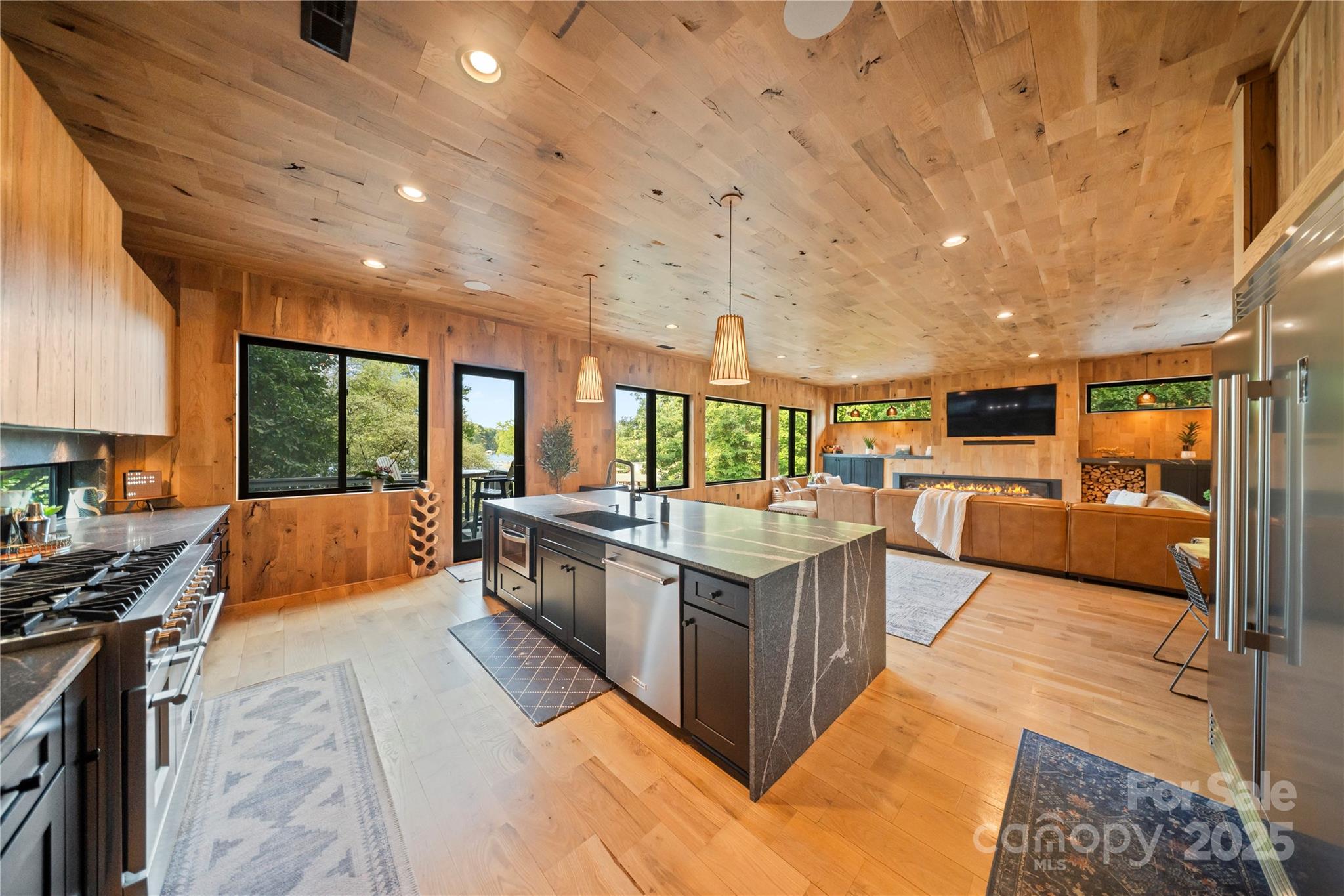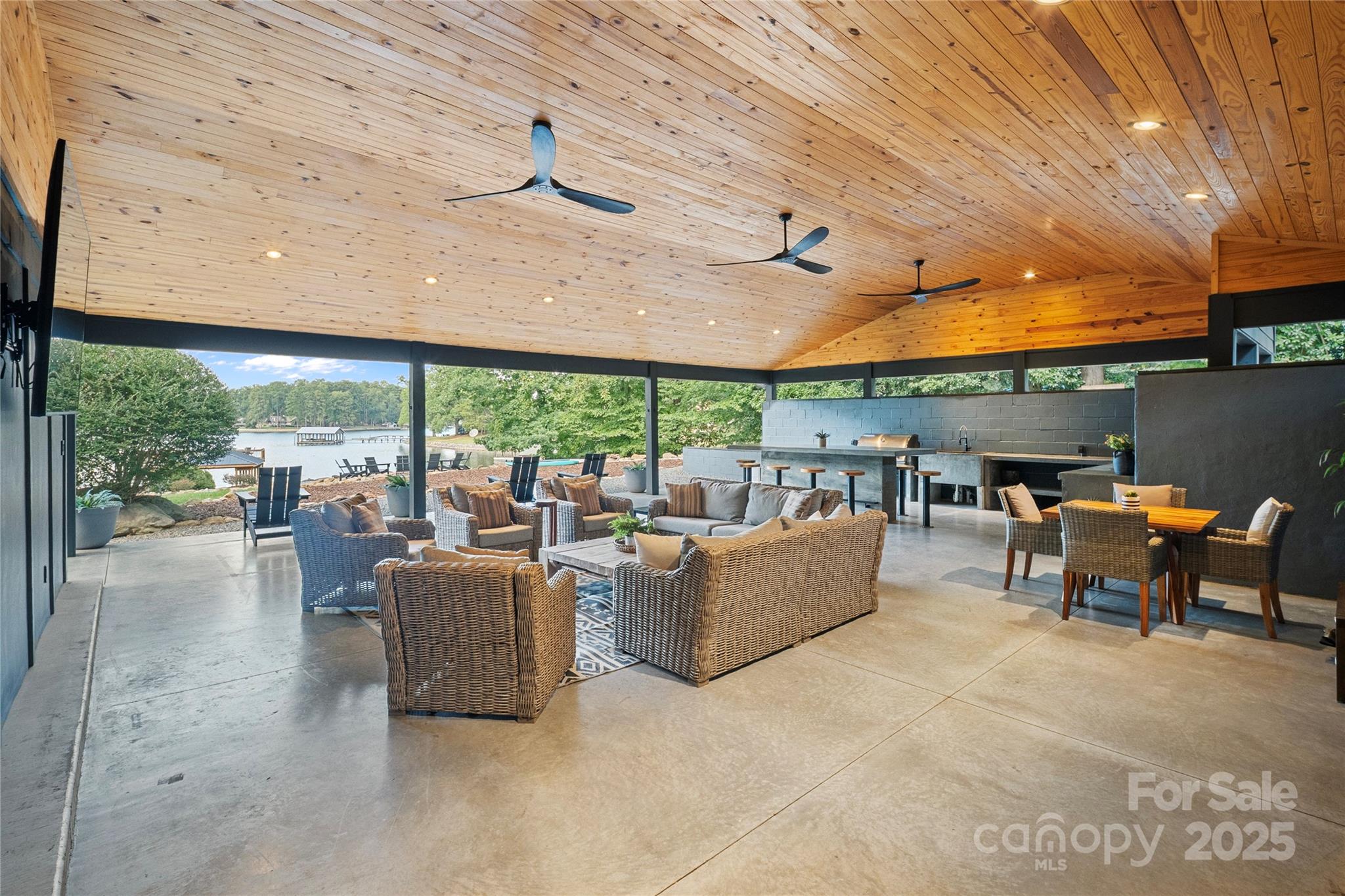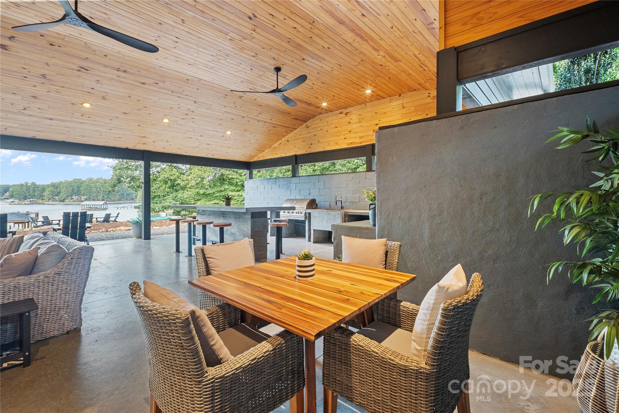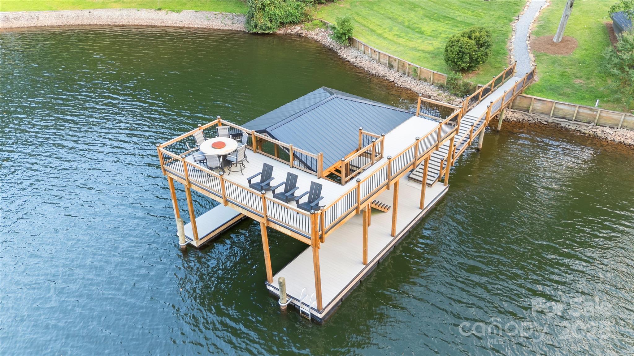 As you wind down Indian Trail, the scenery feels more like a mountain escape than a lakeside road. At the end of the drive, you’ll find your private Lake Norman retreat where luxury, privacy, and natural beauty unite. Set on nearly one acre with over 270 feet of pristine shoreline, this modern masterpiece offers over 4,650/sqft of exquisitely designed living space. Every detail has been thoughtfully curated for both everyday comfort and grand entertaining. The expansive open floor plan features four spacious bedrooms, each with a private ensuite bath and walk-in closet, plus two additional half baths. The primary retreat is a true sanctuary, encompassing a spa-inspired bath with a stone soaking tub, a large walk-in shower, private sauna, fitness area, and oversized closet. At the heart of the home, the gourmet kitchen is equipped with top-tier appliances, a large island, and generous counter space, seamlessly flowing into the dining and living areas. Soaring ceilings, natural light, and 8-inch white oak hardwood floors enhance the warmth and elegance throughout. A Russound surround sound system sets the mood in many areas. Step outside to 1,295/sqft of covered outdoor living space, complete with a fully equipped kitchen featuring a grill, sink, wine fridge, and built-in bar seating for ten. Multiple seating and lounge areas make this terrace an entertainer’s dream that is perfect for al fresco dining, hosting friends, or savoring quiet mornings with secluded lake views. The lifestyle extends beyond the home with a double-decker dock offering a covered boat slip, ample space for sunbathing or gathering waterside. Enjoy a private, deep-water cove ideal for swimming, boating, and paddle boarding, plus a rustic fire pit area, boathouse, and ramp. Offered fully furnished, this turnkey property has also been a highly sought-after short-term rental, boasting over 45 five-star reviews. Whether you envision it as your primary residence, a lakeside getaway, or an investment, this rare retreat delivers unmatched luxury and lasting memories. Come take a look today!