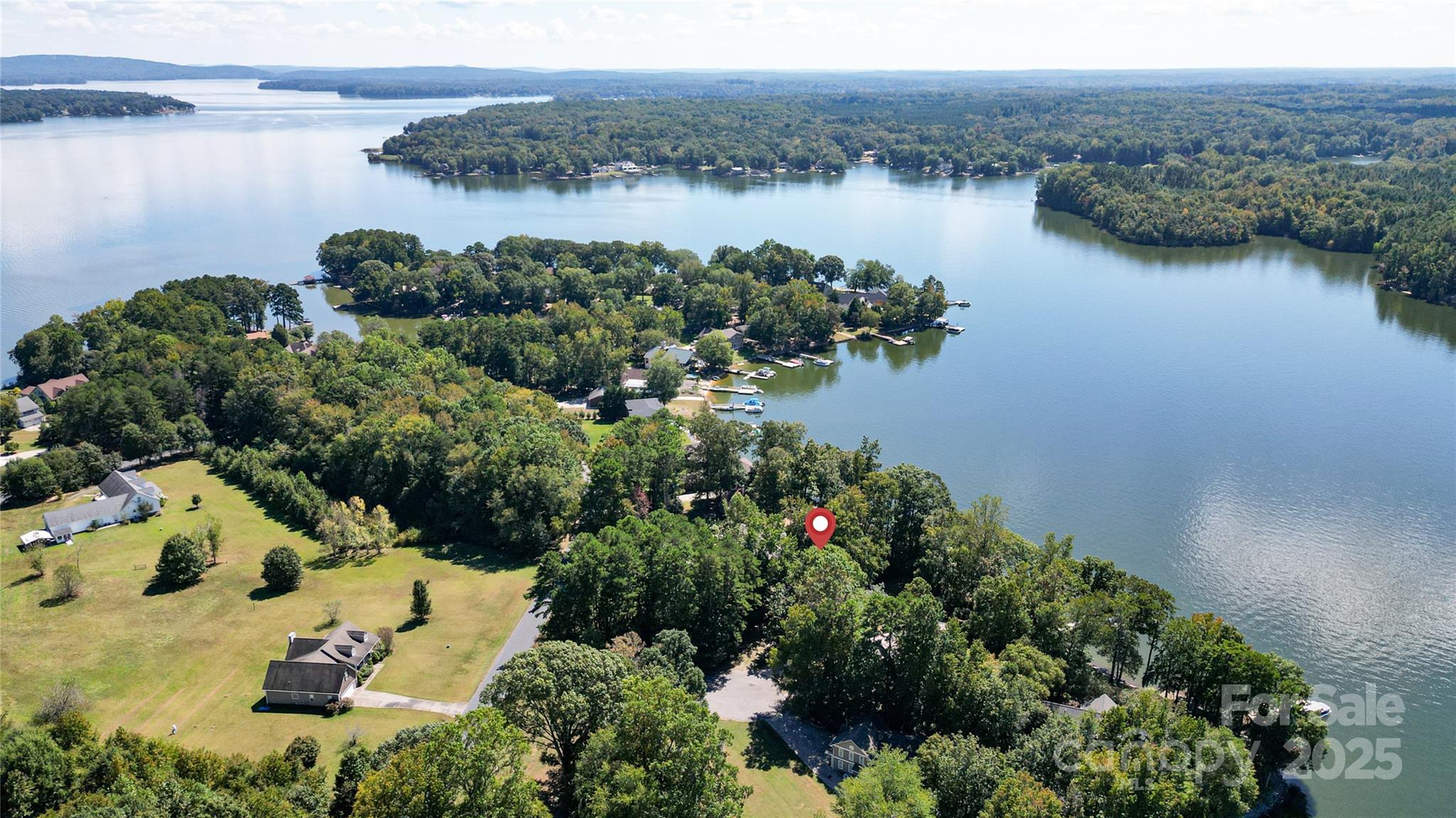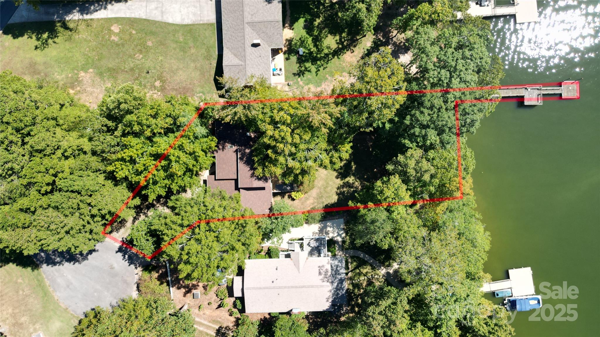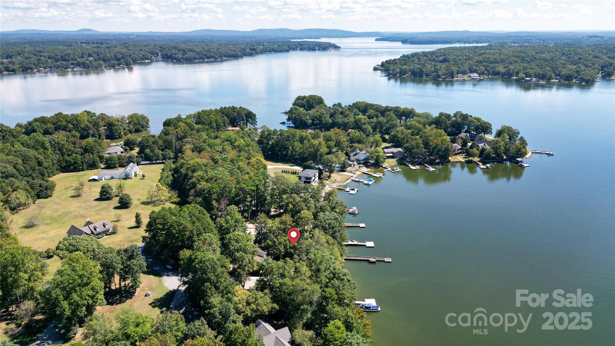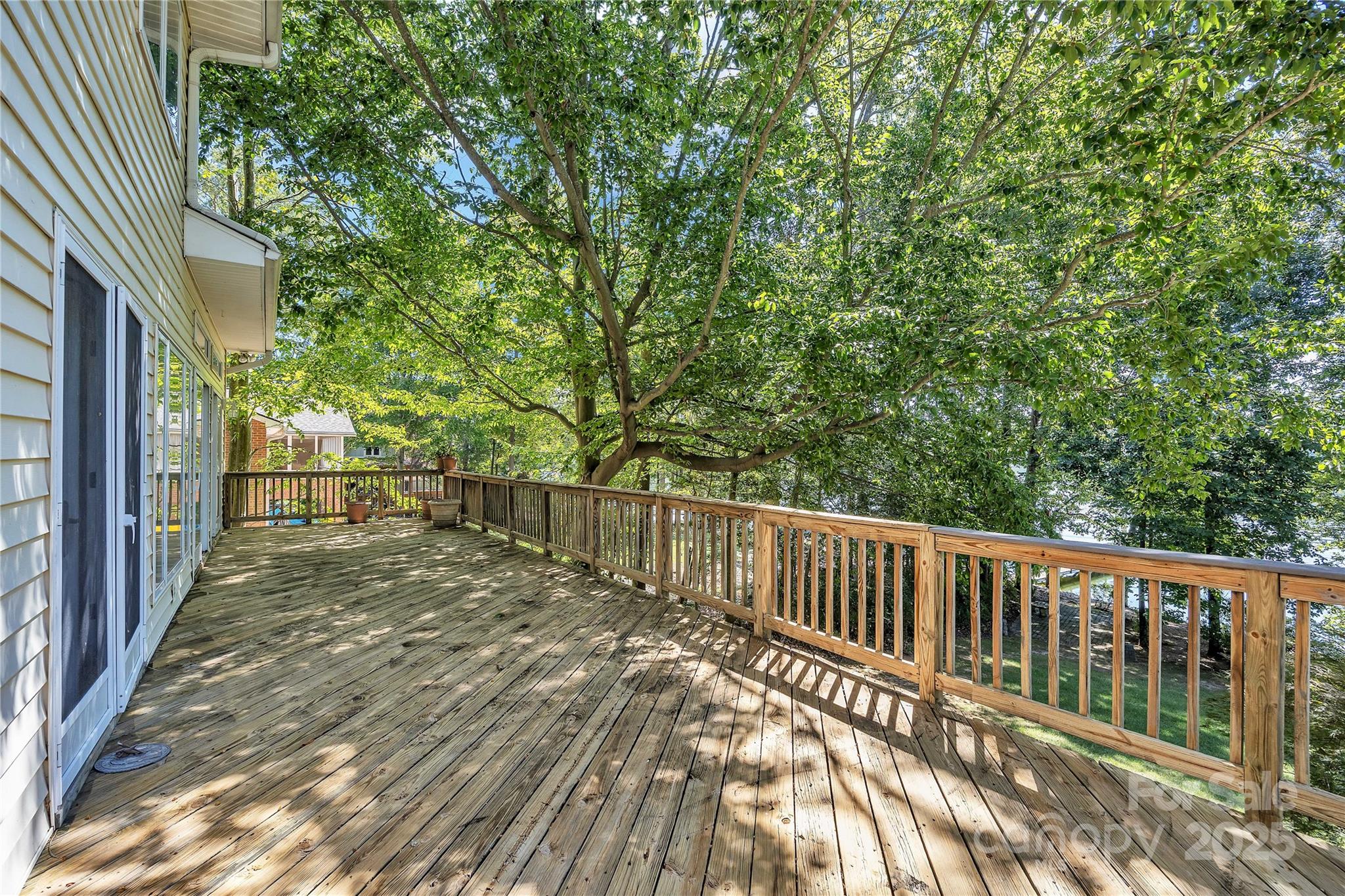 Waterfront with a long pier and exceptional water views! Tucked in an adorable cul-de-sac within popular Anchor Downs, this home is designed for lake living. A large deck overlooks the water, while a screened-in side porch and covered lower patio provide endless outdoor enjoyment. Newer stairs lead from the tall deck to the patio below. Inside, an open floor plan features a kitchen overlooking the great room, complete with a striking stone fireplace and exquisite built-ins. The dining area sits perfectly between the kitchen and great room — all enjoying expansive lake views. Hardwood flooring graces the main level, which includes two ensuite bedrooms. Downstairs, find two more bedrooms with a Jack & Jill bath, plus a second living area with fireplace and wet bar. Outdoor living, indoor charm, and lakefront lifestyle all in one!