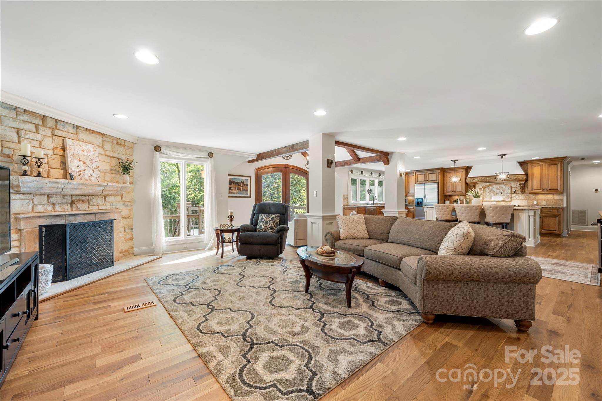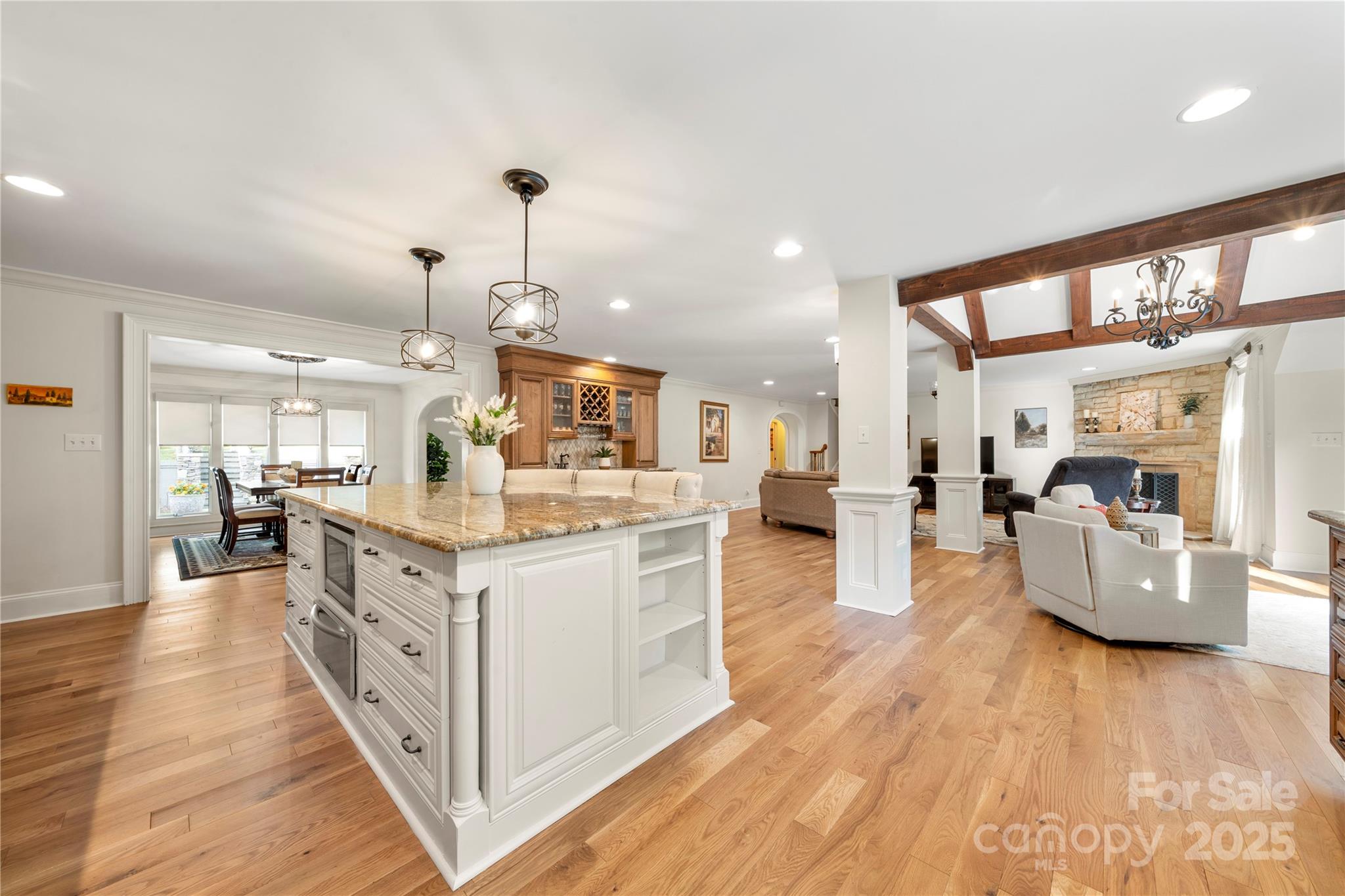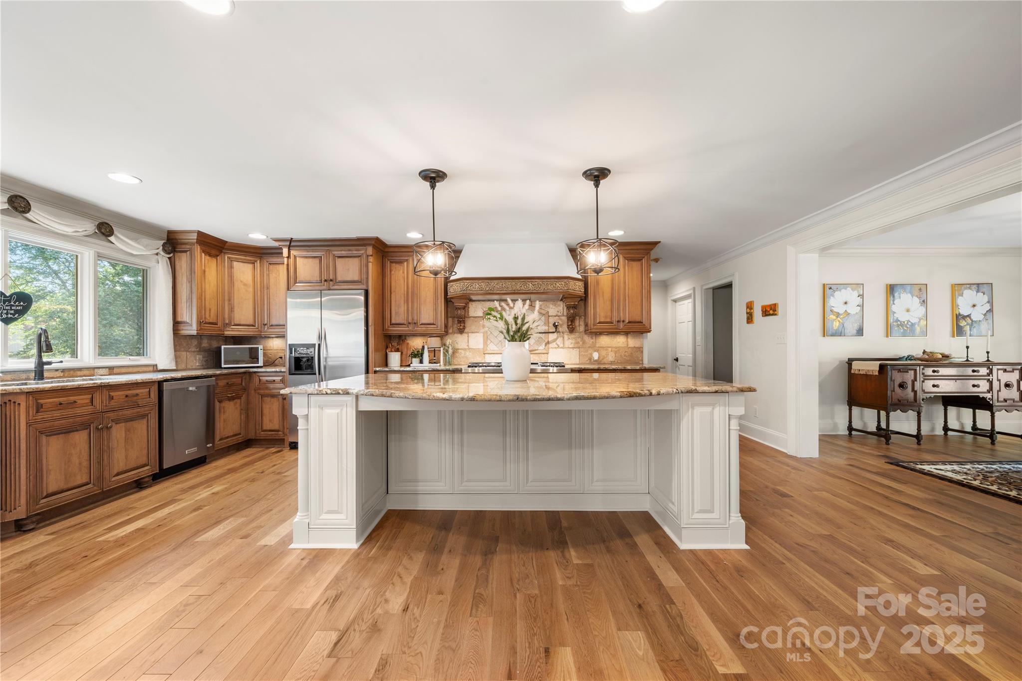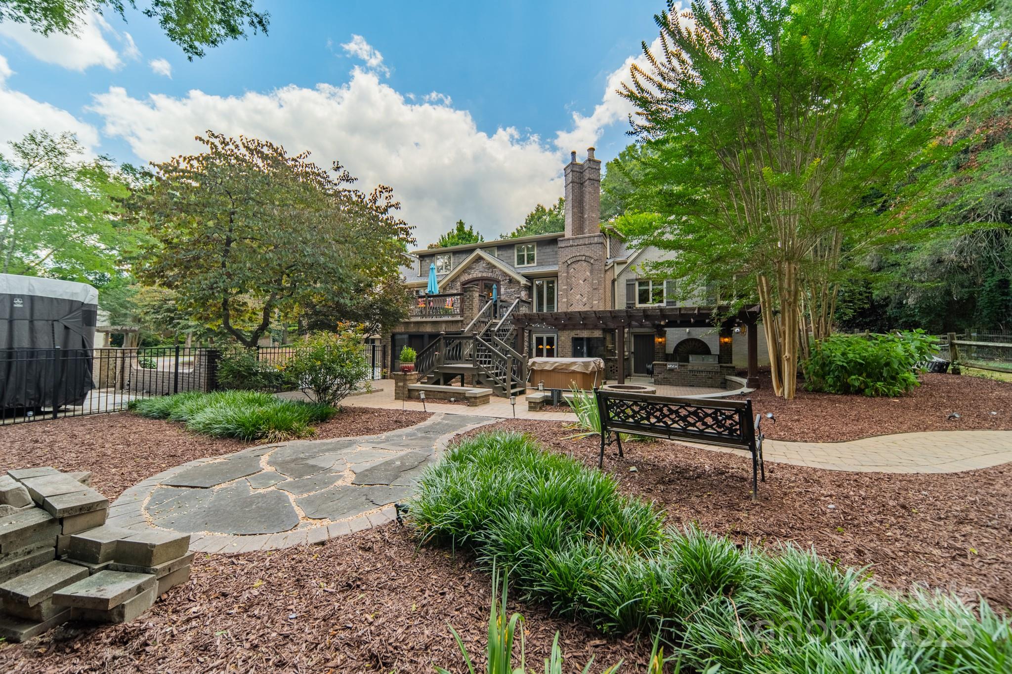 Seller recently invested over 60K in updates including new paint, flooring, lighting & carpets! Nestled on almost an acre, this home has features that are sure to impress. Step inside & be greeted by NEW hardwood flooring (7/25), crown moldings & craftsmanship throughout. Great room features a fireplace, wet bar & vaulted breakfast area. The kitchen has stainless steel appliances, granite counters, dual dishwashers & island that was just repainted. Main level owner's suite includes vaulted ceiling, wine/coffee bar, custom walk-in closet, washer/dryer & ensuite bath. Ensuite vanities and shelving was just repainted in July. Continue to the basement which features an office, laundry, full bath & rec room w/fireplace & wet bar! Relax on the glass enclosed porch or deck. The fenced in yard features a patio w/pergola, grilling station & firepit. With proximity to Ballantyne (~6 mi), South Park (~3 mi) & Carmel Country Club (~1 mi) this home has it all! Roof replaced in 2023.