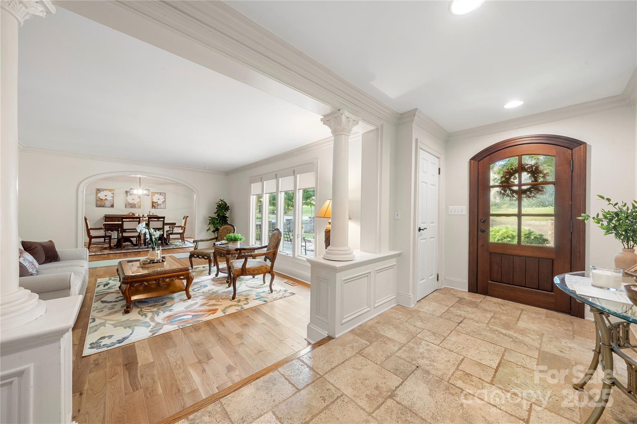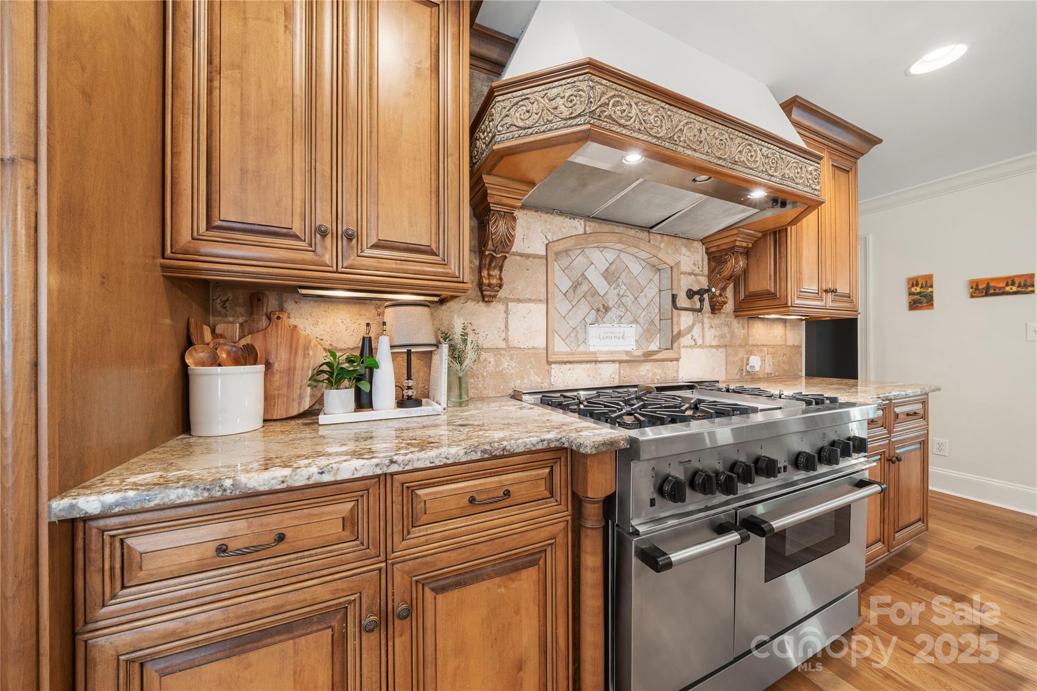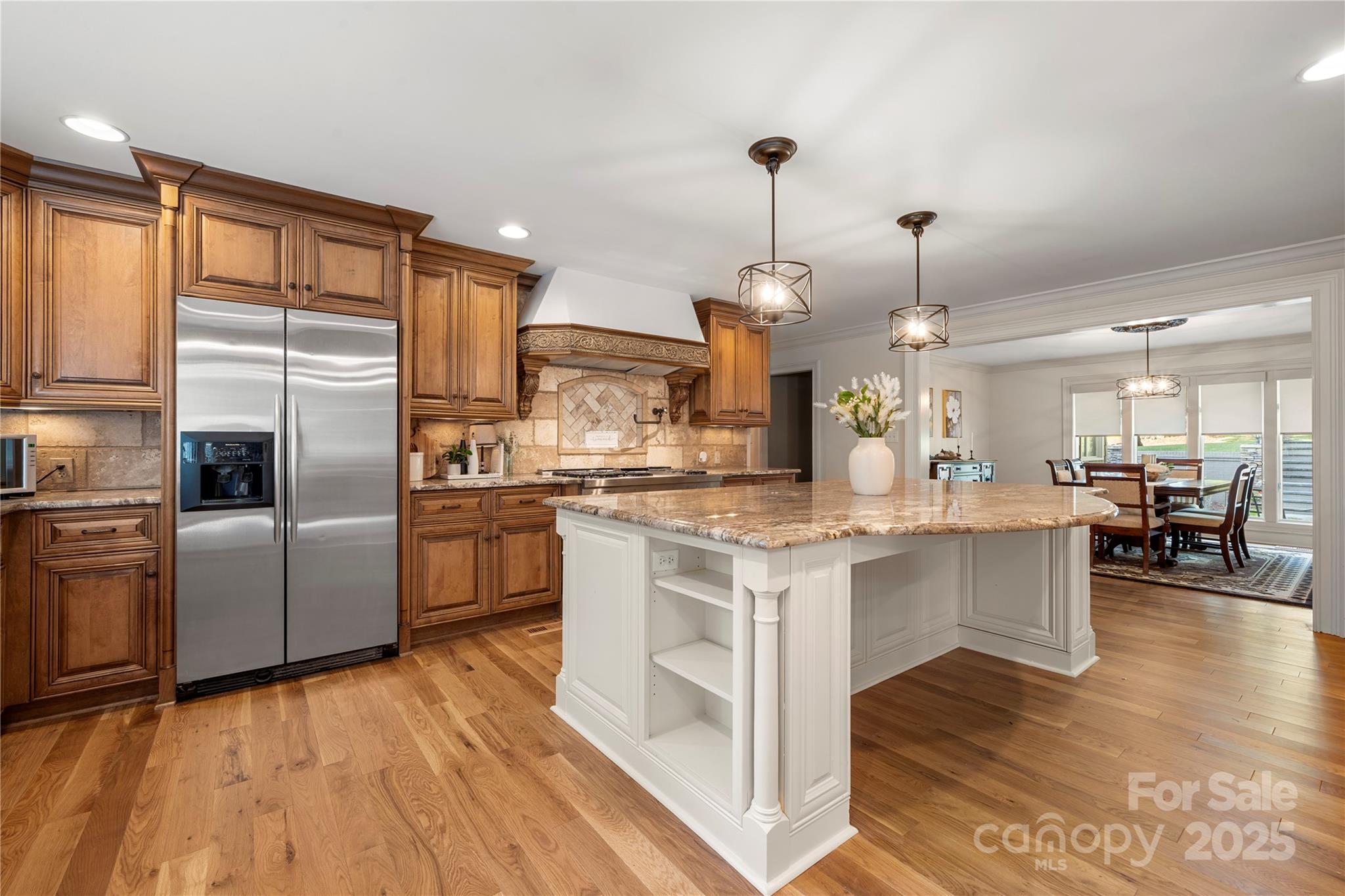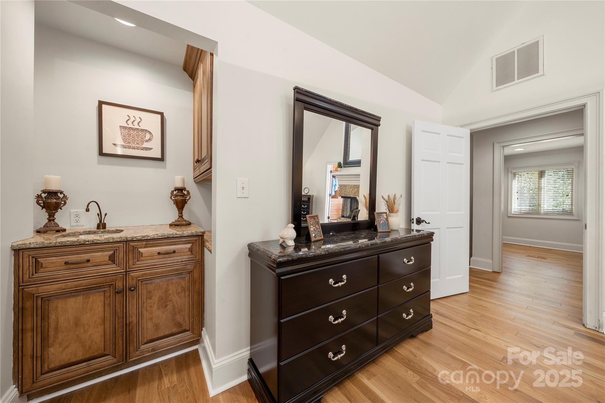 Seller recently invested over 60K in updates including new paint, flooring, lighting & carpets! Nestled on almost an acre, this home has features that are sure to impress. Step inside & be greeted by NEW hardwood flooring (7/25), crown moldings & craftsmanship throughout. Great room features a fireplace, wet bar & vaulted breakfast area. The kitchen has stainless steel appliances, granite counters, dual dishwashers & island that was just repainted. Main level owner's suite includes vaulted ceiling, wine/coffee bar, custom walk-in closet, washer/dryer & ensuite bath. Ensuite vanities and shelving was just repainted in July. Continue to the basement which features an office, laundry, full bath & rec room w/fireplace & wet bar! Relax on the glass enclosed porch or deck. The fenced in yard features a patio w/pergola, grilling station & firepit. With proximity to Ballantyne (~6 mi), South Park (~3 mi) & Carmel Country Club (~1 mi) this home has it all! Roof replaced in 2023.