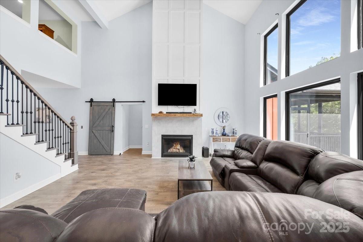 PRICE DRASTICALLY REDUCED BY $75K!! SELLERS ARE READY FOR AN OFFER TO MOVE BEFORE WINTER! in 2021, this stunning lakefront estate blends modern technology, timeless design, and equestrian charm. With double power allotment and fiber internet, the home powers over 150 smart devices for seamless automation of lighting, security, and entertainment. Inside, wood laminate flooring flows throughout. The home office includes built-in bookcases. The gourmet kitchen features smart stainless appliances, quartz countertops, and a large island. The open great room offers rustic beams, a gas fireplace, and lake views. The primary suite has a fireplace, jetted tub, walk-in shower, dual vanities, and screened deck. With five bedrooms, three full baths, and two half baths, there’s space for family and guests. The basement includes a full in-law suite with kitchen and bath, elevator, game room, bar, theater, and outdoor kitchen. A hidden, reinforced safe room adds security. A property this unique won't last long, schedule your private showing today!