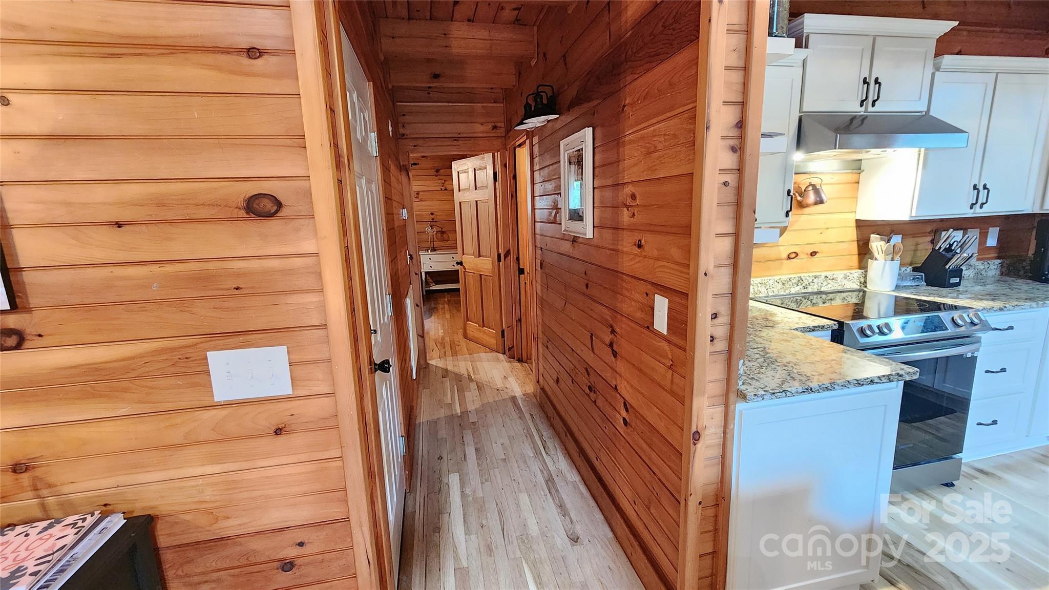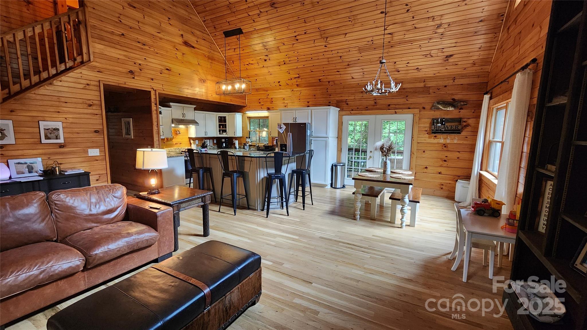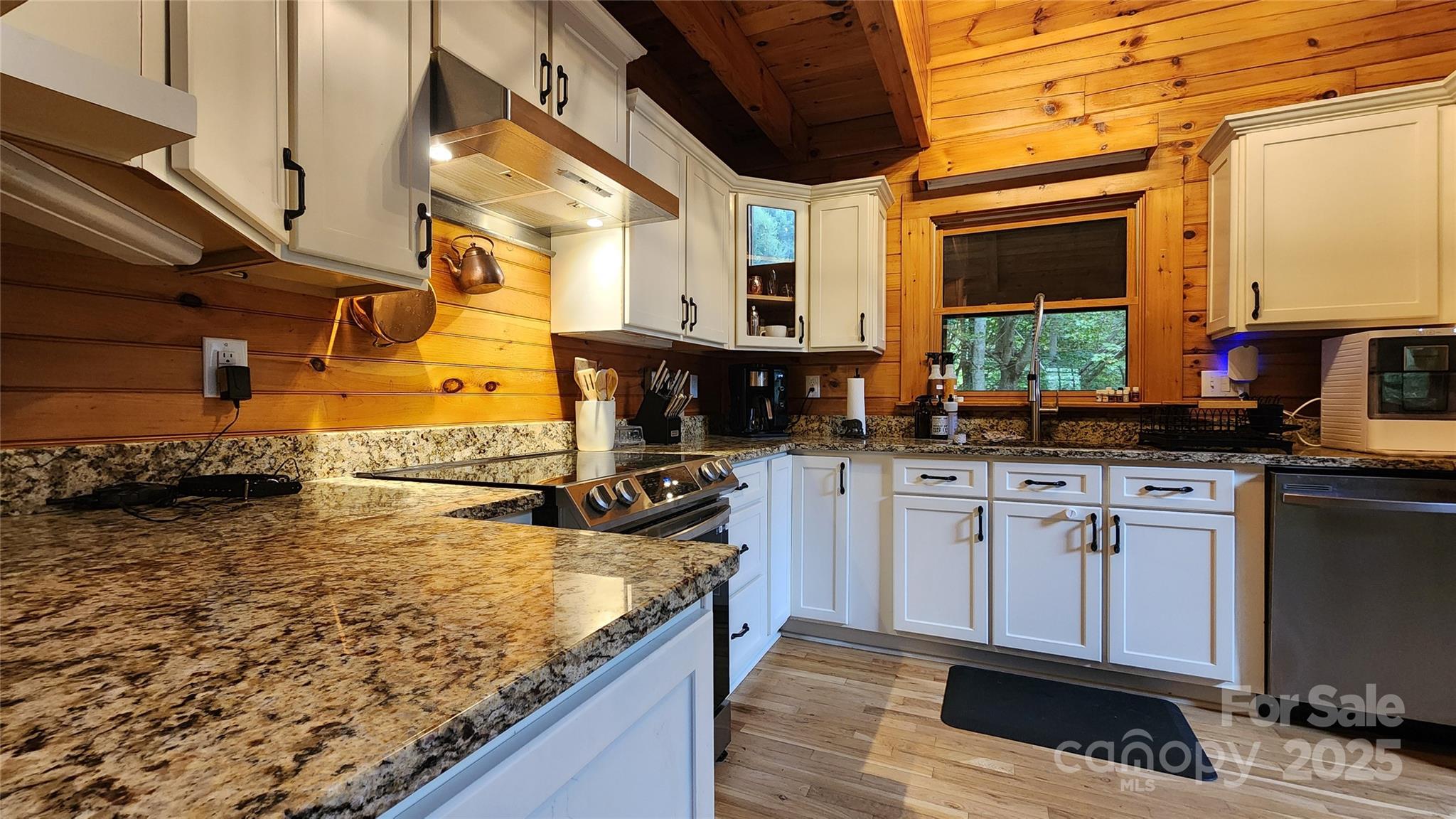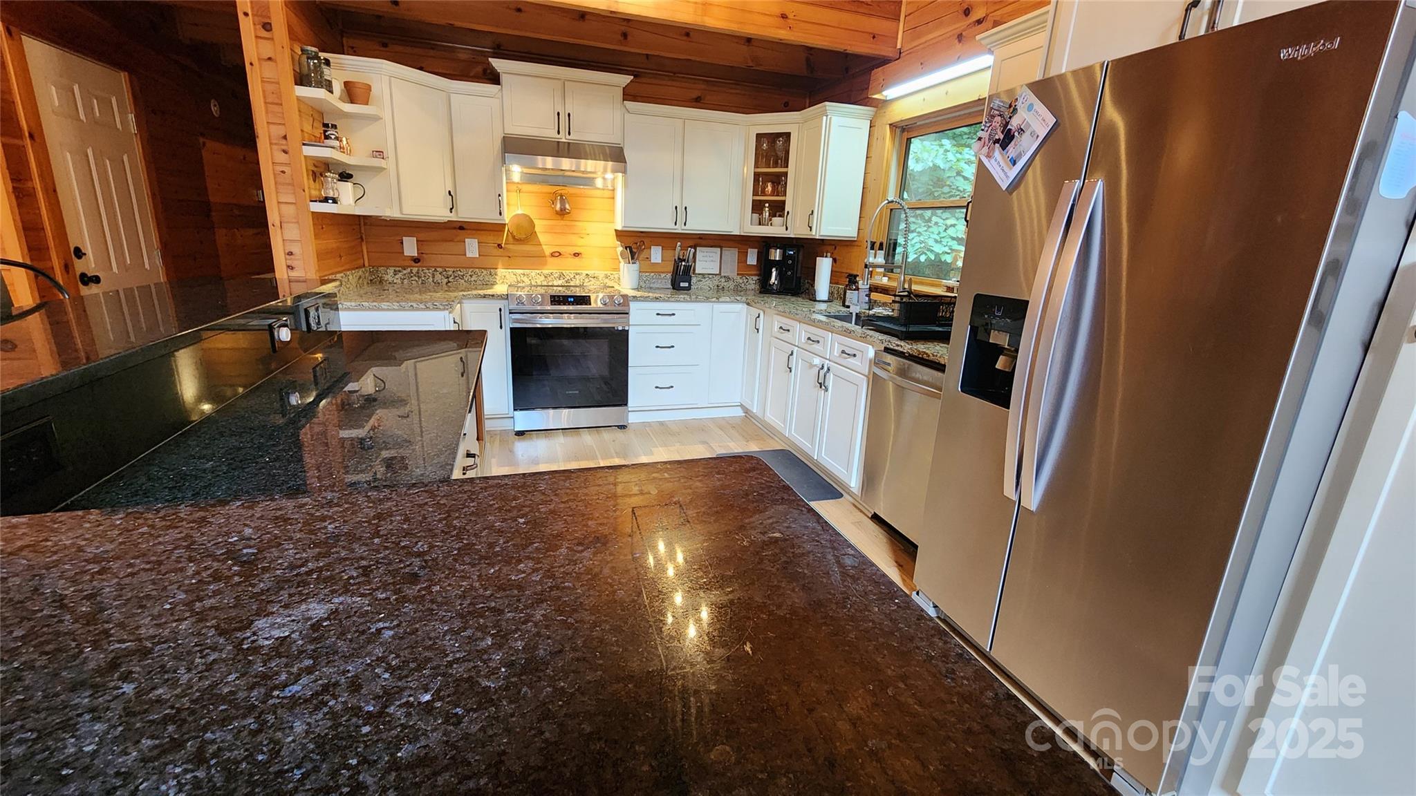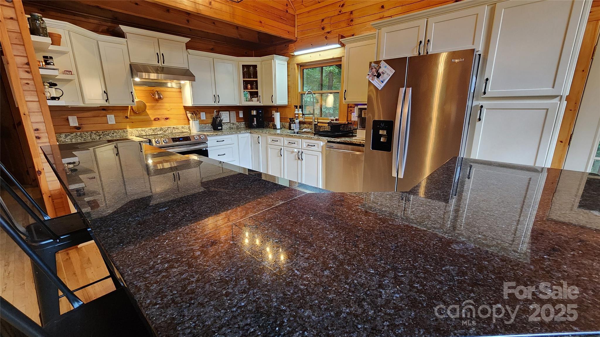 Nestled along the serene banks of Gaddis Branch, this well-maintained log home offers the quintessential mountain retreat. The interior features open floor plan, vaulted ceilings, elegant granite countertops, stainless steel appliances, a luxurious walk-in shower accompanied by a soaking tub in the primary bedroom, and a cozy wood-burning fireplace, blending modern comfort with rustic charm. The home also boasts a two-car basement garage and a screened-in porch, perfect for enjoying the soothing sounds of the creek. Conveniently located in Maggie Valley close to Waynesville, Cherokee, Harrah’s Casino, and Asheville, this property combines natural beauty with contemporary luxury, making it an ideal base for exploring the region. Lower level features a bonus room with ensuite full bath. Lower level space has multiple uses!