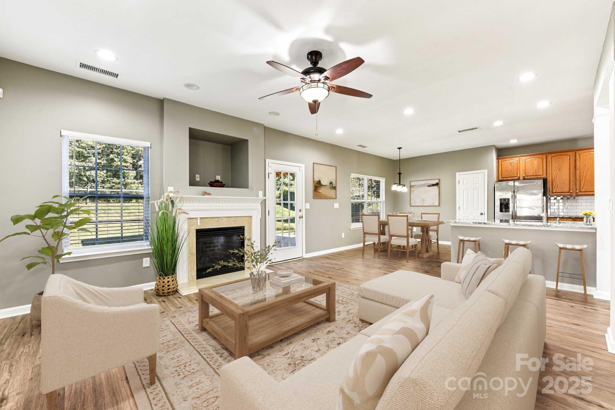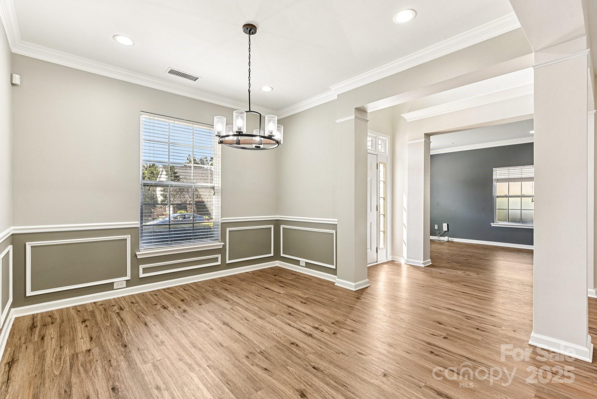 Fabulous, move-in ready home in a great Matthews location! Spacious rooms, beautiful kitchen with granite countertops, pantry, breakfast area, and a gas stove. All appliances stay with the home including the washer and dryer. Fresh, touched-up painting is done, and vinyl plank flooring is installed throughout the home, except in the bathrooms. An open foyer, flexible living space, formal dining room, one bedroom, laundry, and a full bath are all downstairs, and five spacious bedrooms and two baths upstairs. Large primary suite with a huge walk-in closet. The central air unit is almost 6 years old, and the gas furnace is about 2 years old. Driveway has been extended by three feet on each side. Enjoy the fabulous outdoor space with a covered gazebo and extended patio in the fully fenced backyard. The property is conveniently located just off Independence Blvd, behind the Windsor Square plaza, and is close to numerous shopping and dining options.