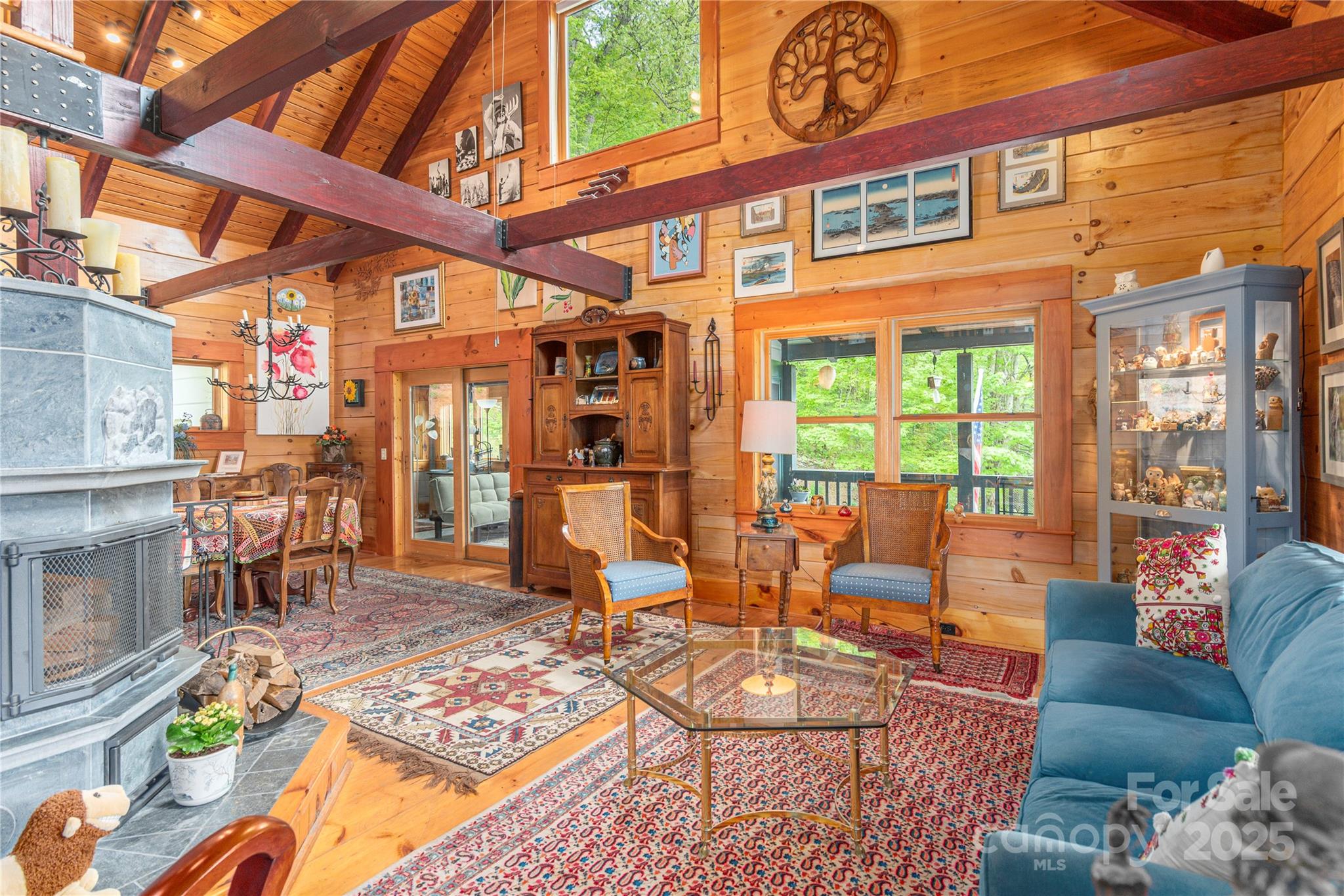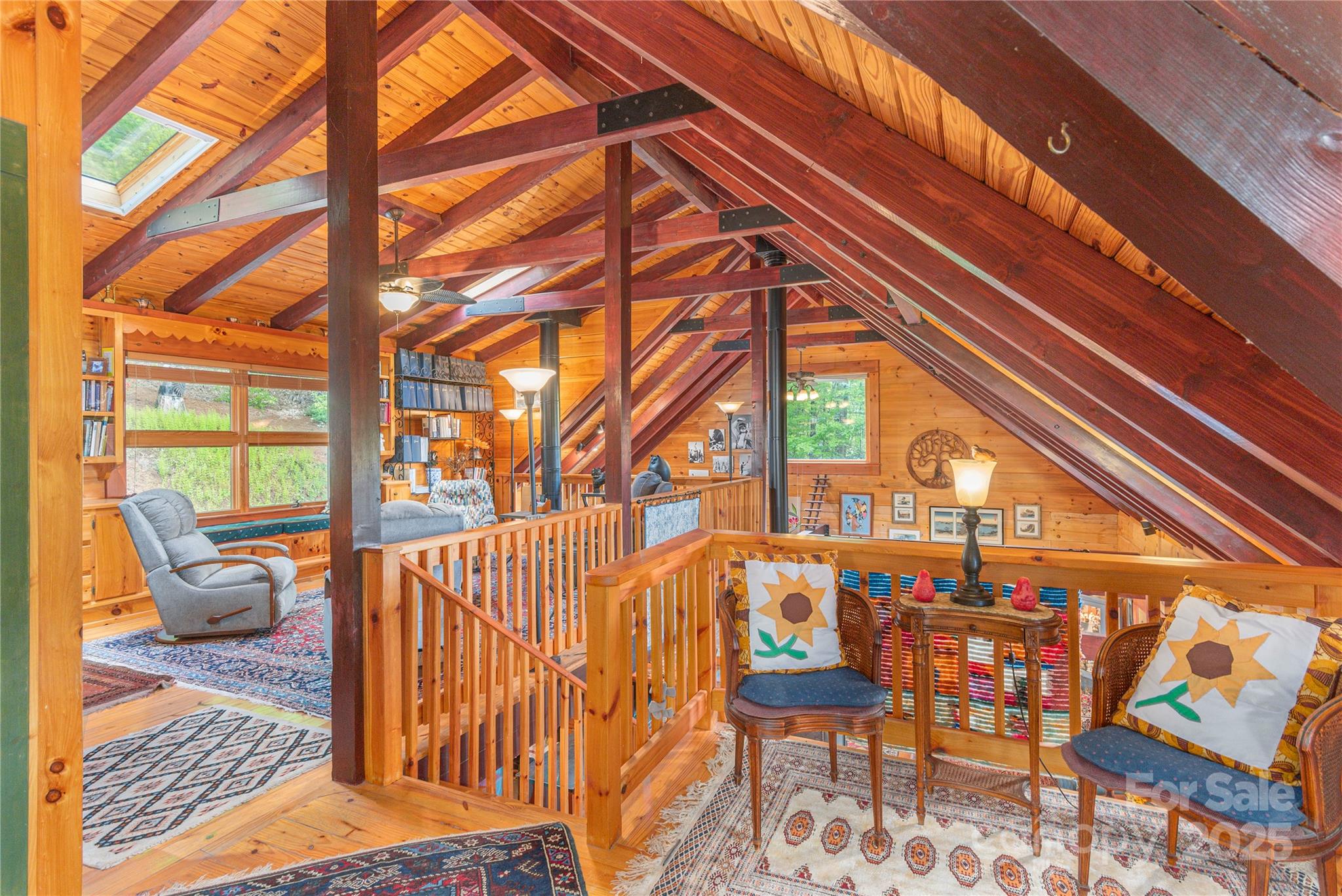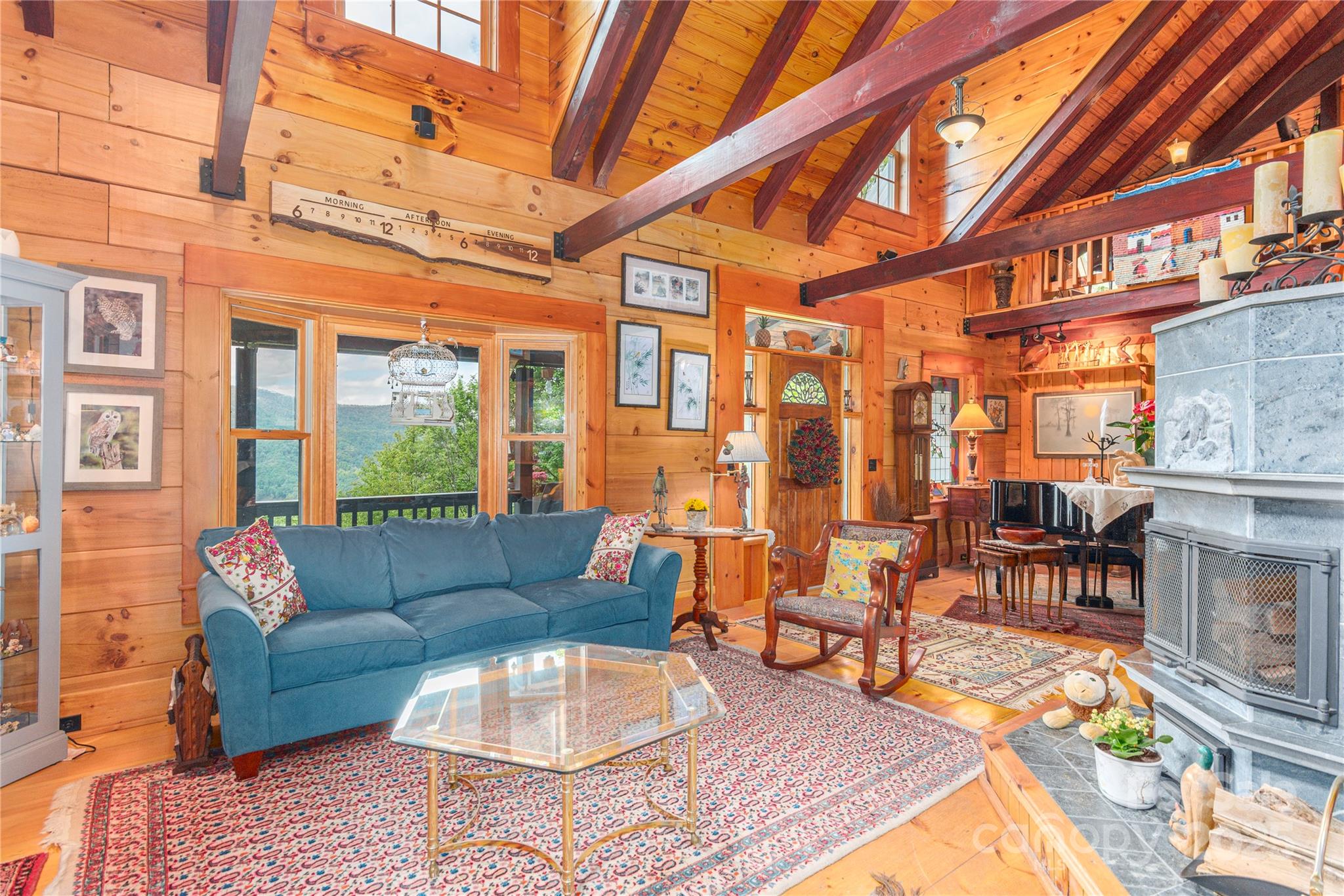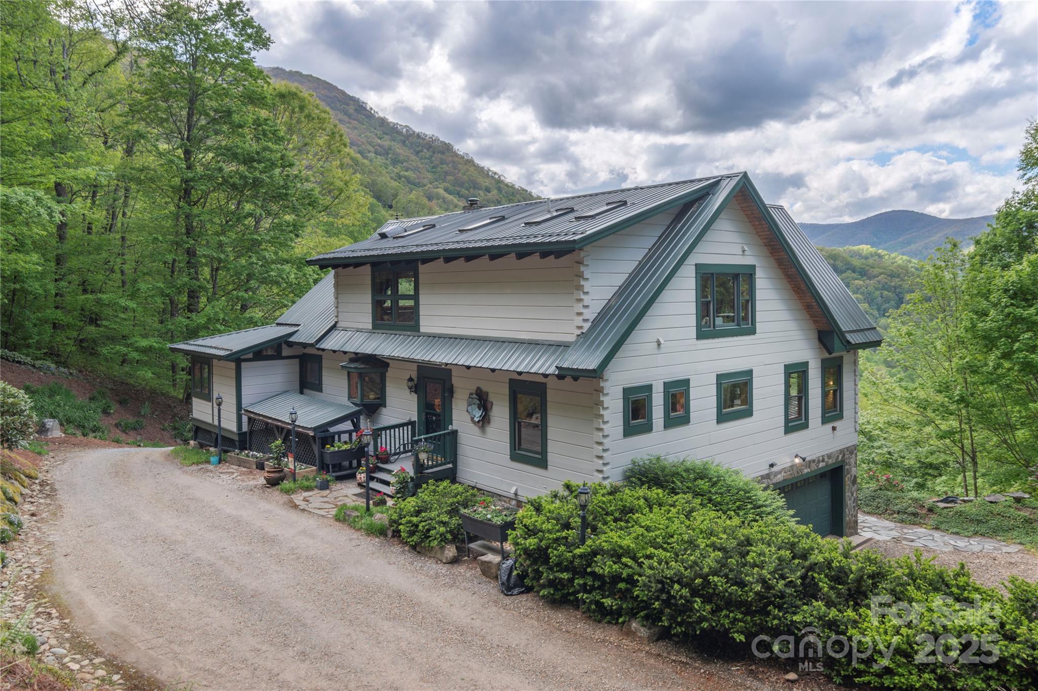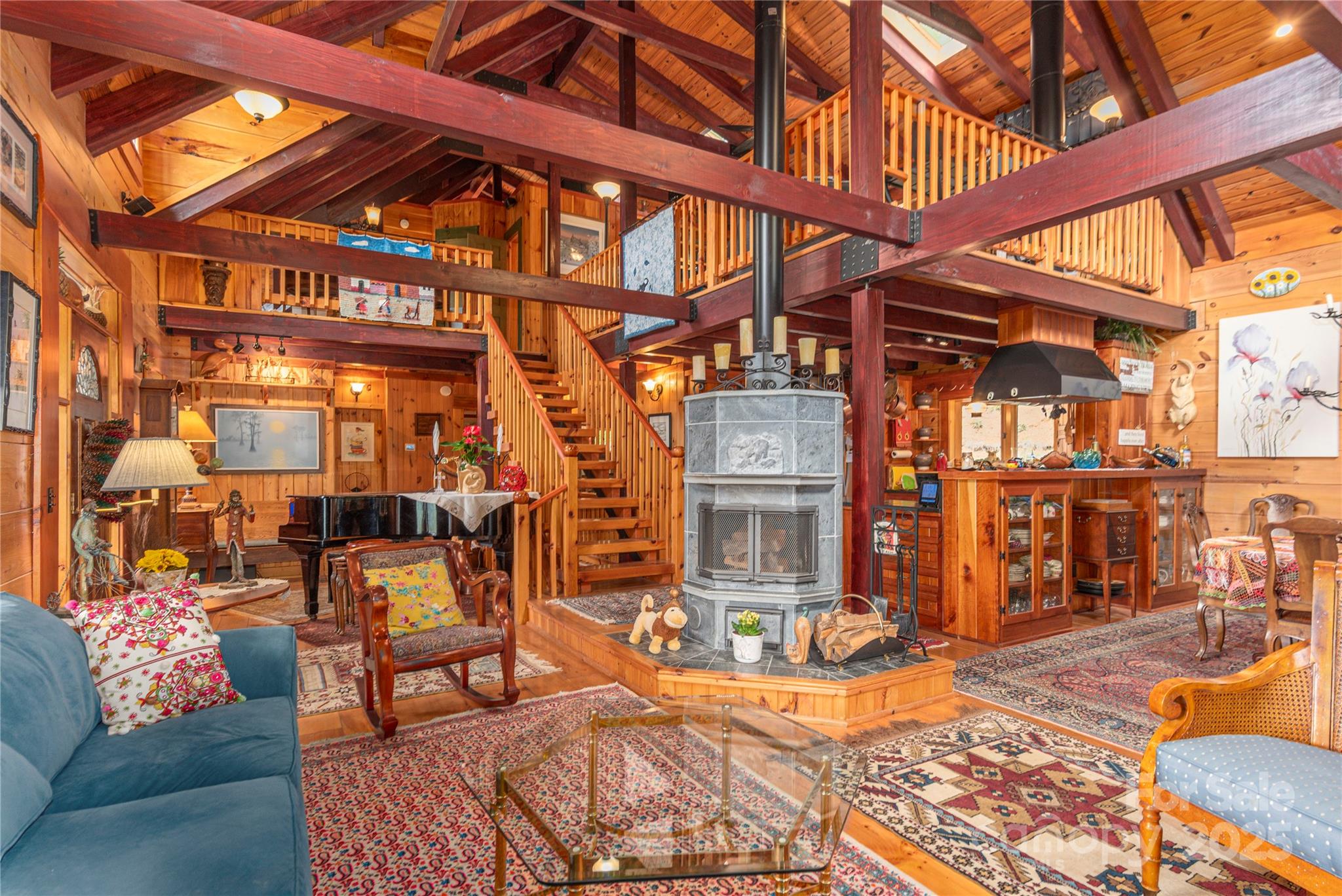 This custom designed log home situated on 0ver 10 acres located in the Hemphill area of Waynesville NC features 3 Beds 3 .5 baths, 2 main bedrooms, Vaulted ceilings in living room, dining area and upstairs bedroom, cork and wood flooring, long range views, High Efficiency (17 Seer) Heat Pump system(New Oct. 2025), Tullivi (Finland)Soap Stone wood heater, Chefs Kitchen, Viking gas Oven/Range, 2 sinks, Soap Stone Counter tops, Trex Deck, Enclosed sun porch, ATV trail on the property, large pantry room with dishwasher and a second kitchen sink. Mature landscaping and very little grass to mow! 2 car garage in basement, drive up main level access. This private retreat is just waiting on a new owner!!