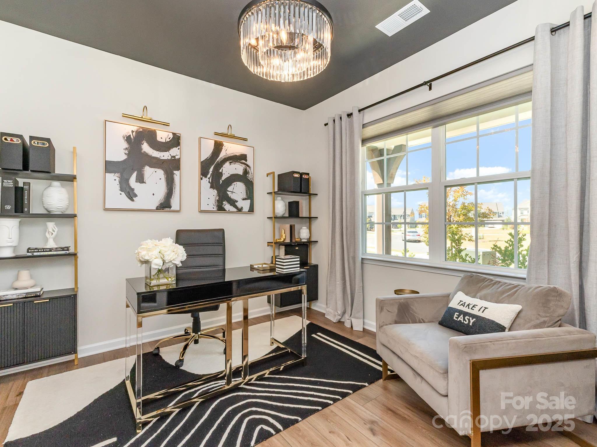 Nestled in the coveted Elizabeth Subdivision of Fort Mill, this 2024-built home exudes a sophisticated blend of modern elegance and meticulously curated design upgrades. Set on a premium lot with breathtaking horizon views, the home benefits from additional privacy with an HOA-maintained lot beside it. Inside, every detail has been thoughtfully enhanced, starting with the gourmet kitchen—equipped with a professional-grade gas cooktop, an oversized farm sink and a striking gold faucet. The formal dining room, graced by an upgraded chandelier and built-ins for a wet bar, is perfect for hosting elegant dinners, while the expansive living room boasts intricate wall paneling, lighting, and a refined ambiance. A set of French doors leads to a tranquil home office, complete with an upgraded chandelier and wall lighting that adds warmth and sophistication. The home’s staircase, featuring sleek metal rod railings and luxurious LVP steps. Upstairs, the primary suite and four generously-sized bedrooms offer stunning views, with luxurious finishes that elevate each space. Additional highlights include an upgraded vanity in the guest half-bath, epoxy flooring and freshly painted walls in the garage, and a smart home system powered by Google. Blinds and custom window treatments throughout enhance the home’s polished aesthetic. The exterior boasts classic shutters, stone accents, and artful landscaping, with front garden lighting that beautifully illuminates the entry. Future residents will also enjoy the upcoming amenities in the Elizabeth Subdivision: pool and cabana, fitness center, park, playground, pickleball court, trail and bocce ball. With its unparalleled design and premium features, this home is truly a masterpiece—better than new in every sense.