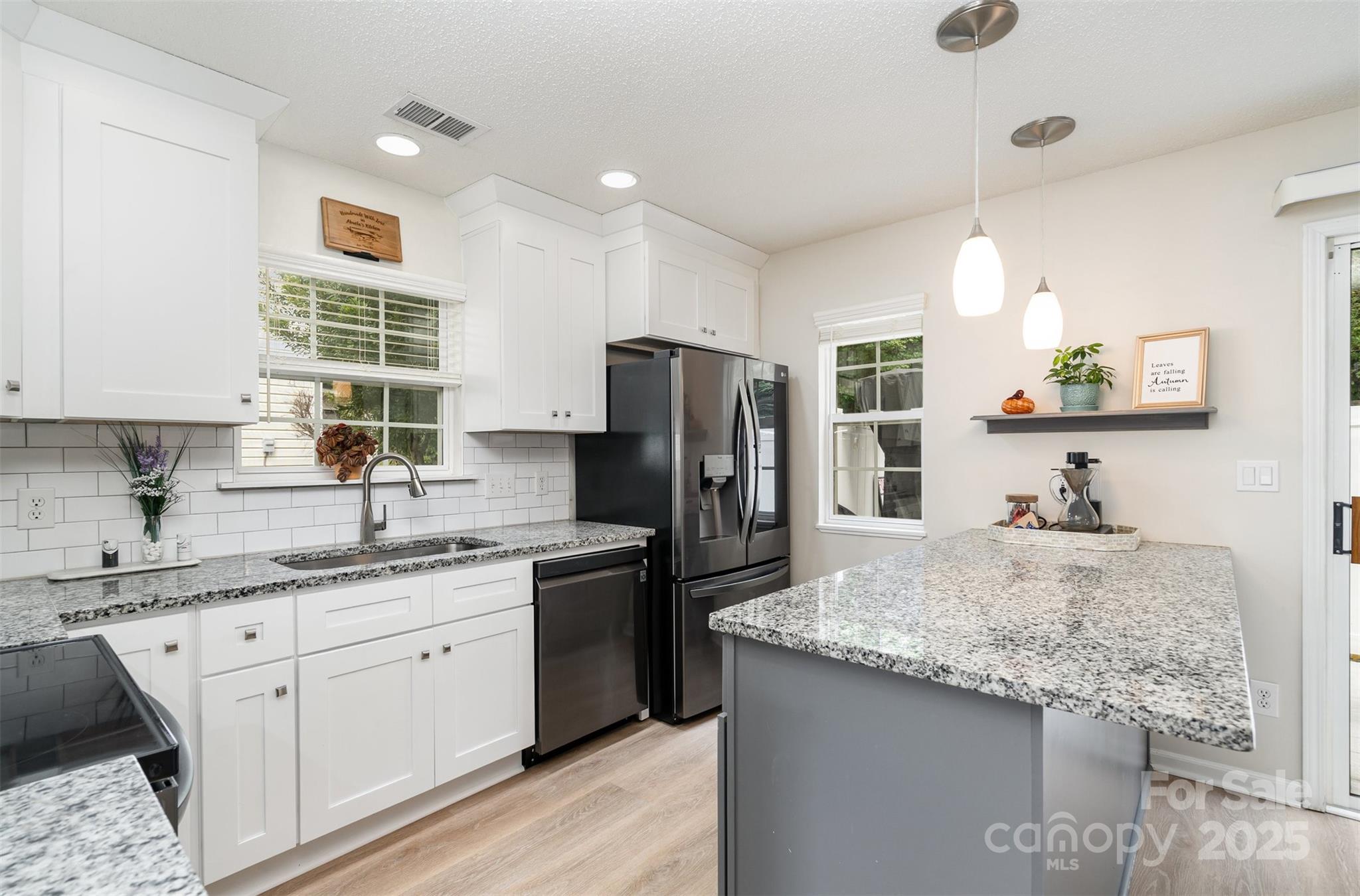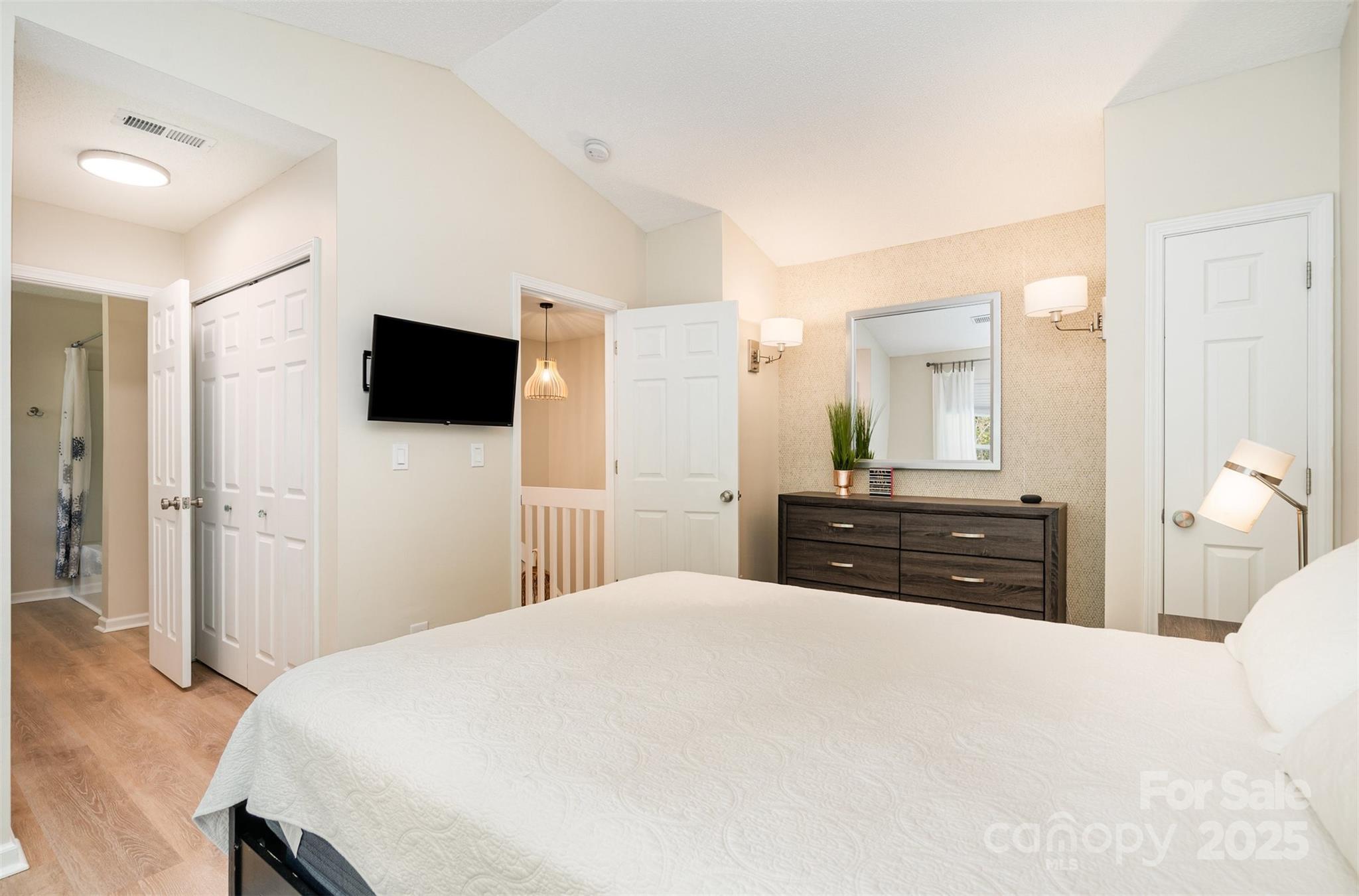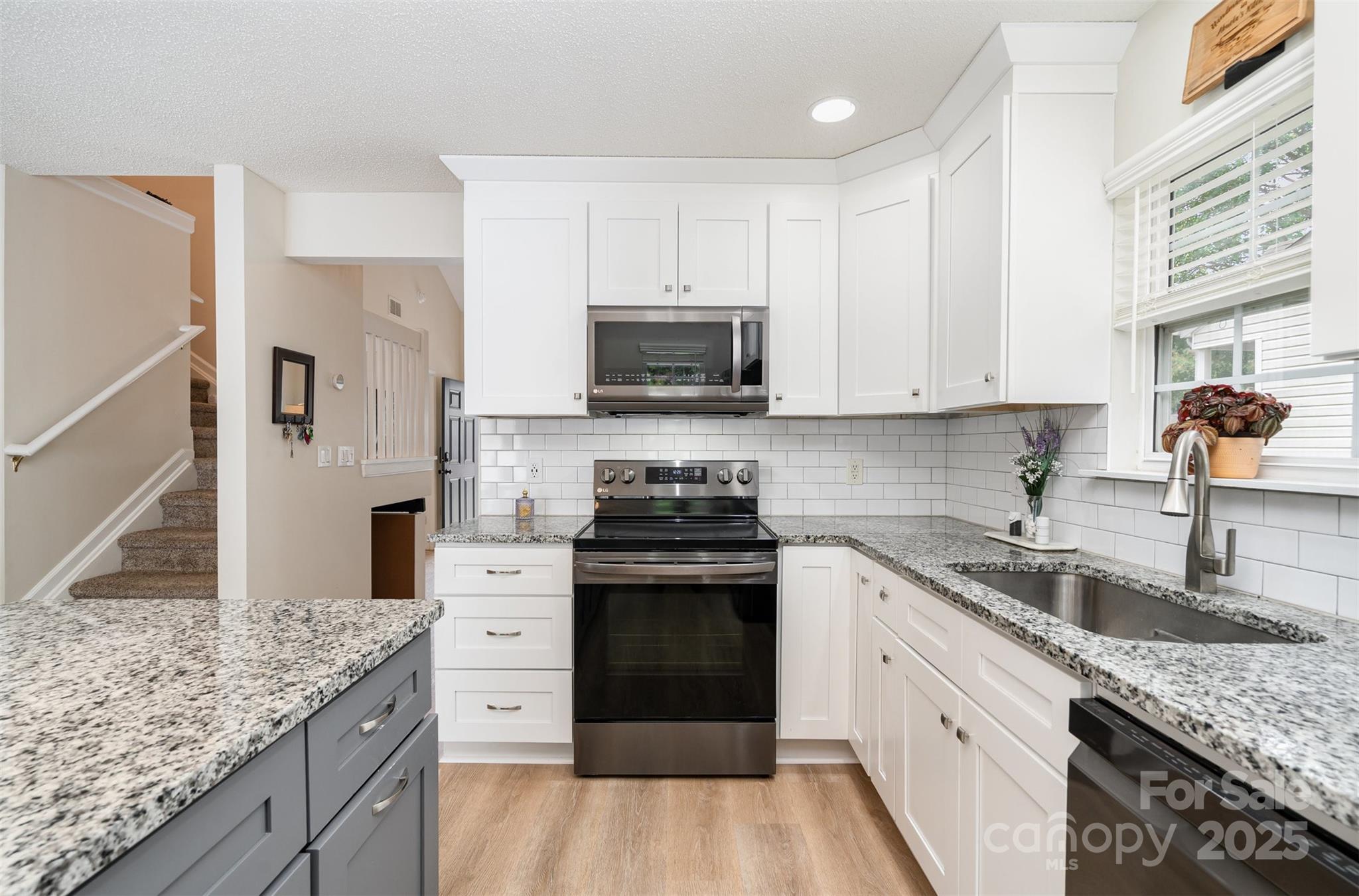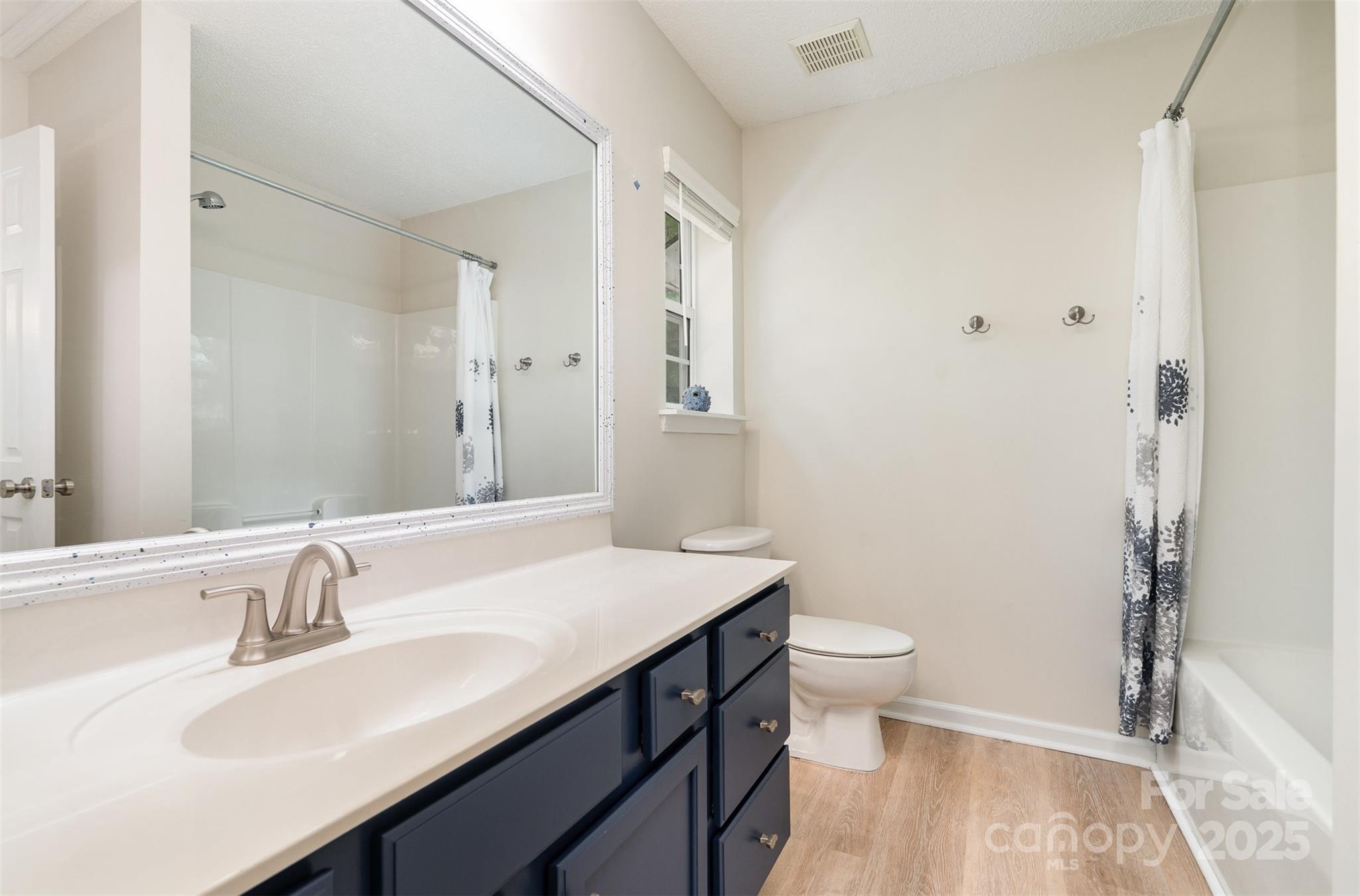This beautifully renovated 3 bedroom 2.5 bath home blends modern upgrades with everyday convenience. The primary suite is located on the main floor and features a custom built closet along with a spa like ensuite bath, complete with a marble shower and custom vanity for a truly luxurious private retreat. The open concept layout is filled with natural light and showcases soaring ceilings and luxury vinyl plank flooring throughout. The chef’s kitchen offers granite countertops, ceiling height cabinets, and LG ThinQ smart appliances, creating both style and functionality. Upstairs, you’ll find a spacious secondary suite with dual closets and a connecting full bath, providing the comfort of a second primary bedroom, as well as an additional third bedroom. Additional highlights include custom window treatments, a private backyard retreat, and a separate storage unit for added convenience. Situated in a quiet cul-de-sac just steps from the community pool, the home offers easy access to I-77, Kingsley, Riverwalk, Baxter Village, and a wide variety of shopping and dining options all within the highly rated Fort Mill School District. Fully renovated in November 2021, this move in ready home combines thoughtful design with an unbeatable location.