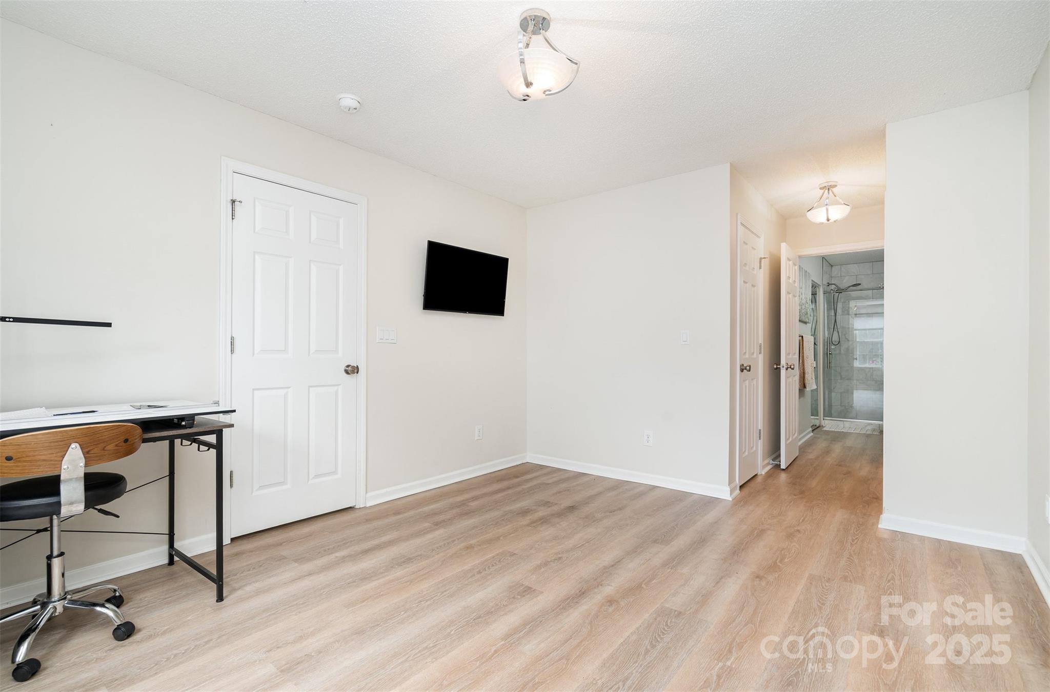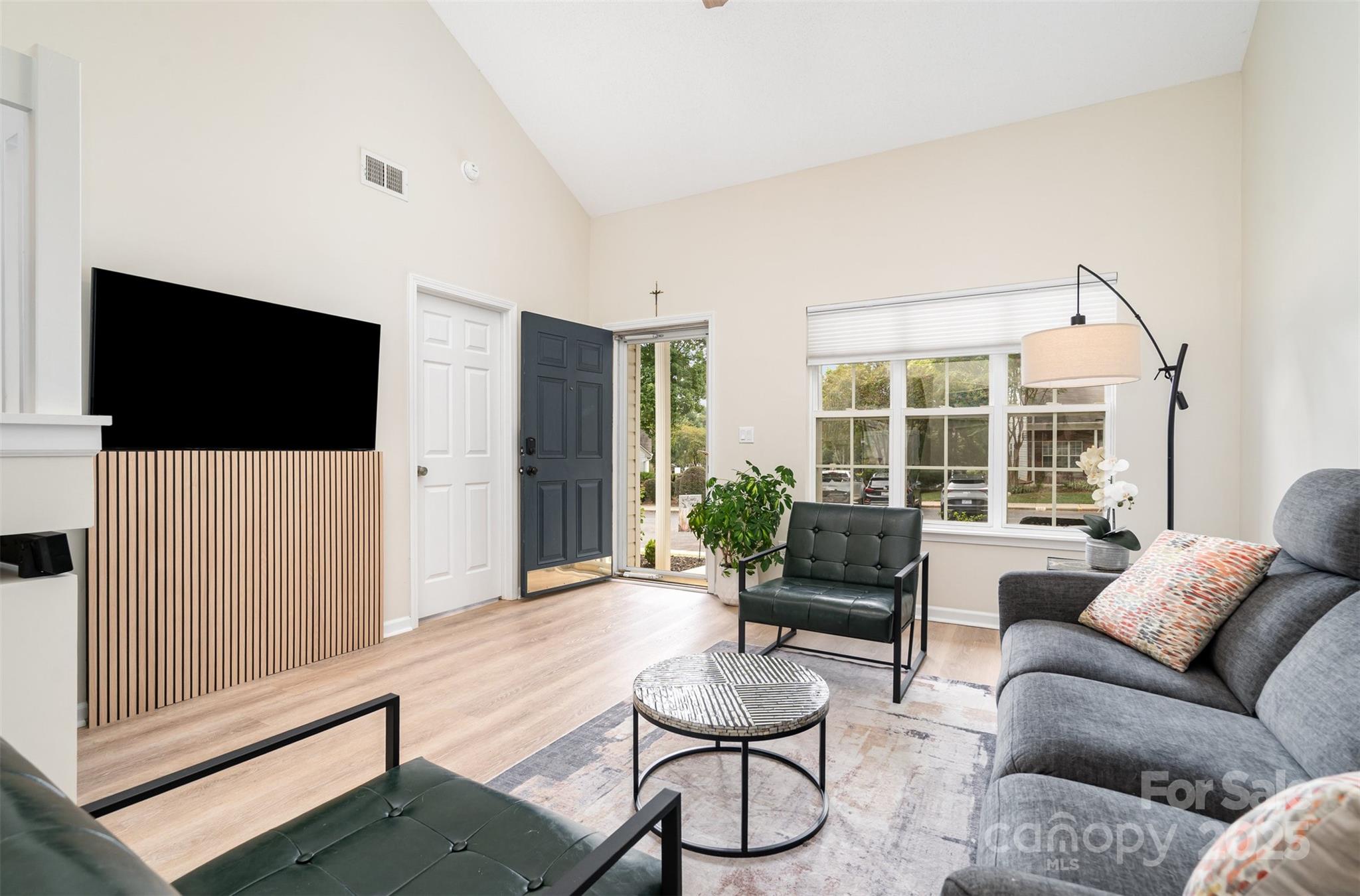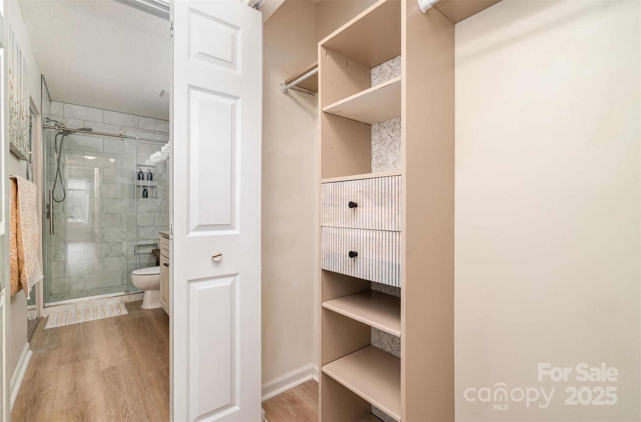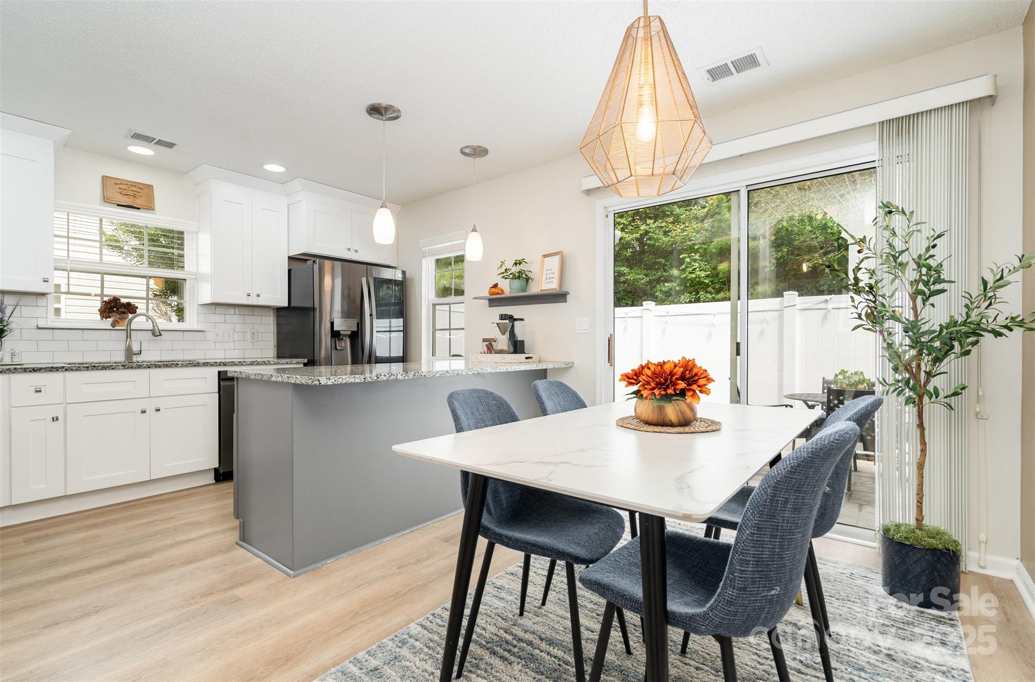 This beautifully renovated 3 bedroom 2.5 bath home blends modern upgrades with everyday convenience. The primary suite is located on the main floor and features a custom built closet along with a spa like ensuite bath, complete with a marble shower and custom vanity for a truly luxurious private retreat. The open concept layout is filled with natural light and showcases soaring ceilings and luxury vinyl plank flooring throughout. The chef’s kitchen offers granite countertops, ceiling height cabinets, and LG ThinQ smart appliances, creating both style and functionality. Upstairs, you’ll find a spacious secondary suite with dual closets and a connecting full bath, providing the comfort of a second primary bedroom, as well as an additional third bedroom. Additional highlights include custom window treatments, a private backyard retreat, and a separate storage unit for added convenience. Situated in a quiet cul-de-sac just steps from the community pool, the home offers easy access to I-77, Kingsley, Riverwalk, Baxter Village, and a wide variety of shopping and dining options all within the highly rated Fort Mill School District. Fully renovated in November 2021, this move in ready home combines thoughtful design with an unbeatable location.