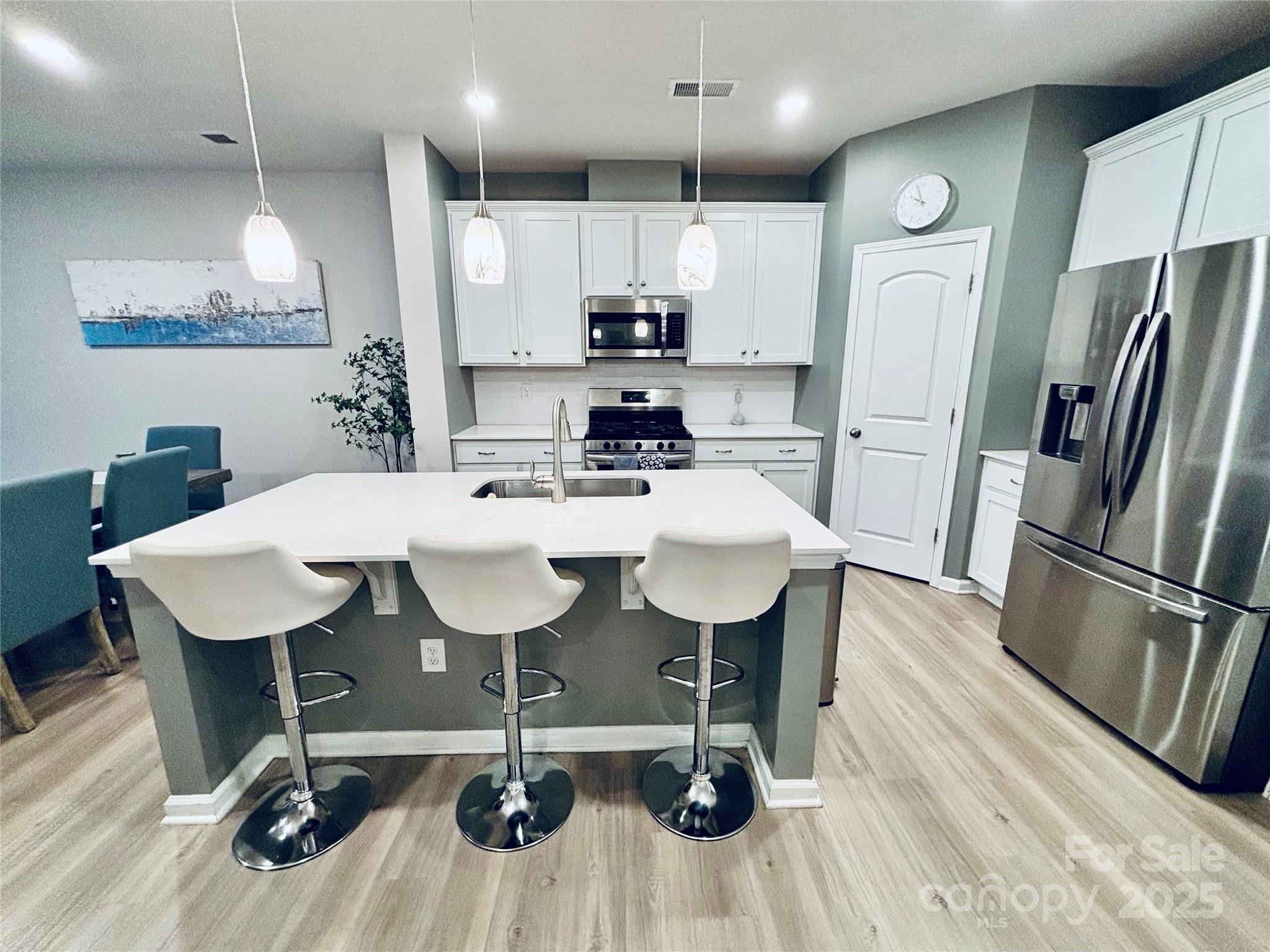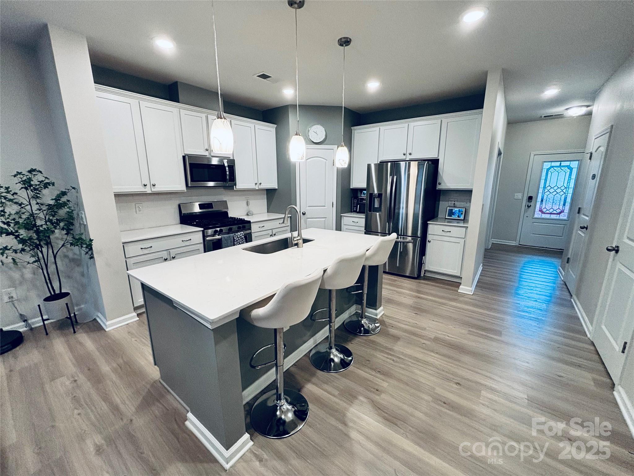 Step inside this move-in ready luxury townhome and discover a home that lives as smartly as it looks. From the moment you arrive, you’ll notice thoughtful upgrades everywhere...brand-new whole-house water filtration system, Alexa-controlled smart LED lighting/switches, keyless entry, and Ring security cameras for peace of mind. The 300sf garage has been transformed into a sleek, air-conditioned home gym, perfect for workouts year-round. Not a fitness buff? No problem, it can be easily converted back into a garage. The private, fully fenced backyard features a lovely deck and string lighting that really elevates your outdoor living area. Inside, the main level showcases an open floor plan, complete with a versatile flex room that can serve perfectly as a home office, playroom, or craft room. Upstairs, the primary suite feels like a retreat, complete with a spacious walk-in closet and modern bathroom. Two additional bedrooms share a full bath, offering plenty of room for family and guests. Everyday living here is effortless. With the community pool, dining, shopping, entertainment, and medical facilities just around the corner, convenience meets luxury at every turn, making this location as practical as it is desirable.
