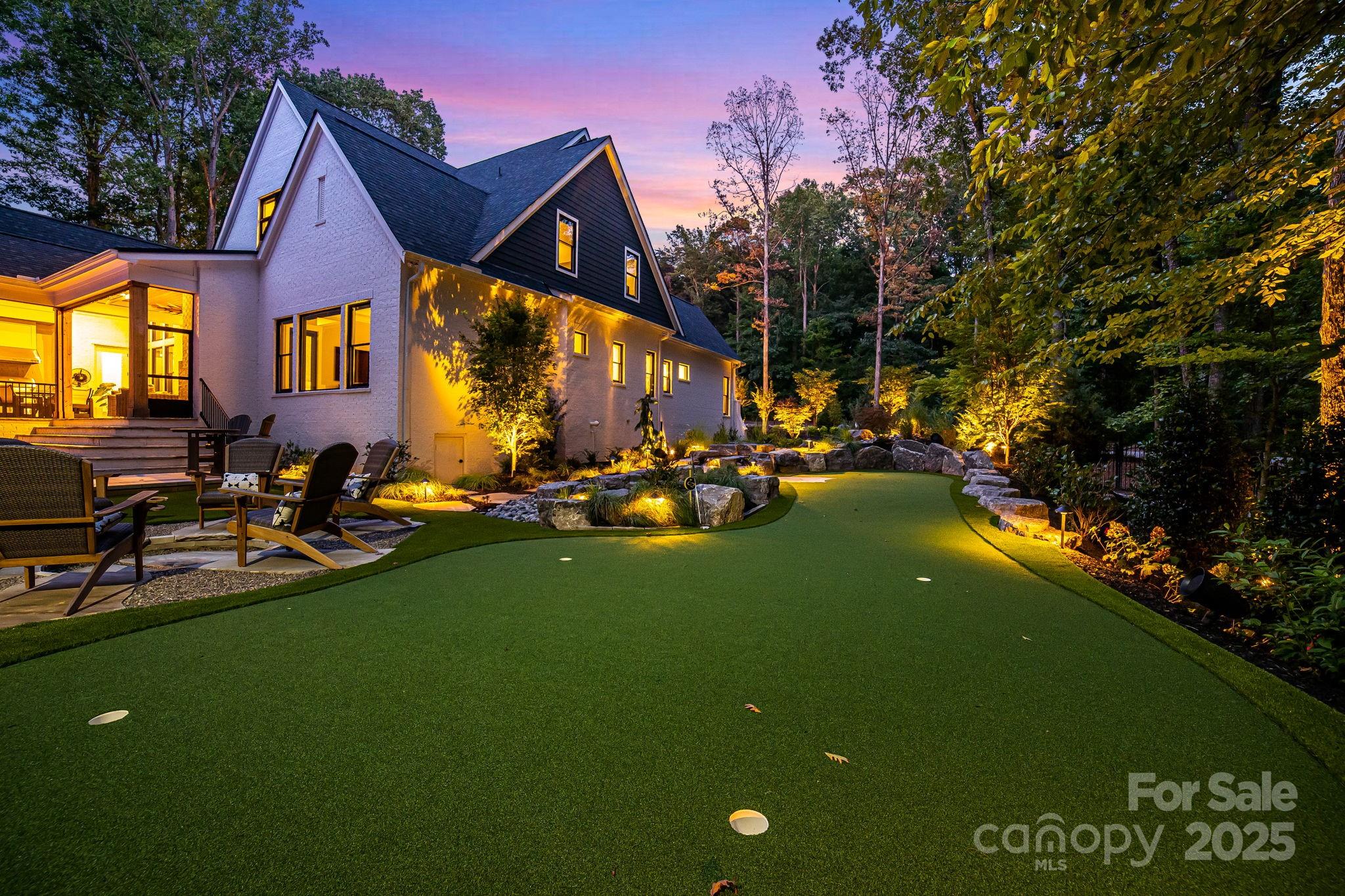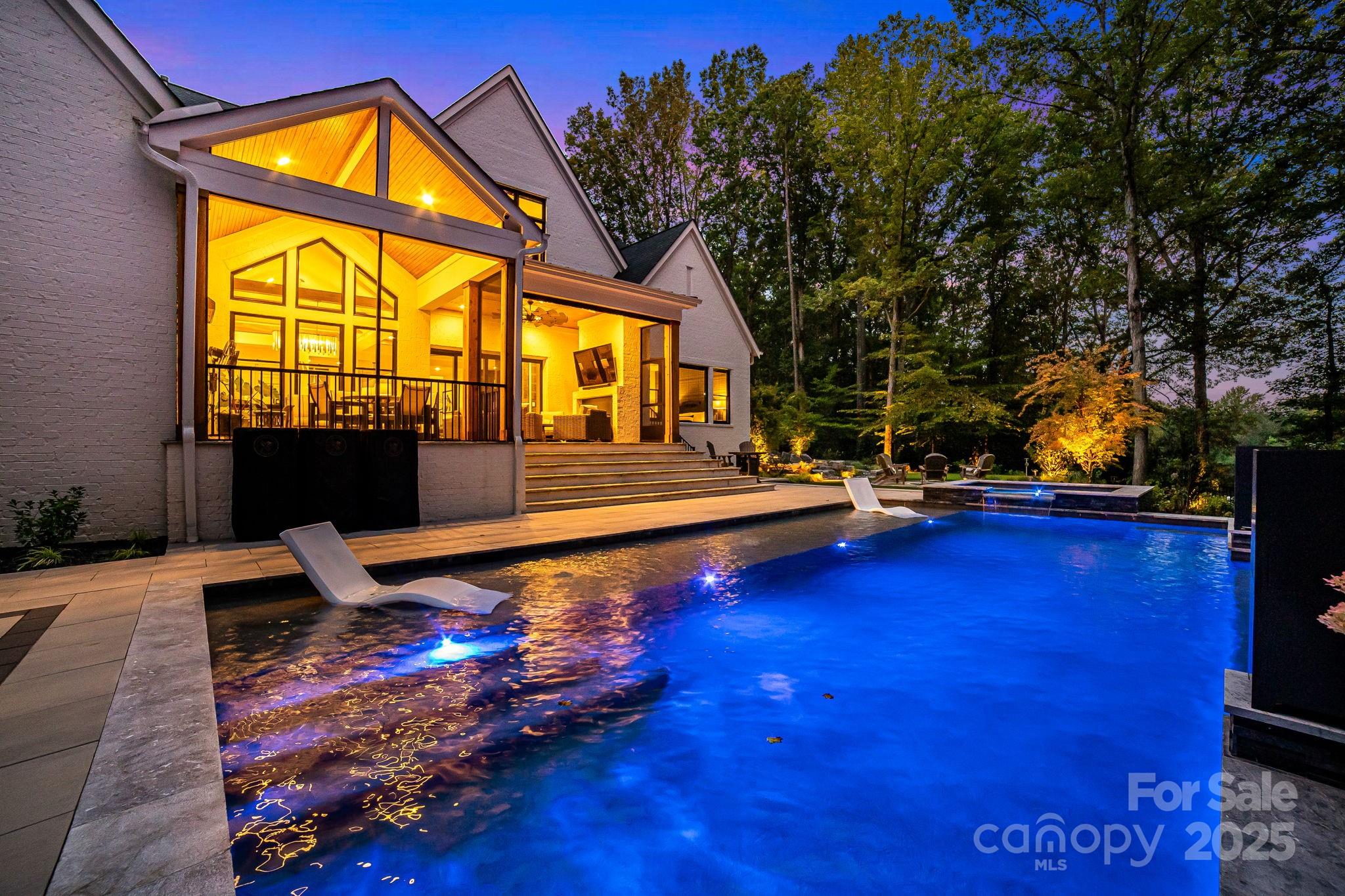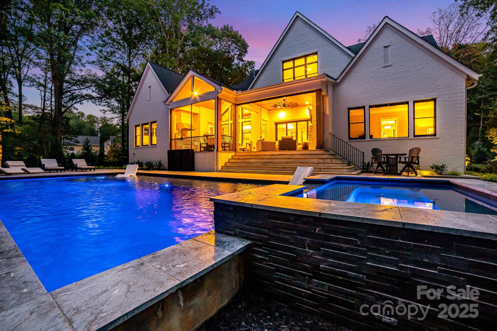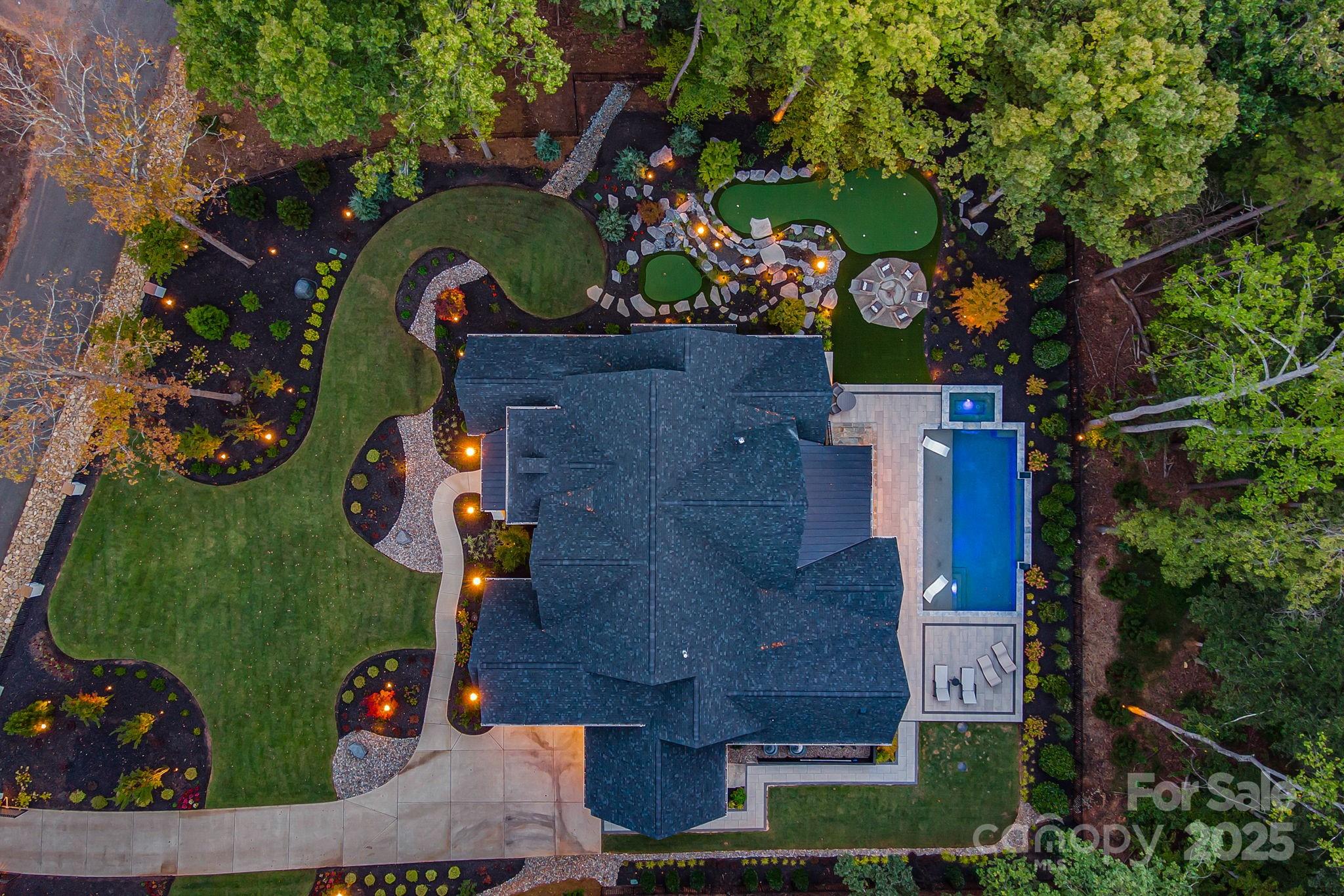 Experience unmatched privacy and modern luxury in this fully custom 2023 estate, perfectly situated on over 3.4 acres in Maple Grove, a boutique six-lot subdivision. From the moment you arrive, the gated entry with brick columns and sweeping front lawn framed by manicured landscaping create a commanding first impression. The home’s thoughtful design blends sophistication and comfort with soaring vaulted and beamed ceilings, custom millwork, and designer lighting throughout. The chef’s kitchen showcases natural Vancouver Quartzite with a double-edge island, 6-burner range with griddle and hearth oven, pot filler, hidden walk-in pantry and outlets, complemented by a separate scullery with a full second kitchen, Italian handmade backsplash tile, and abundant storage. Pocket doors add privacy to multiple spaces including the library/media room and guest suites. Retreat to the serene primary suite with spa-inspired bath, custom closets, and marble finishes. Additional highlights include glazed Italian porcelain tile baths, custom built-ins, herringbone wood floors, and three Monogram wine/beverage fridges across the bar, library/media room, and outdoor kitchen. Outdoor living takes center stage with a resort-style pool and spa, expansive veranda with retractable screen, fire pit, and an inspired backyard retreat featuring a flowing river stream, tiered putting green, and dramatic landscape lighting. Extensive drainage improvements further enhance the property’s functionality and value. Backing to Fisher Farm Park and the Davidson Greenway, this private estate combines natural beauty, luxury finishes, and exceptional craftsmanship in one extraordinary package!