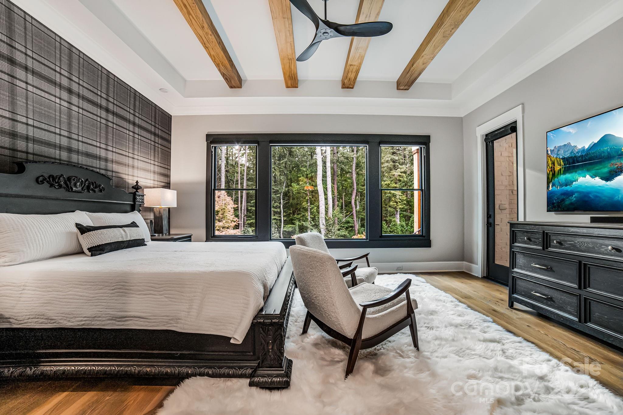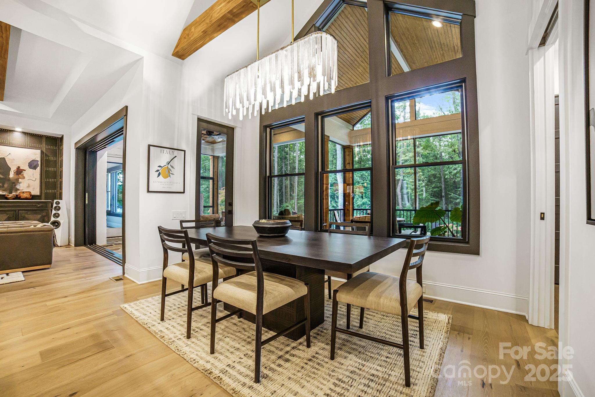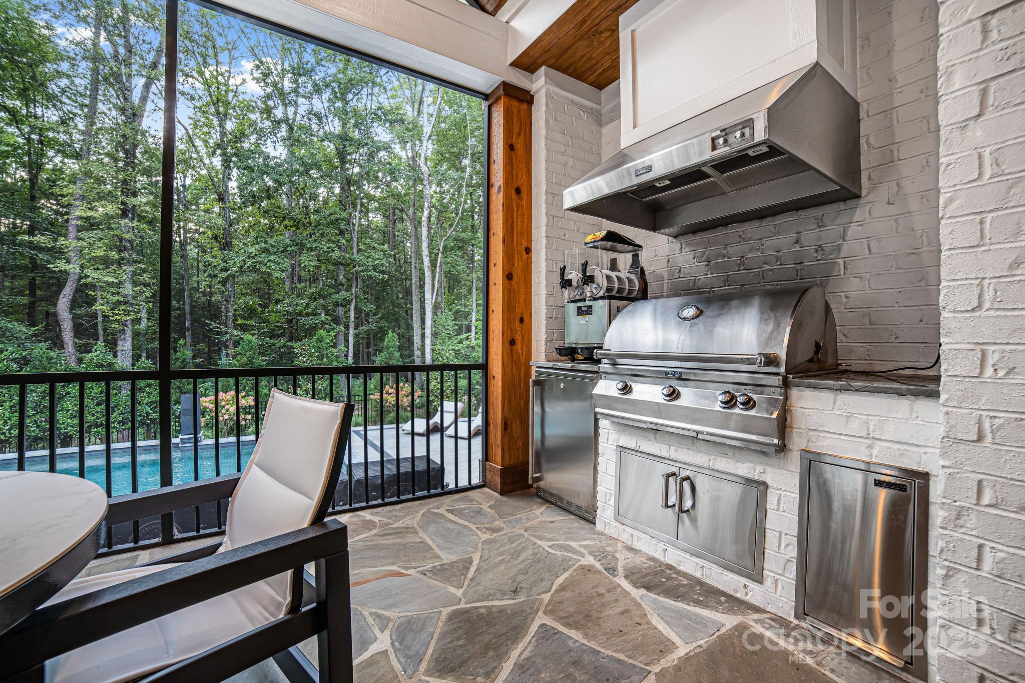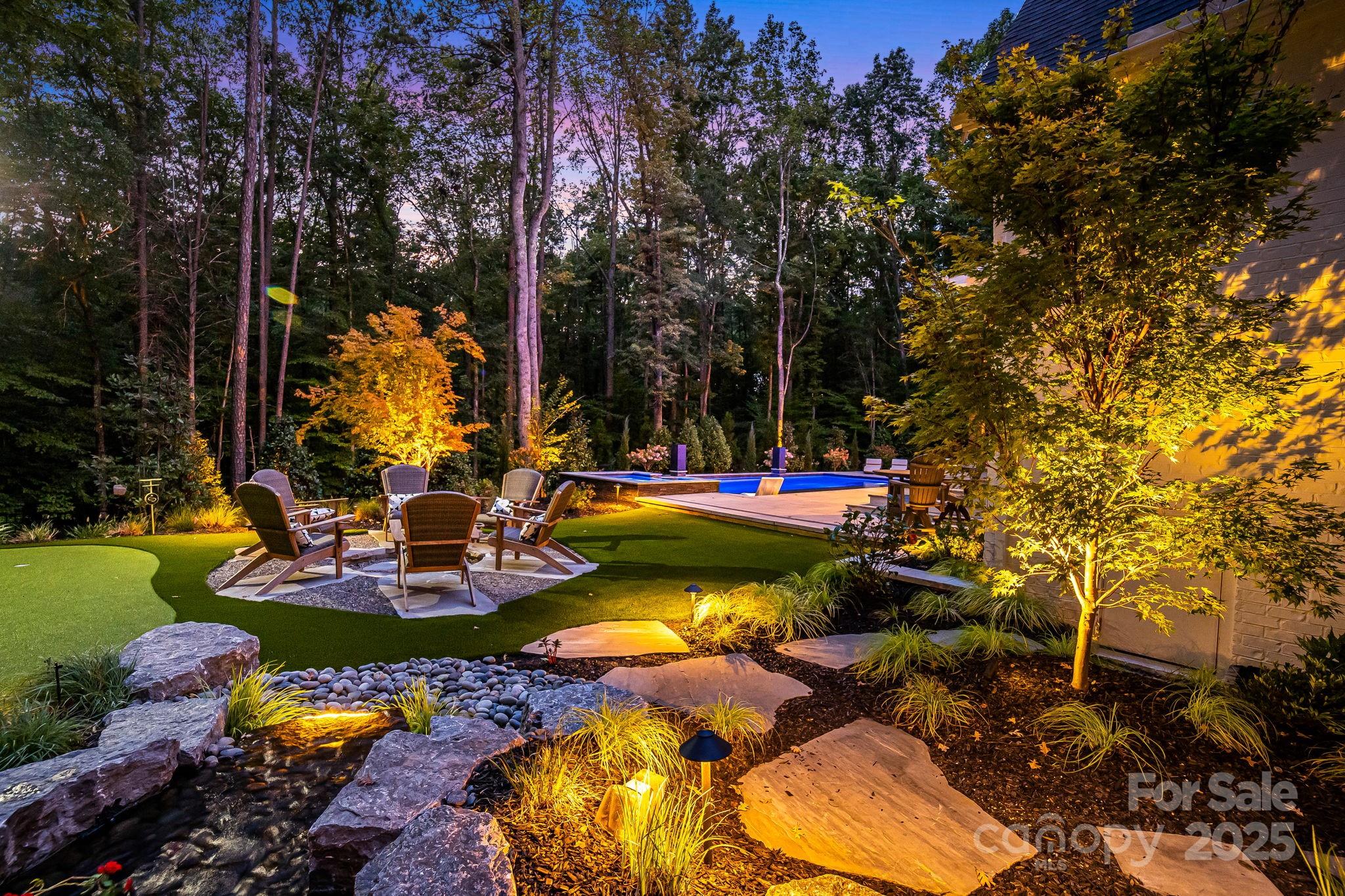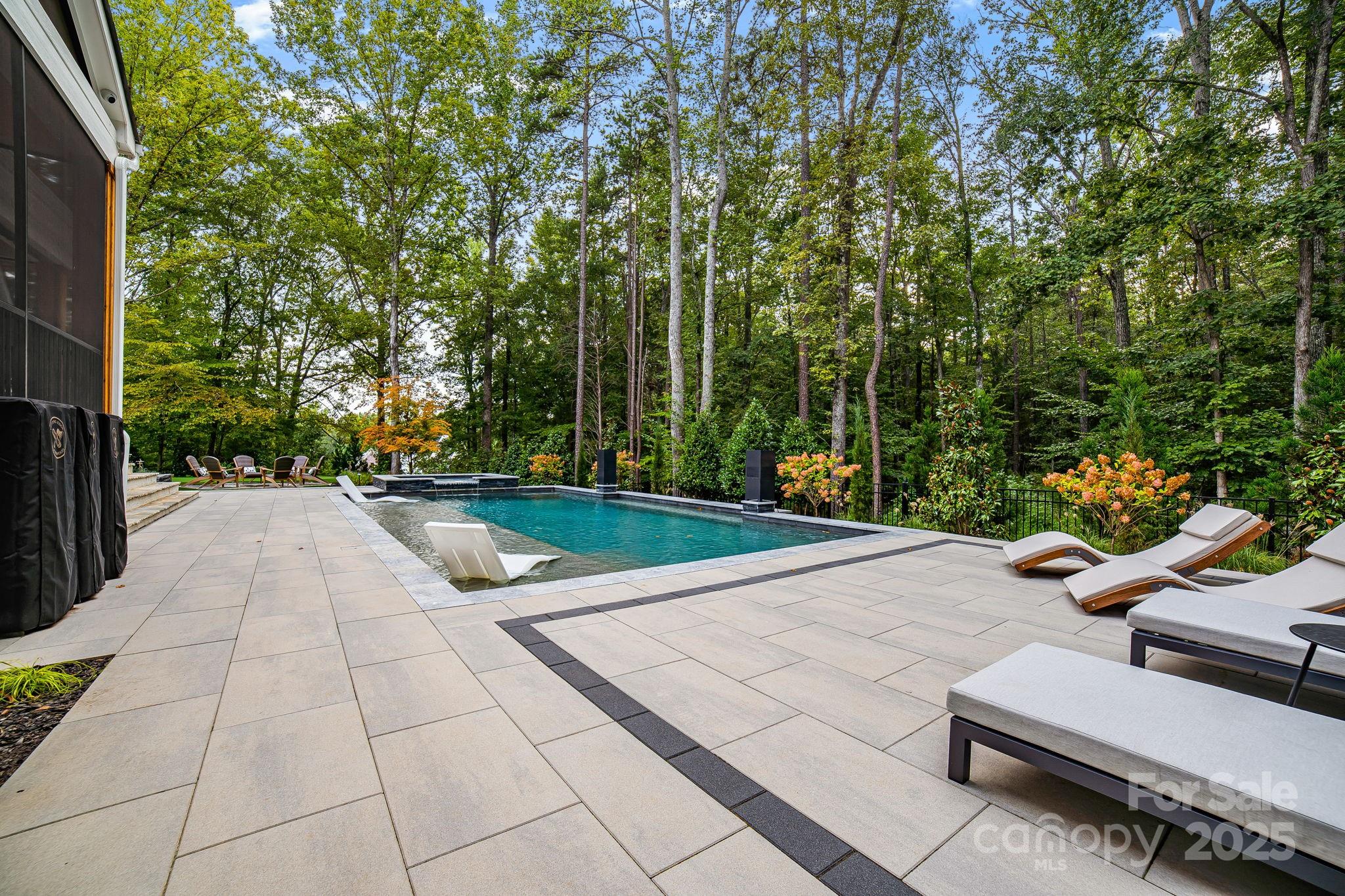 Experience unmatched privacy and modern luxury in this fully custom 2023 estate, perfectly situated on over 3.4 acres in Maple Grove, a boutique six-lot subdivision. From the moment you arrive, the gated entry with brick columns and sweeping front lawn framed by manicured landscaping create a commanding first impression. The home’s thoughtful design blends sophistication and comfort with soaring vaulted and beamed ceilings, custom millwork, and designer lighting throughout. The chef’s kitchen showcases natural Vancouver Quartzite with a double-edge island, 6-burner range with griddle and hearth oven, pot filler, hidden walk-in pantry and outlets, complemented by a separate scullery with a full second kitchen, Italian handmade backsplash tile, and abundant storage. Pocket doors add privacy to multiple spaces including the library/media room and guest suites. Retreat to the serene primary suite with spa-inspired bath, custom closets, and marble finishes. Additional highlights include glazed Italian porcelain tile baths, custom built-ins, herringbone wood floors, and three Monogram wine/beverage fridges across the bar, library/media room, and outdoor kitchen. Outdoor living takes center stage with a resort-style pool and spa, expansive veranda with retractable screen, fire pit, and an inspired backyard retreat featuring a flowing river stream, tiered putting green, and dramatic landscape lighting. Extensive drainage improvements further enhance the property’s functionality and value. Backing to Fisher Farm Park and the Davidson Greenway, this private estate combines natural beauty, luxury finishes, and exceptional craftsmanship in one extraordinary package!